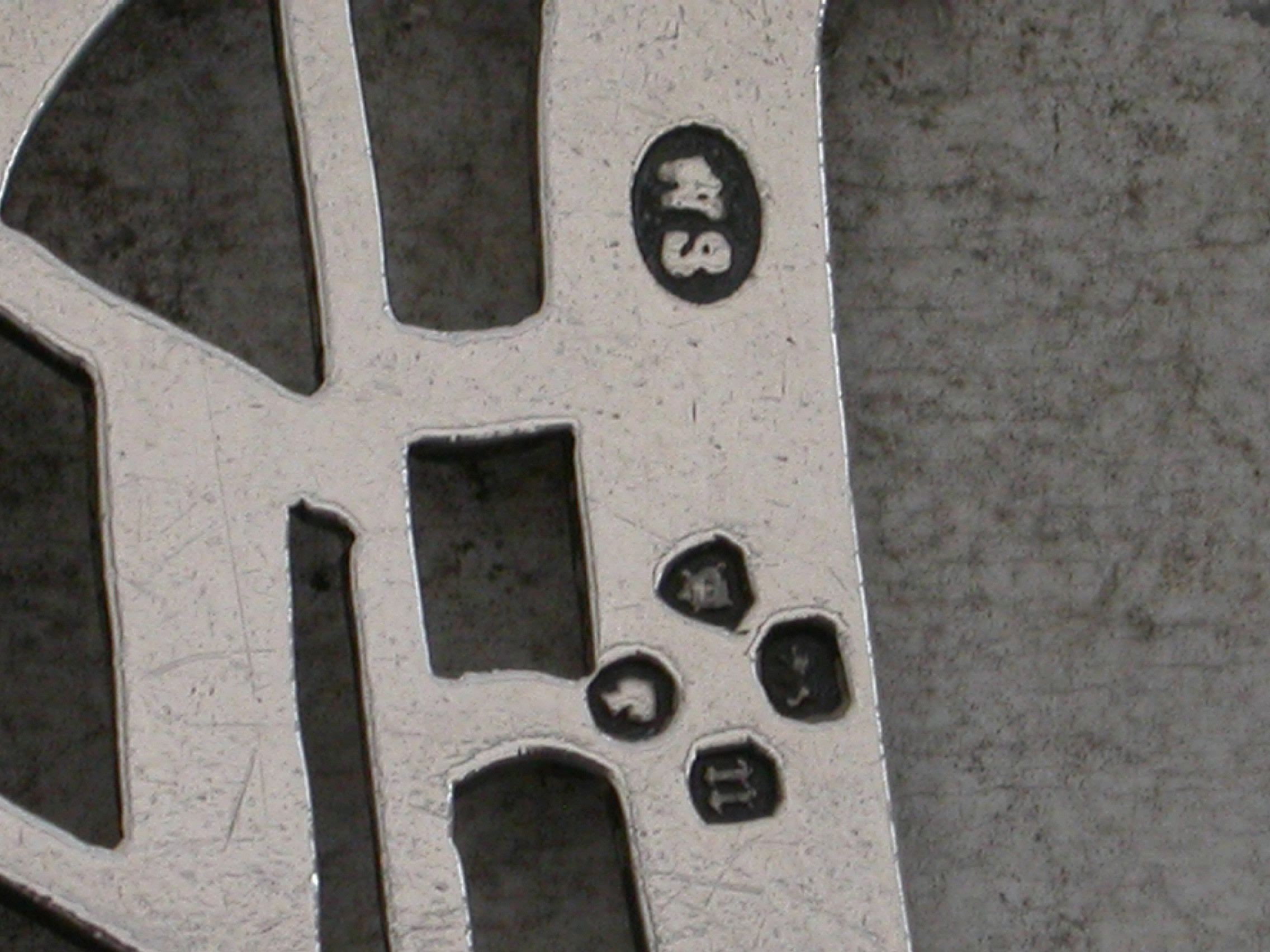 Pair of Victorian silver cut-out capital letter Wine Labels for G & W (Gin and Whiskey) of Gothic style and engraved with foliate scroll decoration.