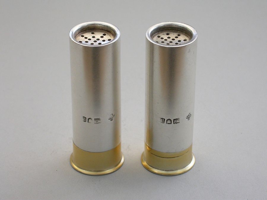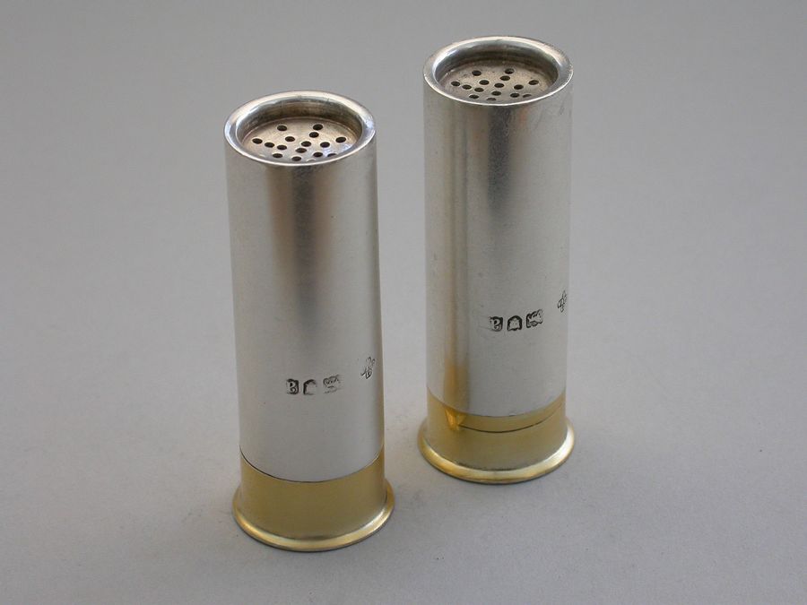 Pair Victorian Silver Shot Gun Cartridge Peppers