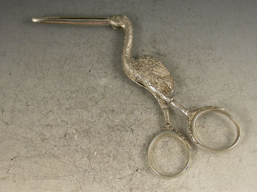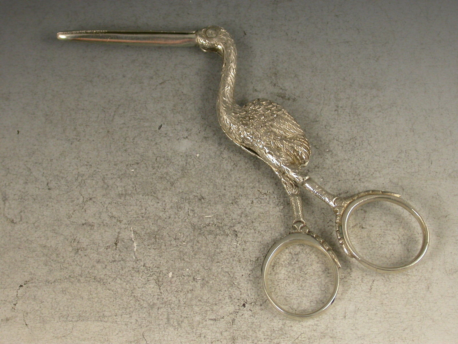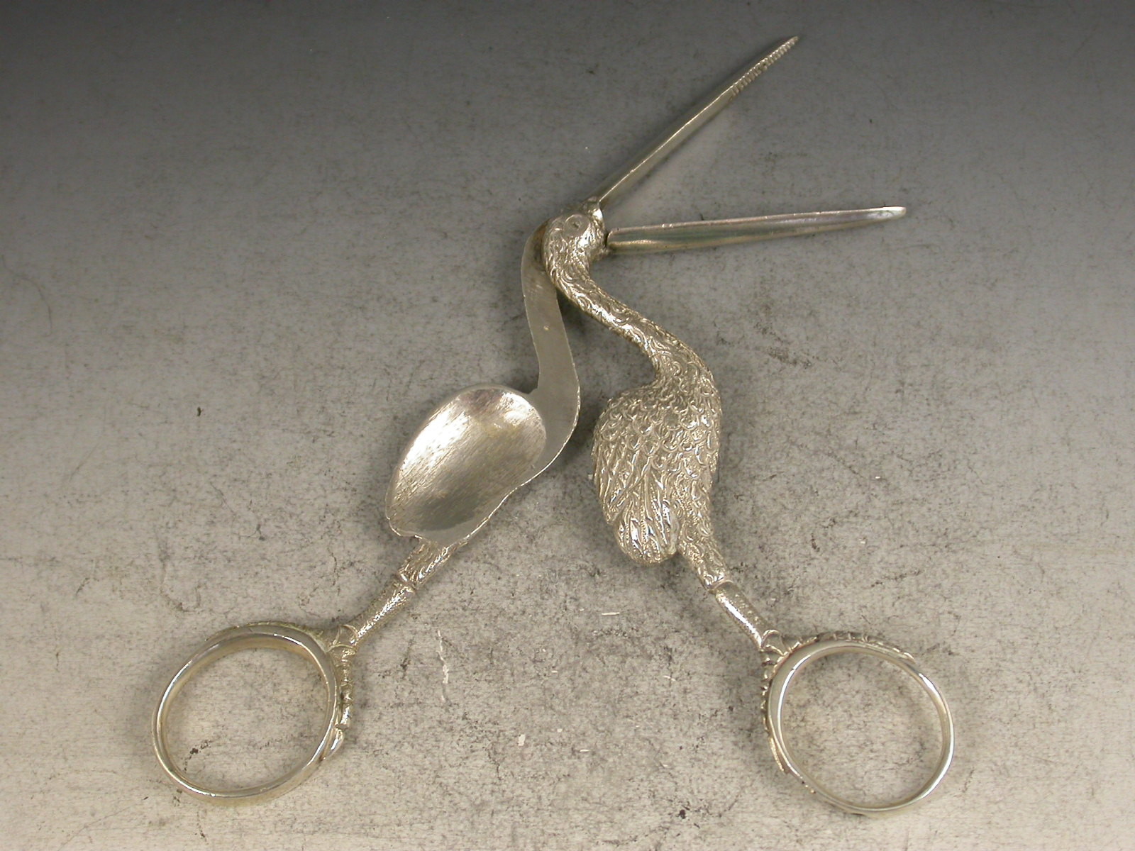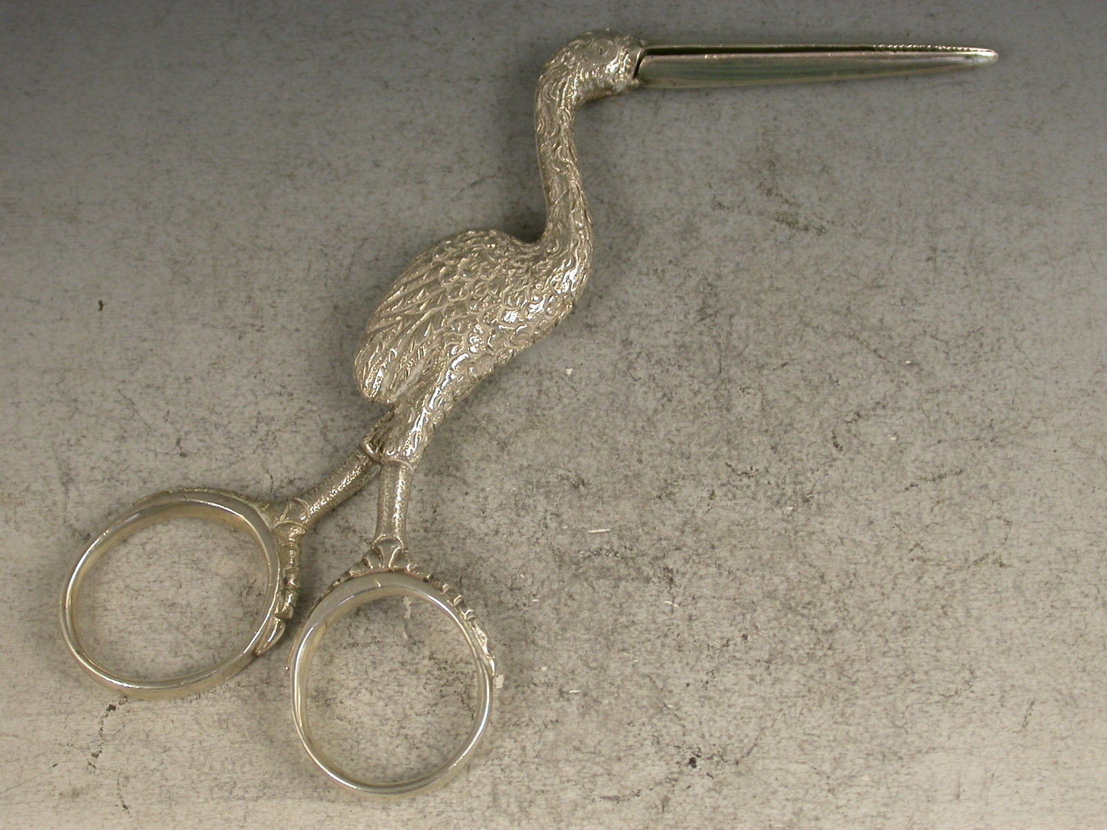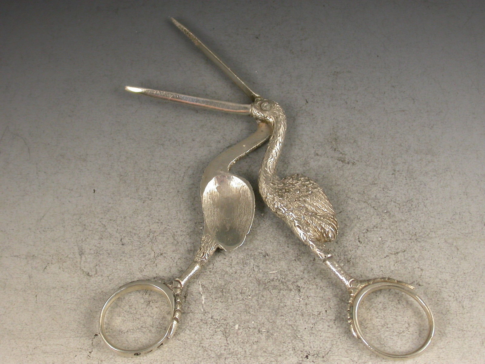 A good pair of William IV cast silver Ribbon Threaders made in the form of a Stork.