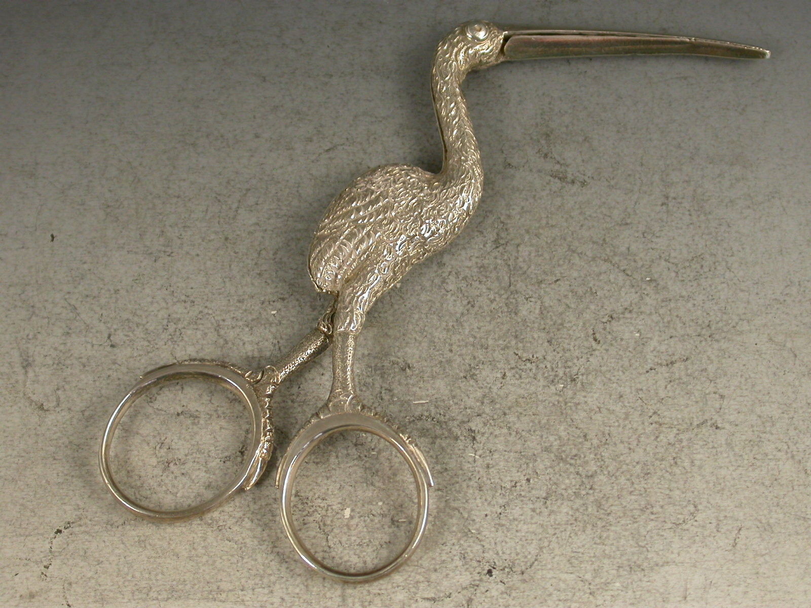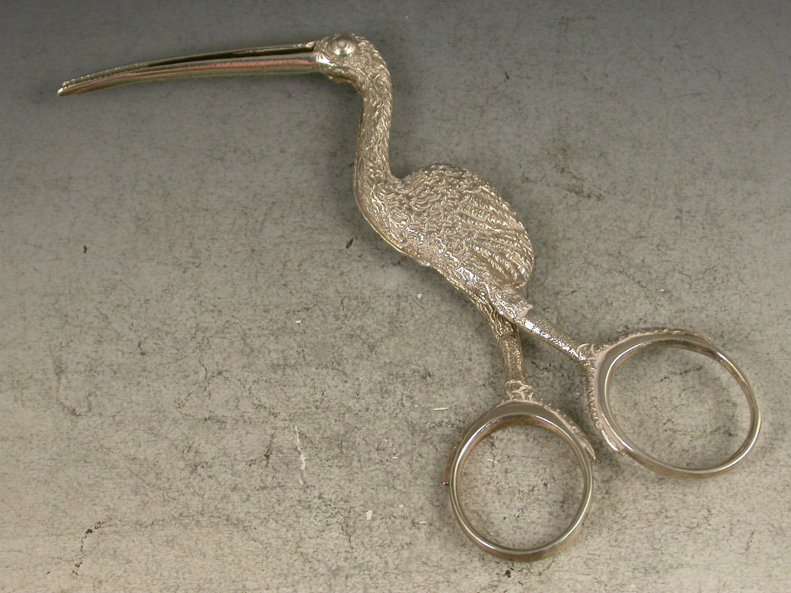 A good pair of William IV cast silver Ribbon Threaders made in the form of a Stork.