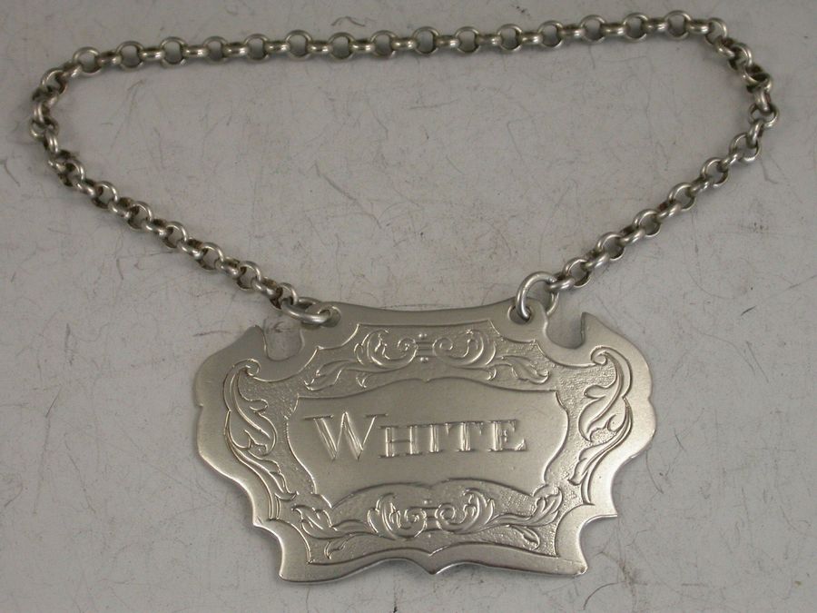 Provincial Antique Silver Escutcheon Wine Label 'White'
