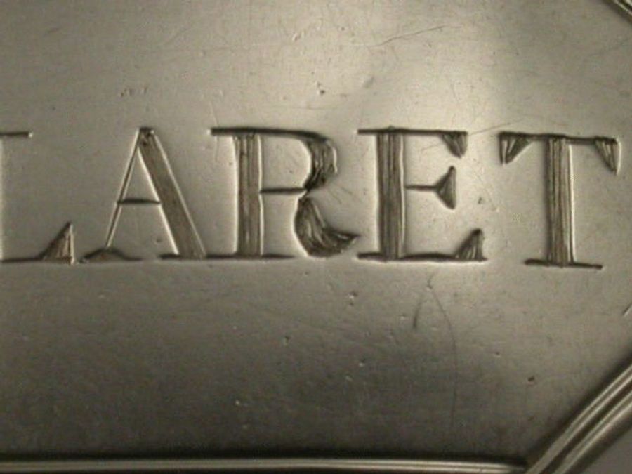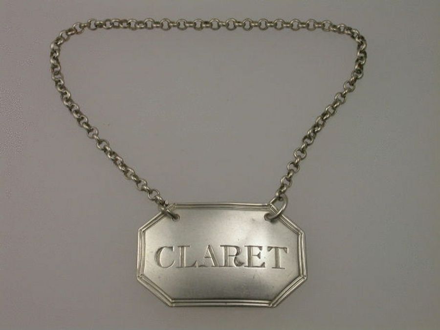 A rare George III Provincial silver Wine Label of broad rectangular form with cut corners and double reeded border, incised for CLARET.