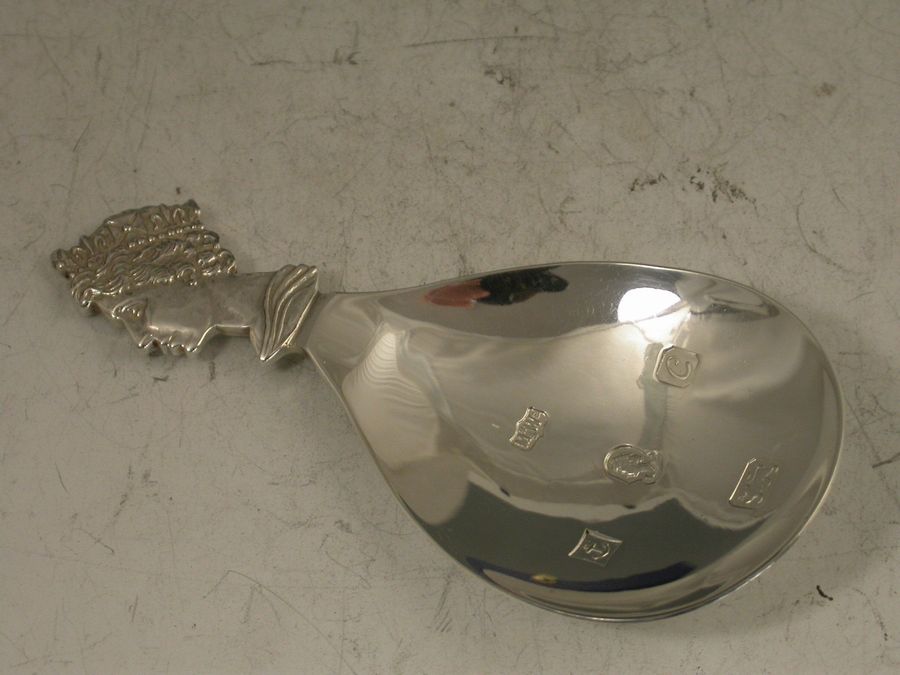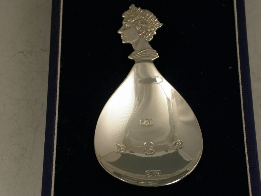 A modern commemorative silver Caddy Spoon, made to commemorate the Silver Jubilee of Queen Elizabeth II in 1977. Complete with original case.