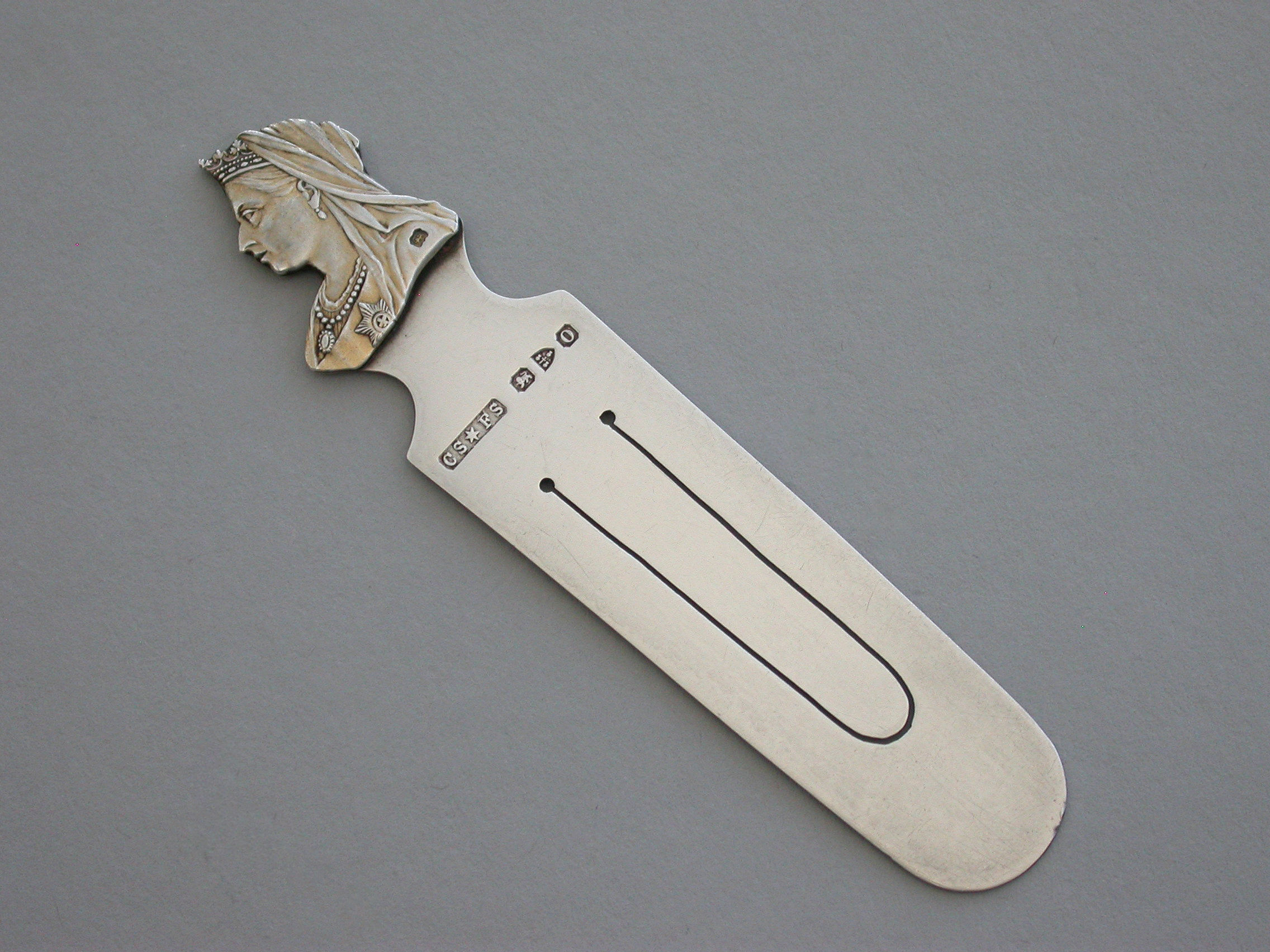 A good Victorian parcel gilt silver Bookmark, the terminal formed as a bust of Queen Victoria. Made to commemorate the Diamond Jubilee of Victoria in 1897.