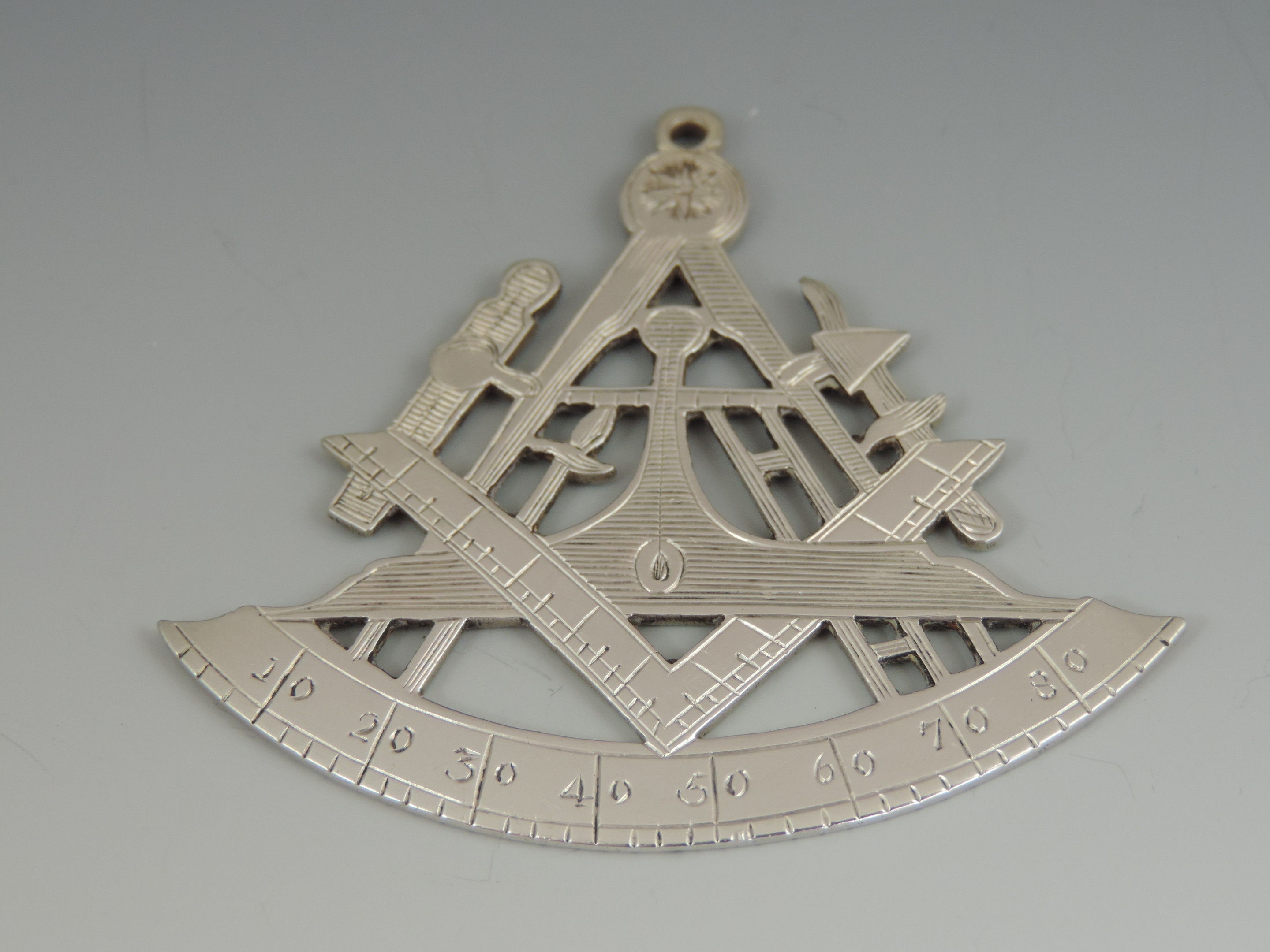 An extremely rare 18th century Masonic silver collar Jewel, pierced with Masonic symbols.