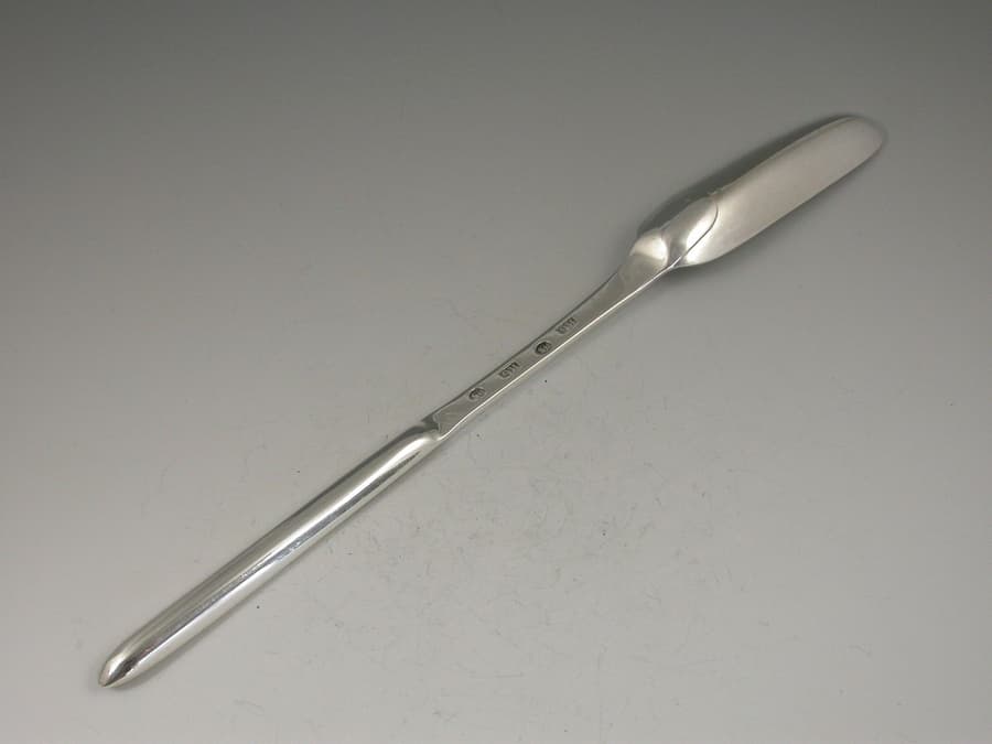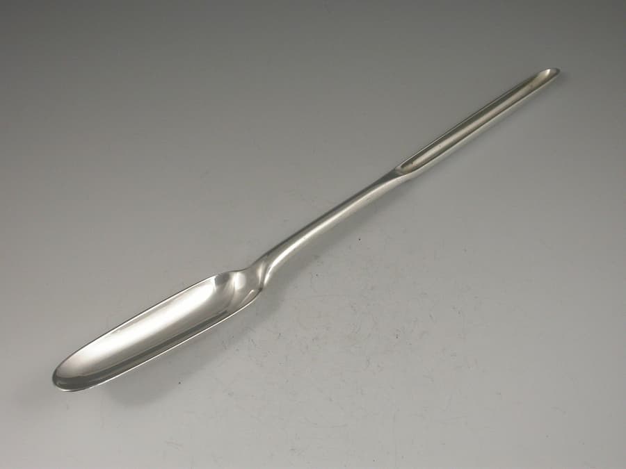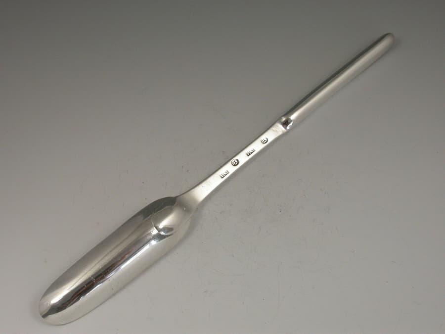 A rare 18th century Scottish silver Marrow Scoop of standard form with two bowls.