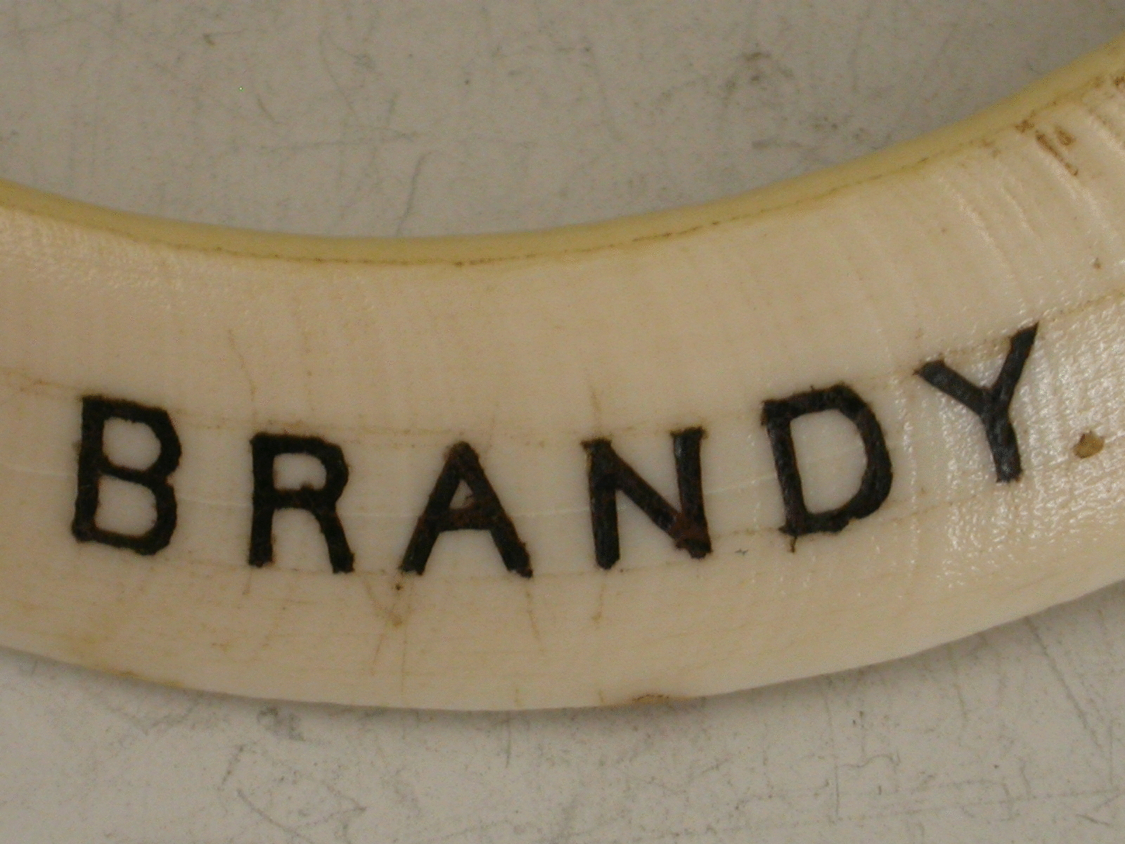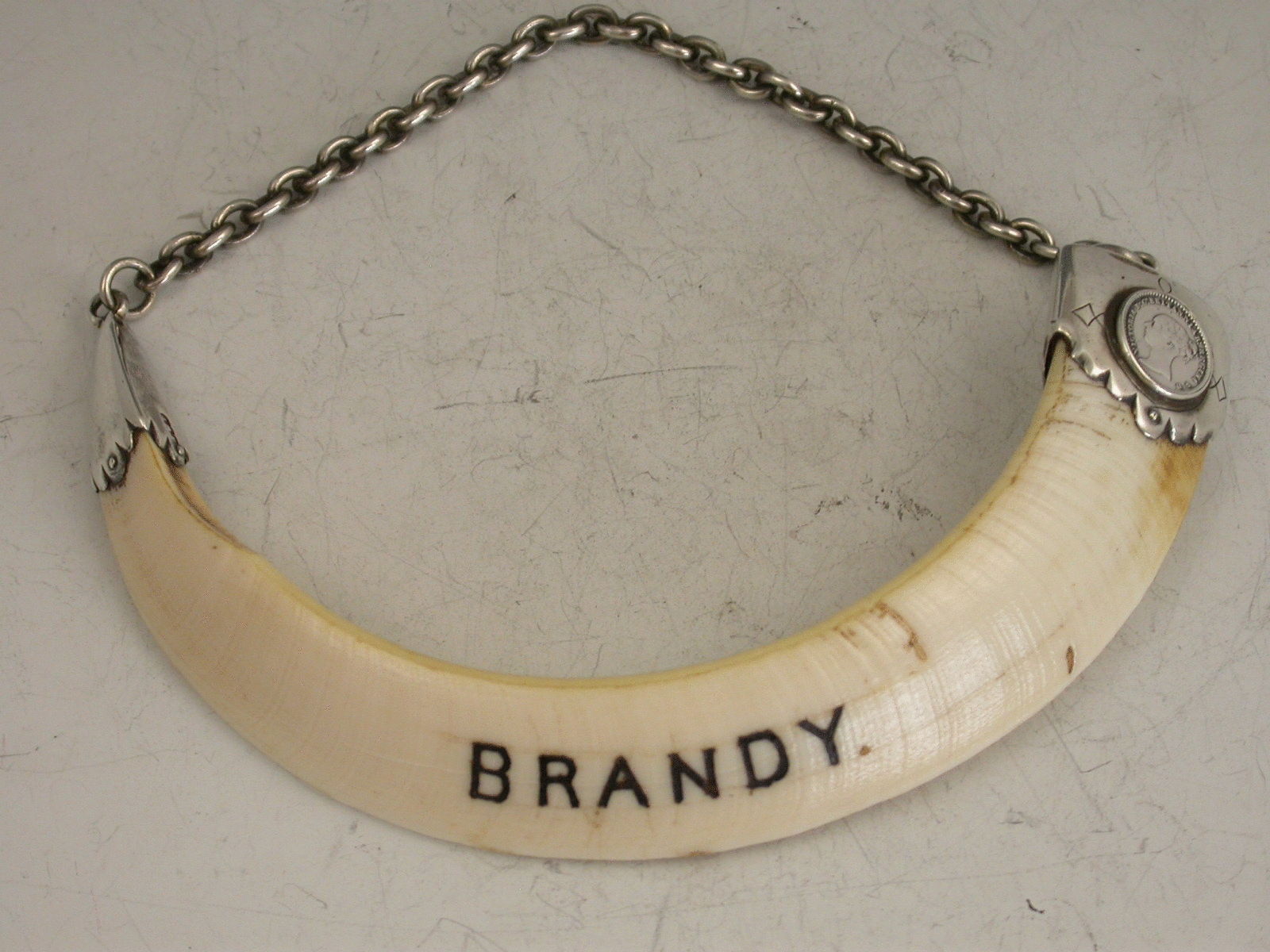 Rare Antique English Silver Boars Tusk Wine Label 'Brandy'