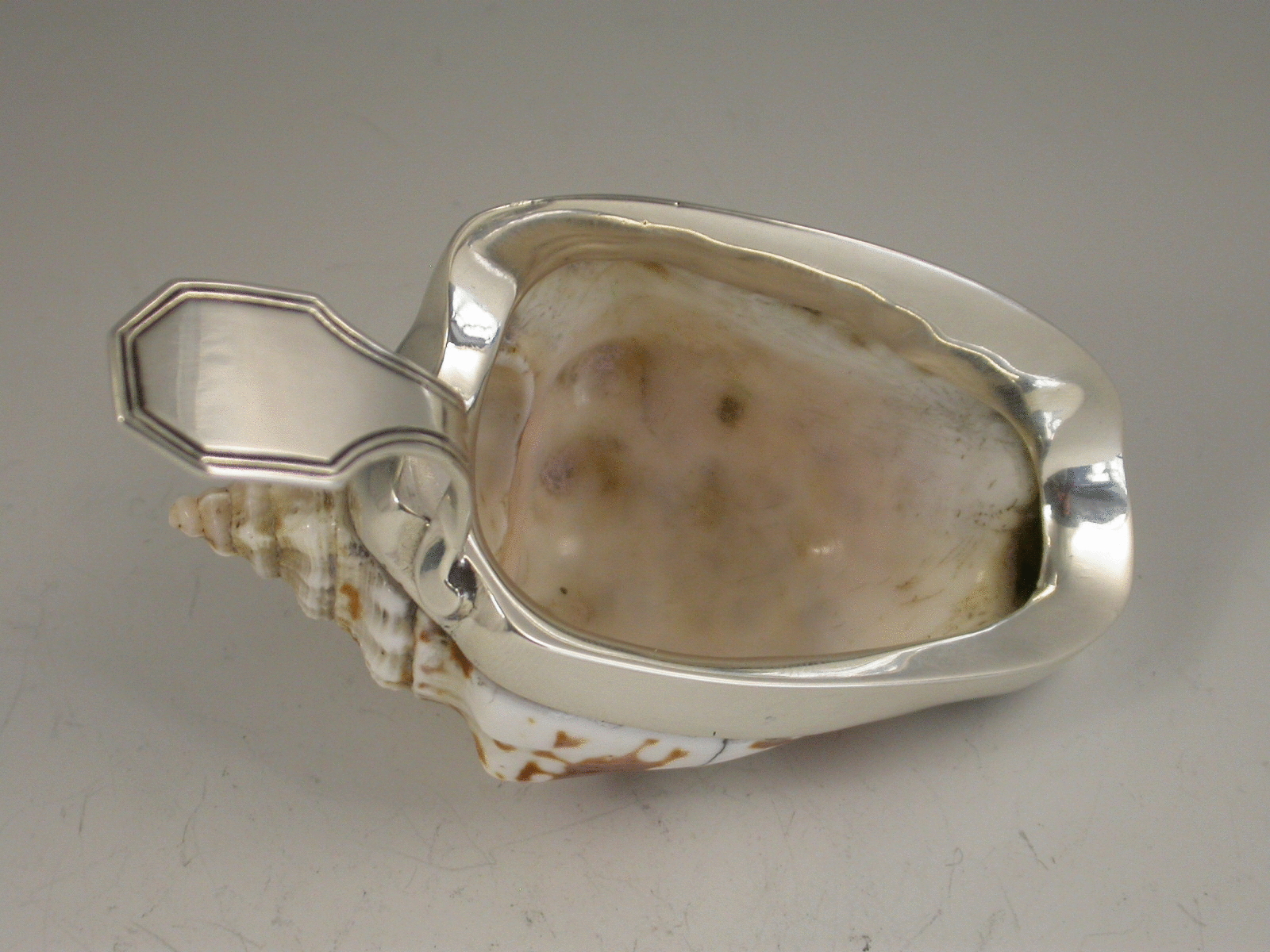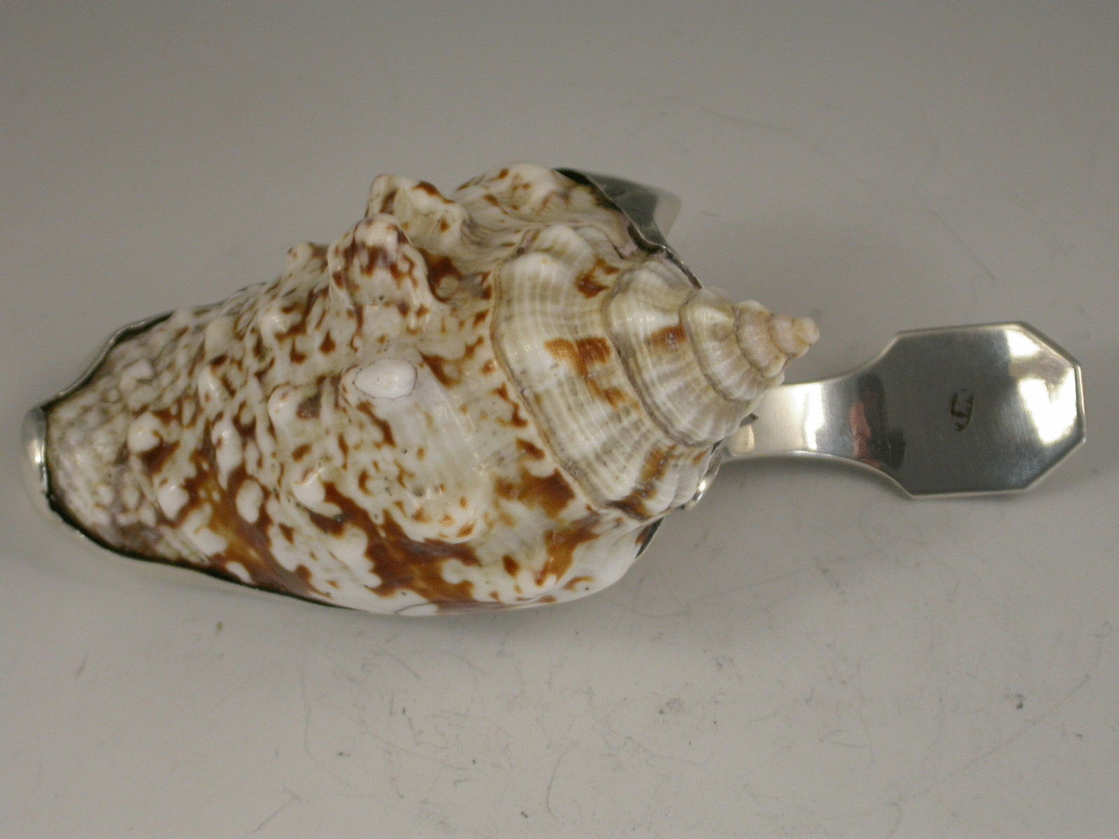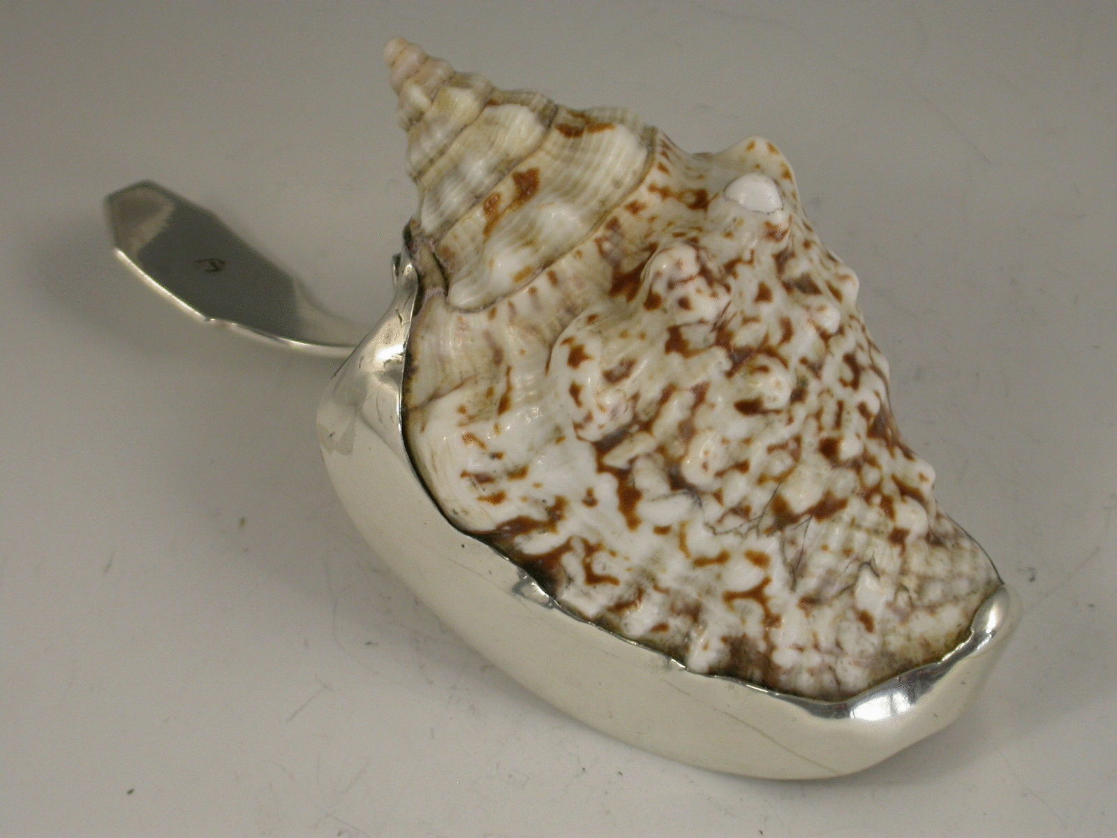 Rare Antique Silver Mounted Conch Shell Caddy Spoon