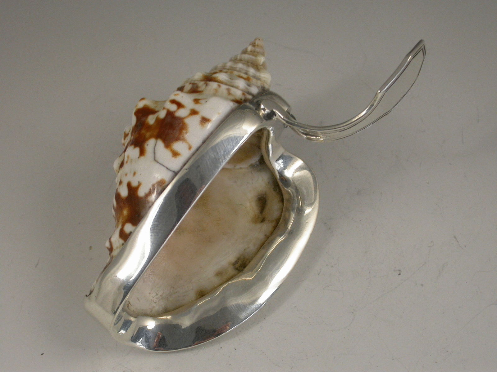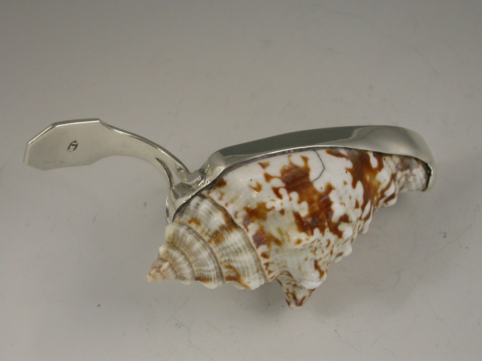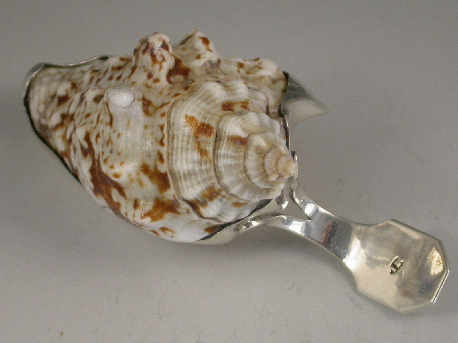 Rare Antique Silver Mounted Conch Shell Caddy Spoon