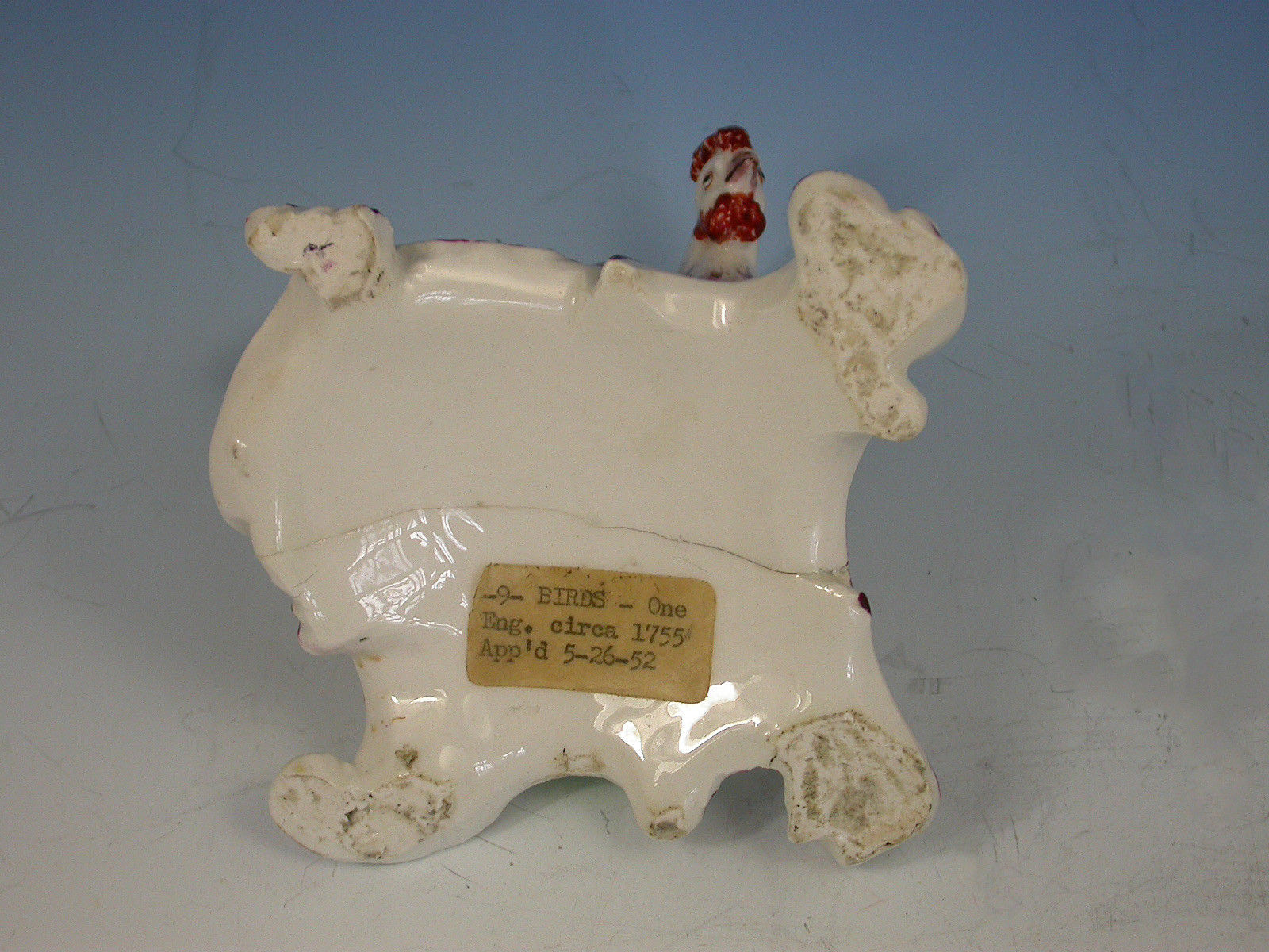 Fire crack to base and small manufacturing fault to the wing, very minor restoration to the scroll under the tail.