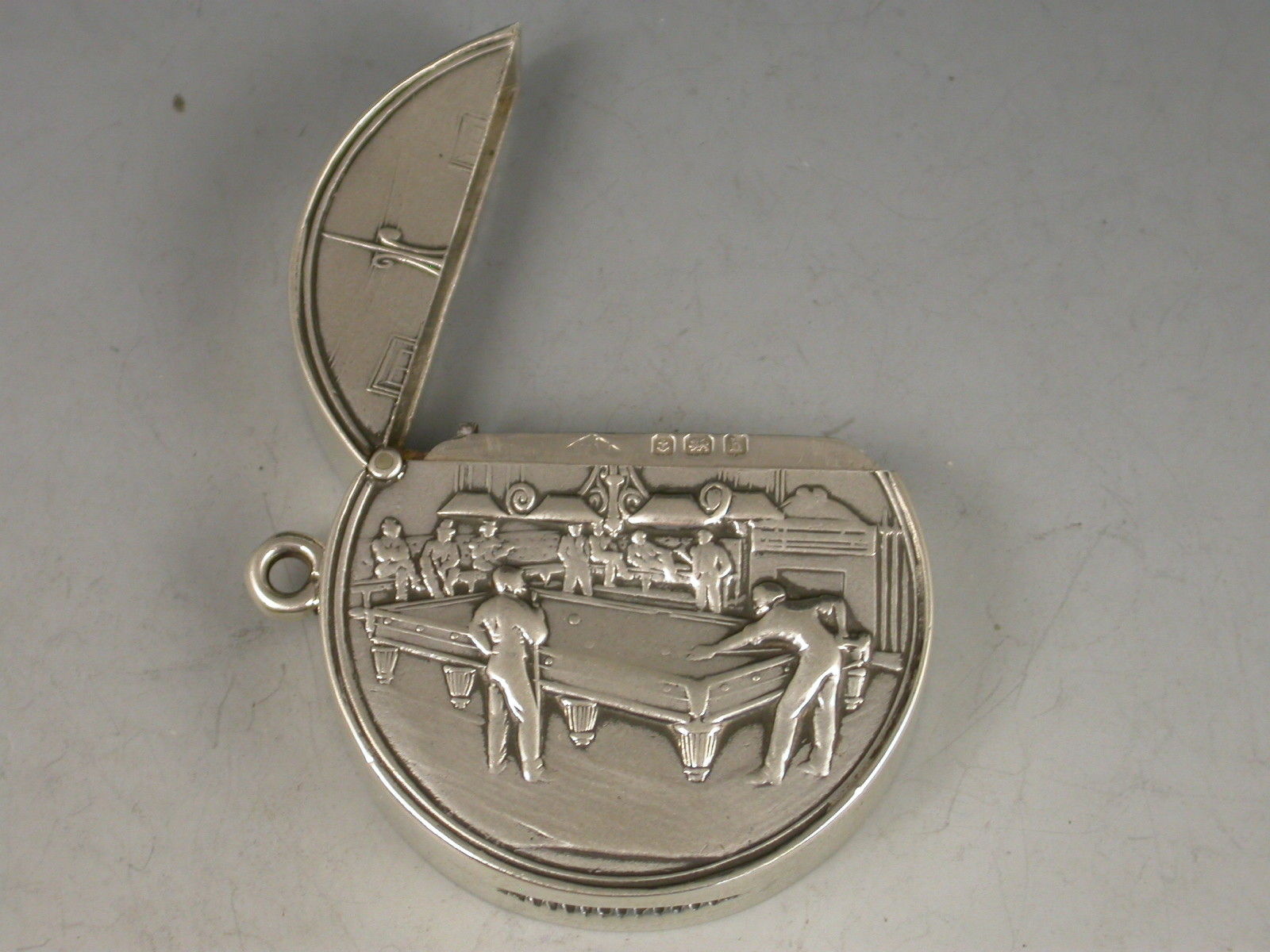Rare Edwardian Antique Silver Billiards Vesta Case