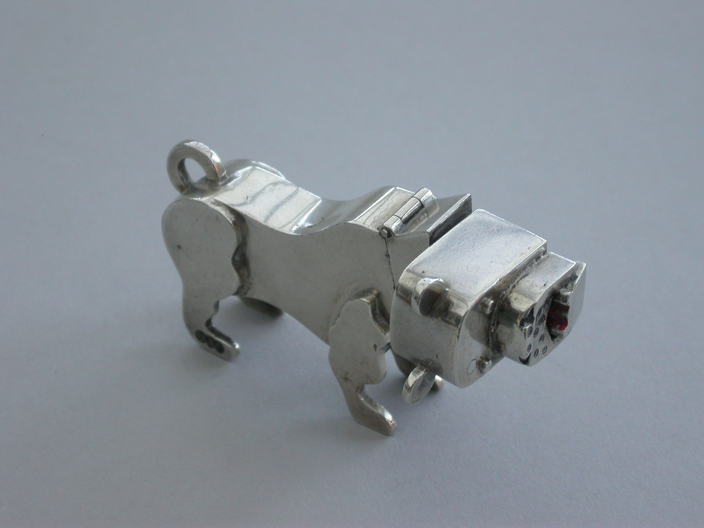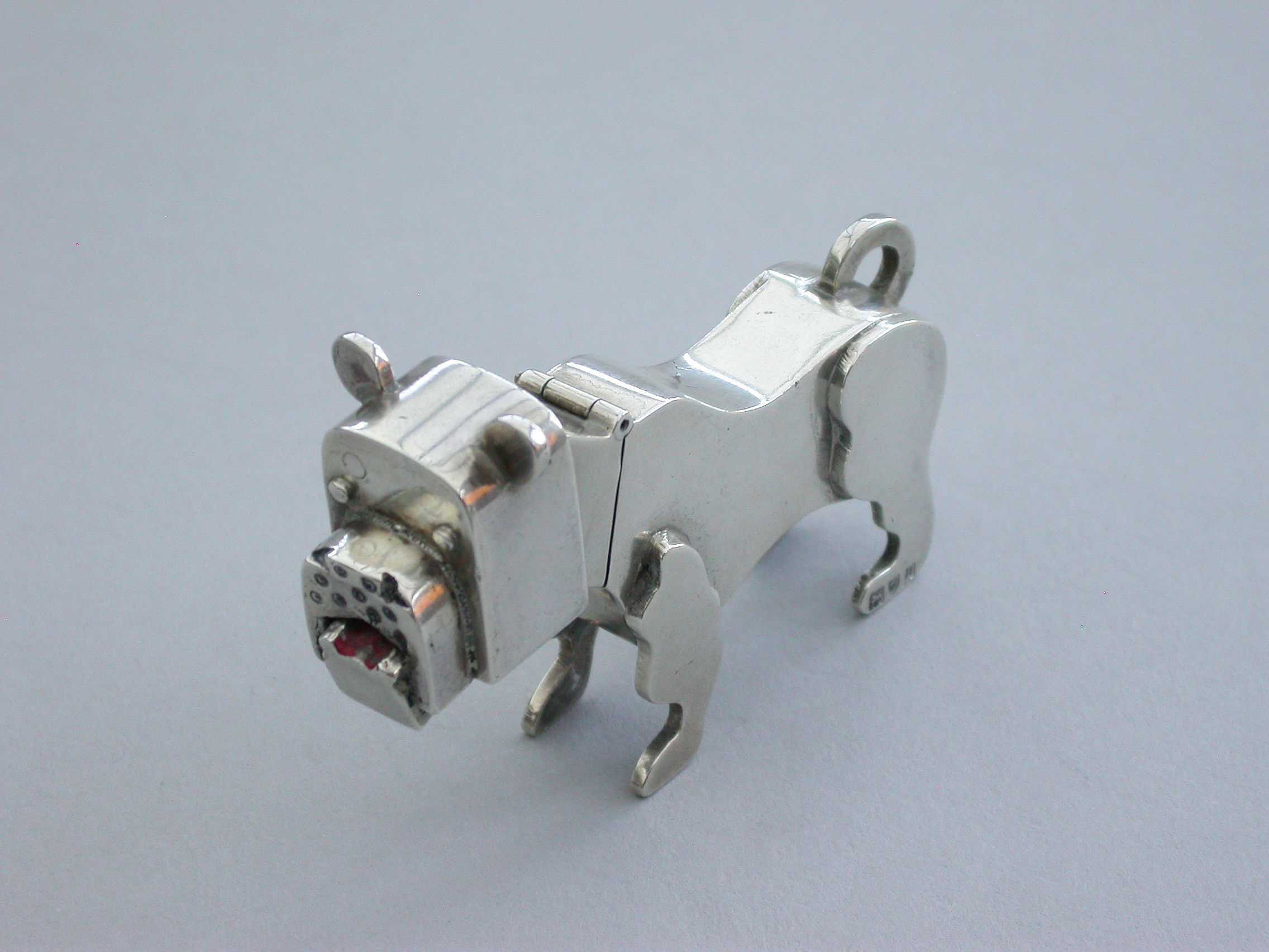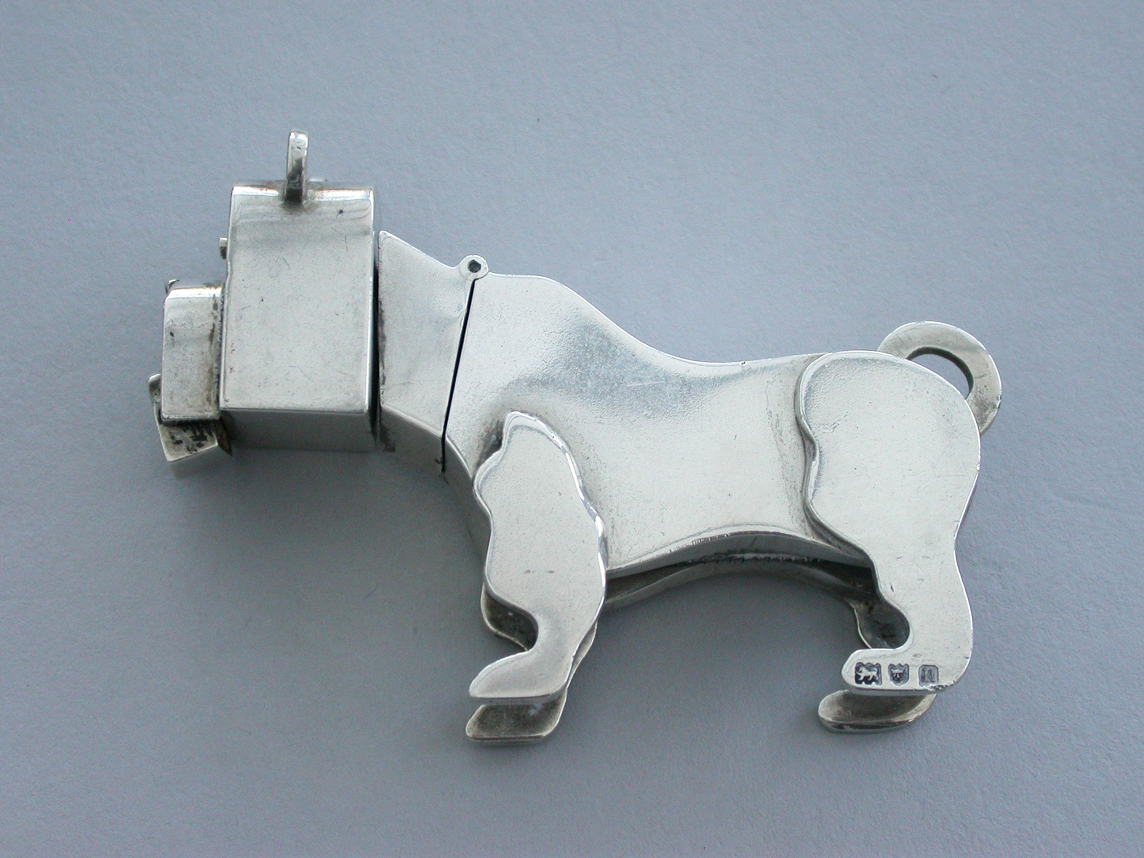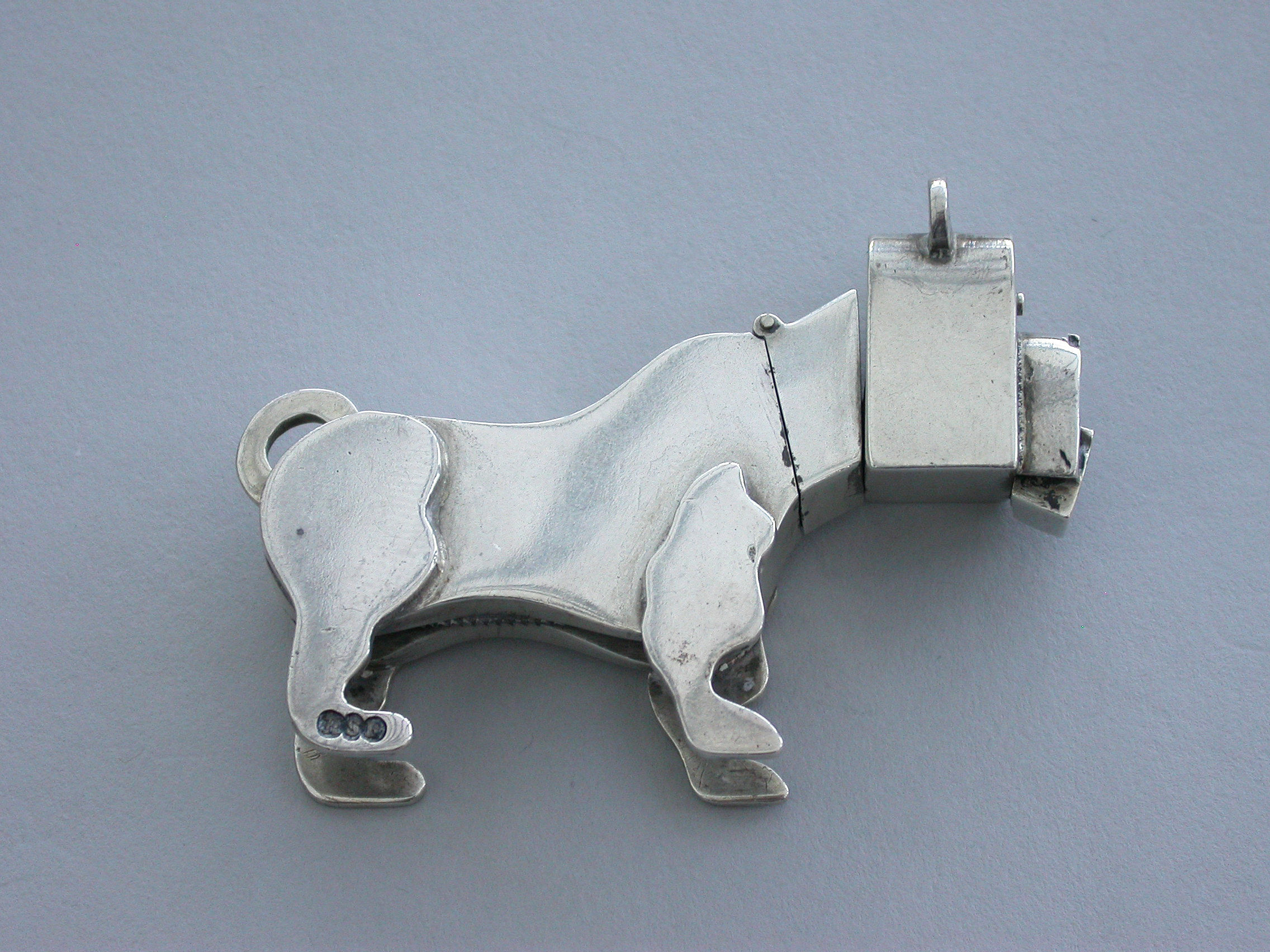 Rare Edwardian Novelty Antique Silver Articulated Dog Vesta Case