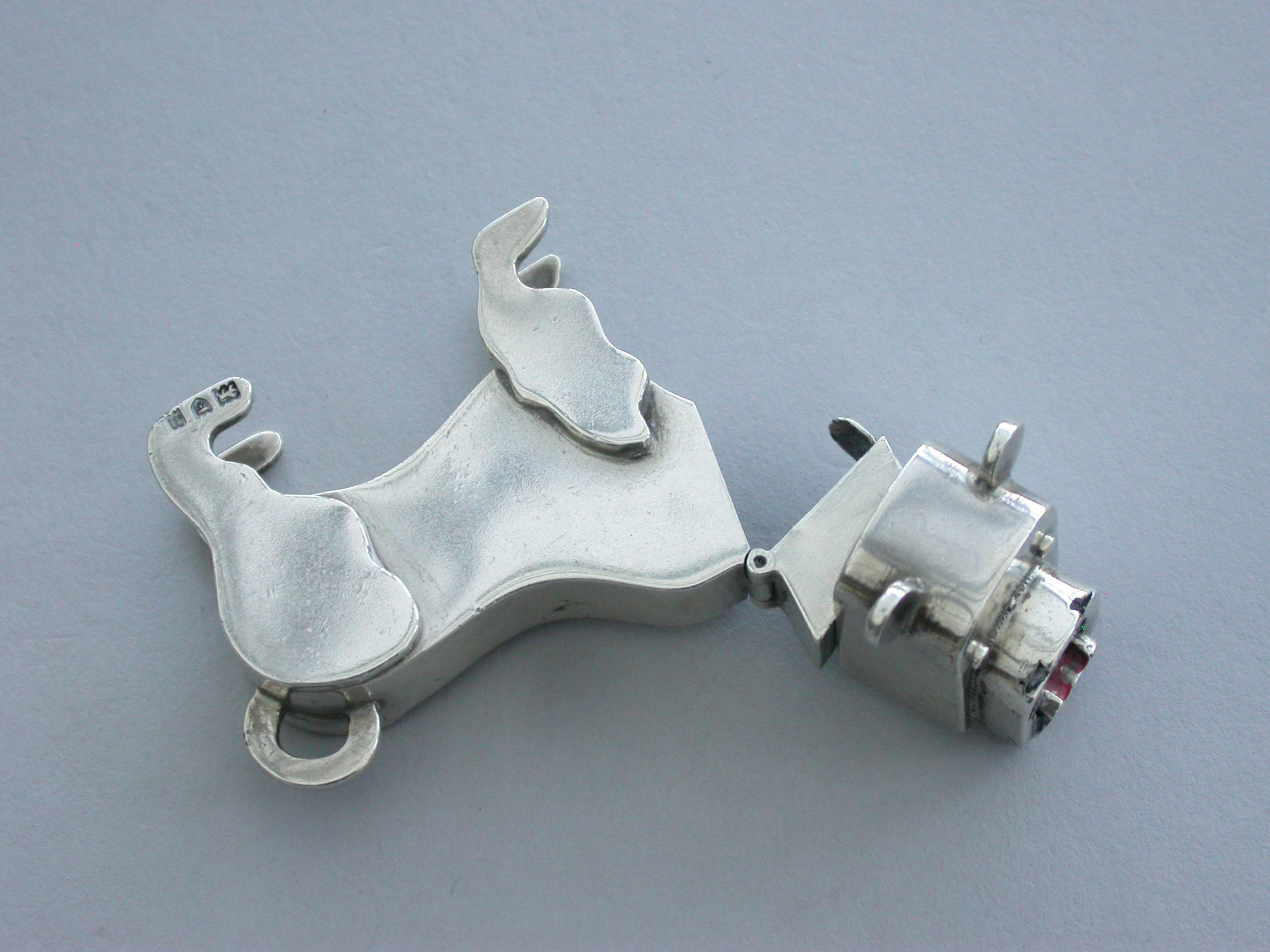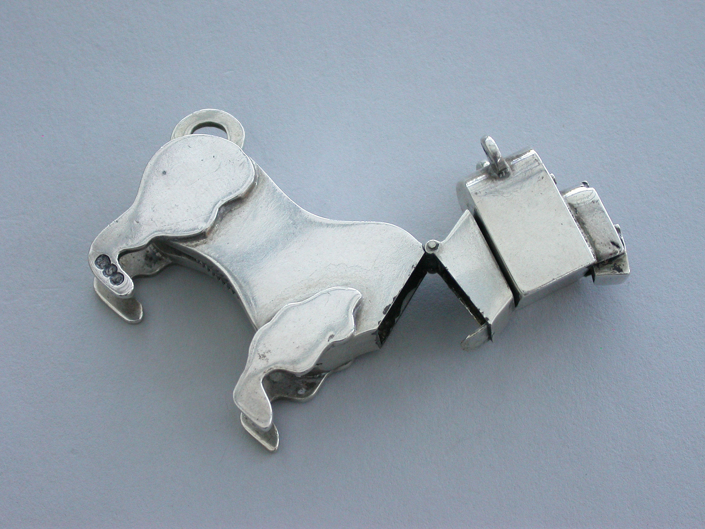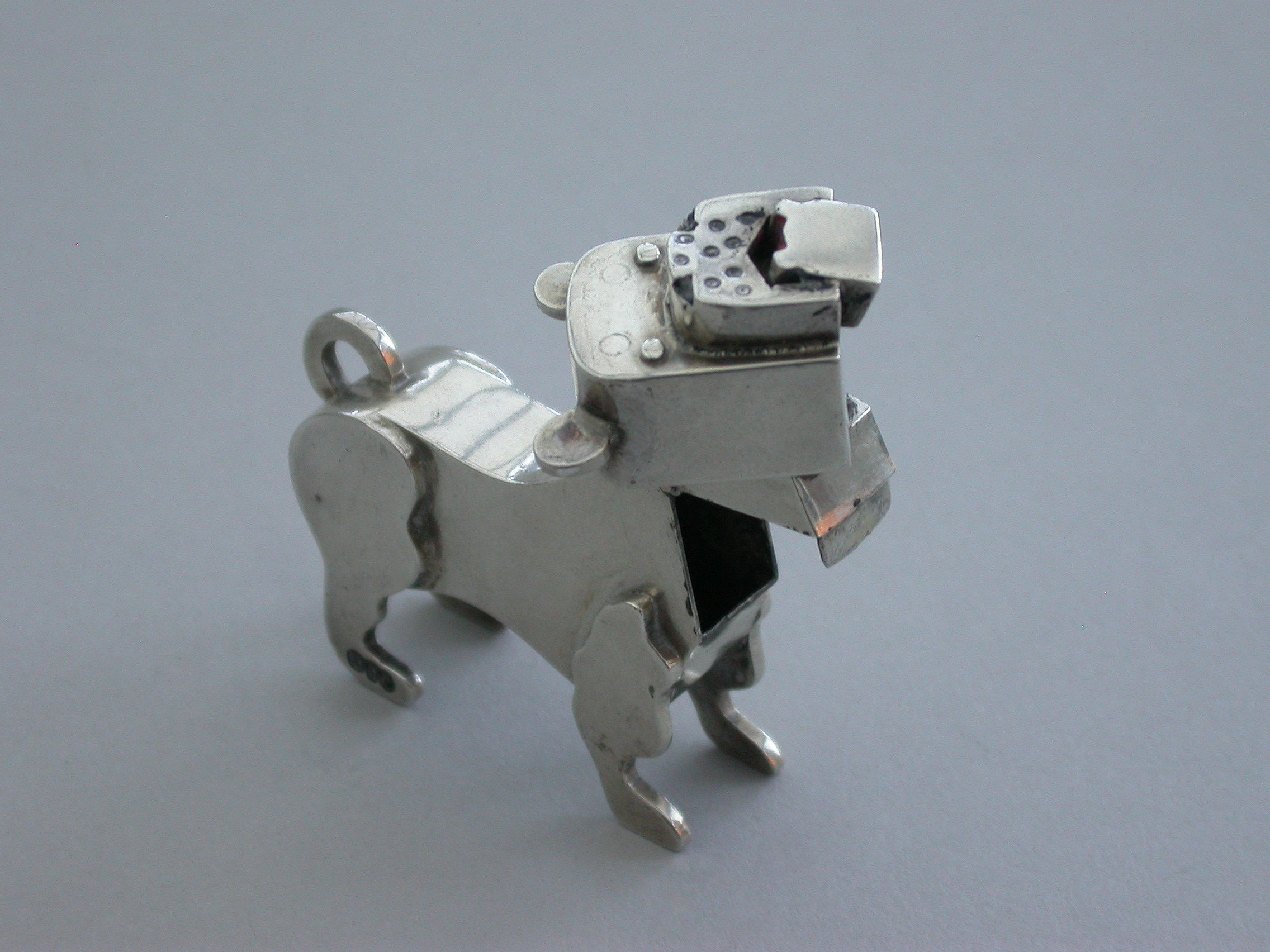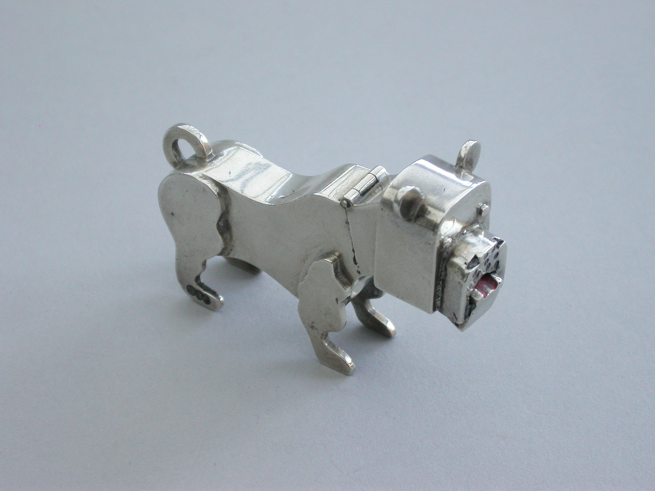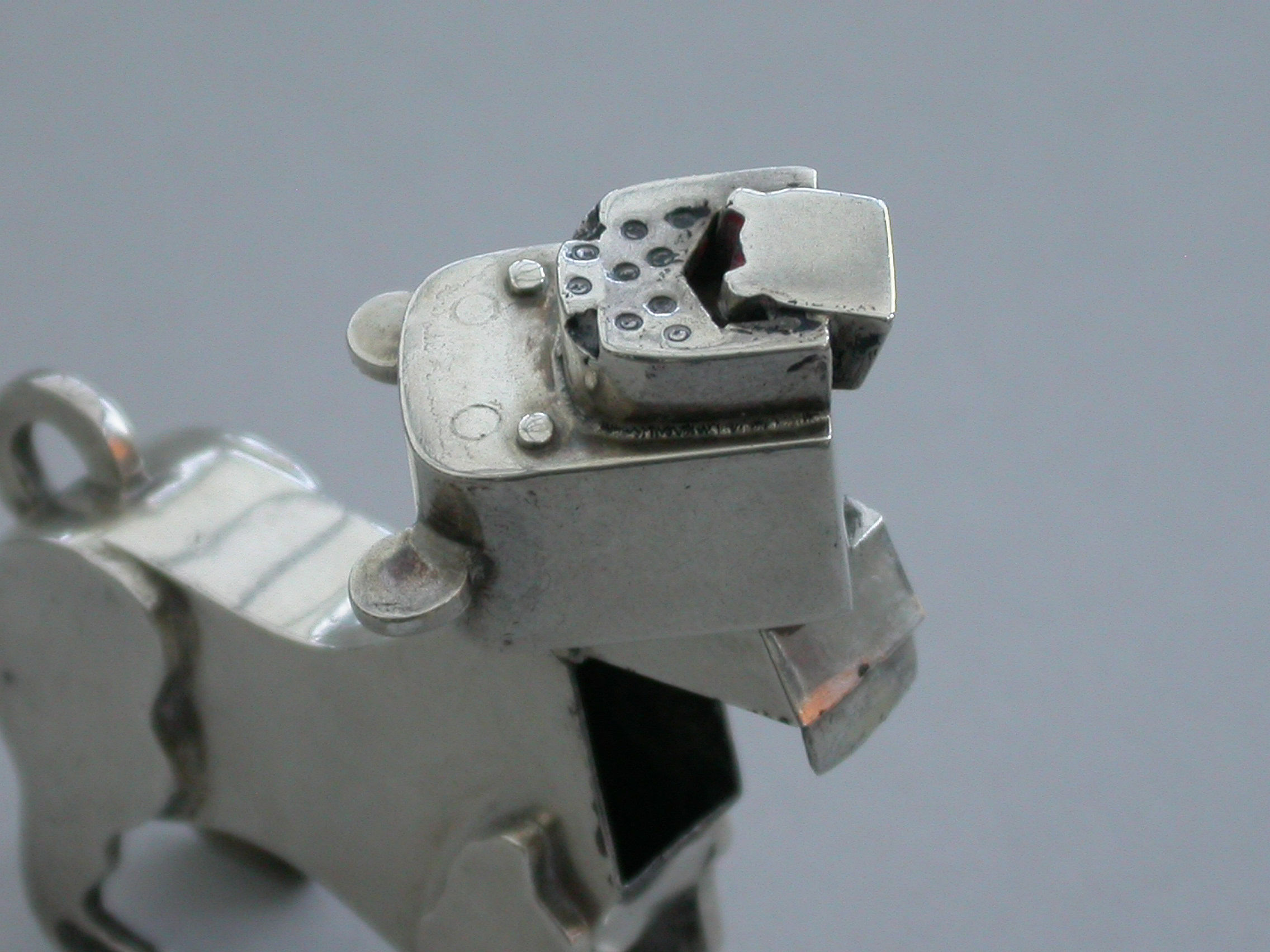 Rare Edwardian Novelty Antique Silver Articulated Dog Vesta Case