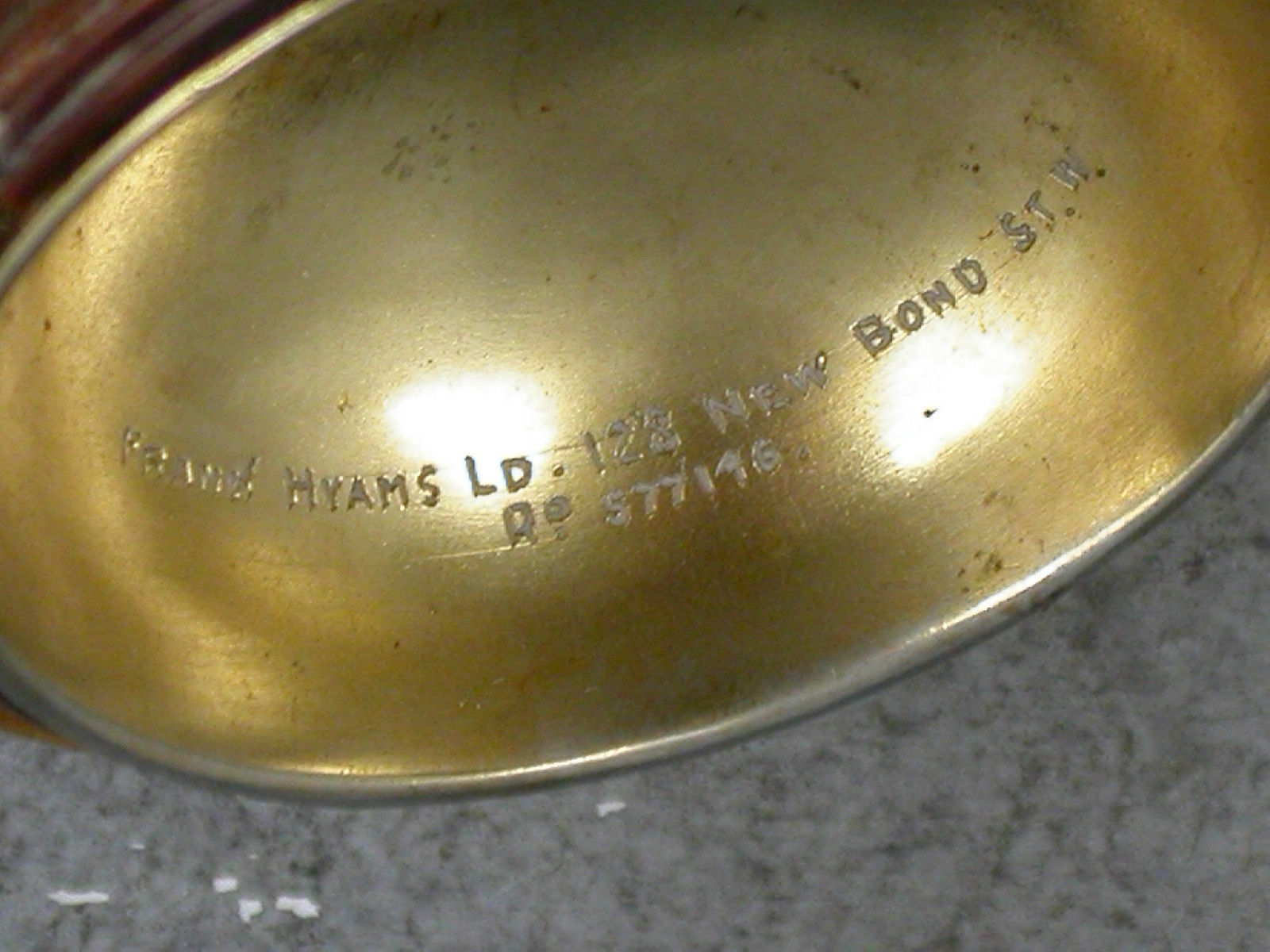 Stamped: Frank Hyams Ld. 128 New Bond Street. W. & with registered design number 577146.