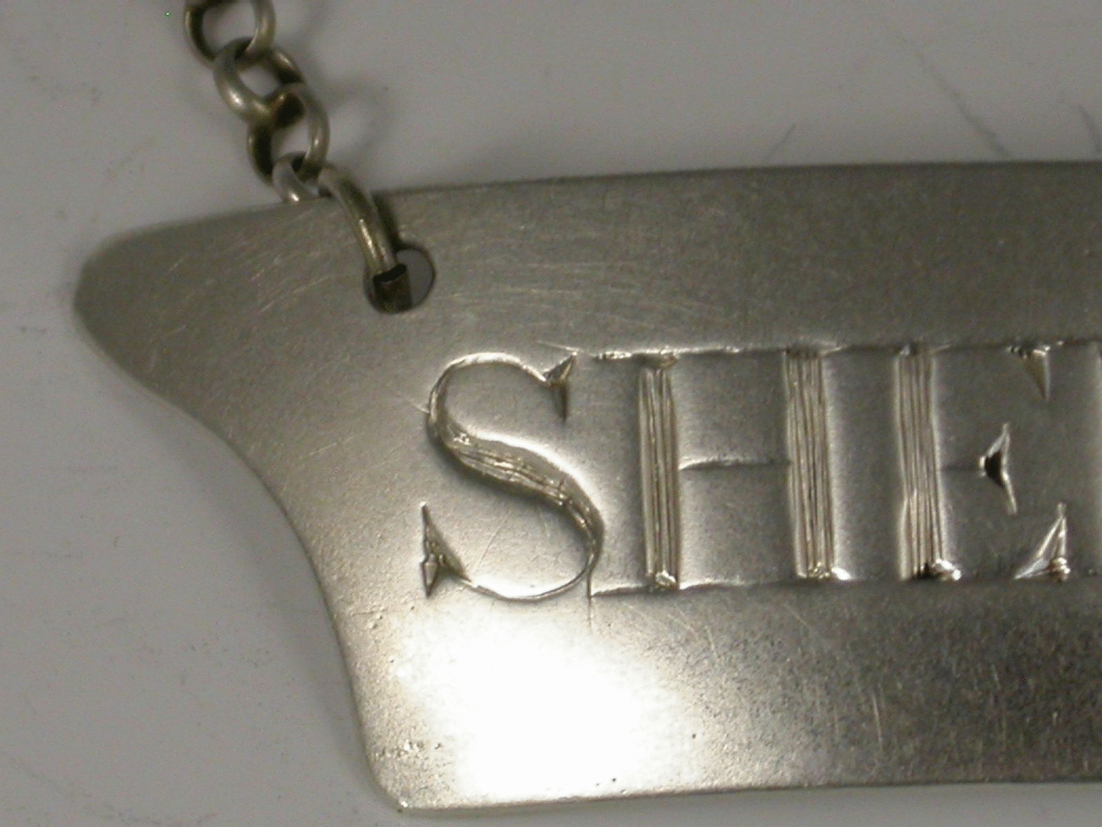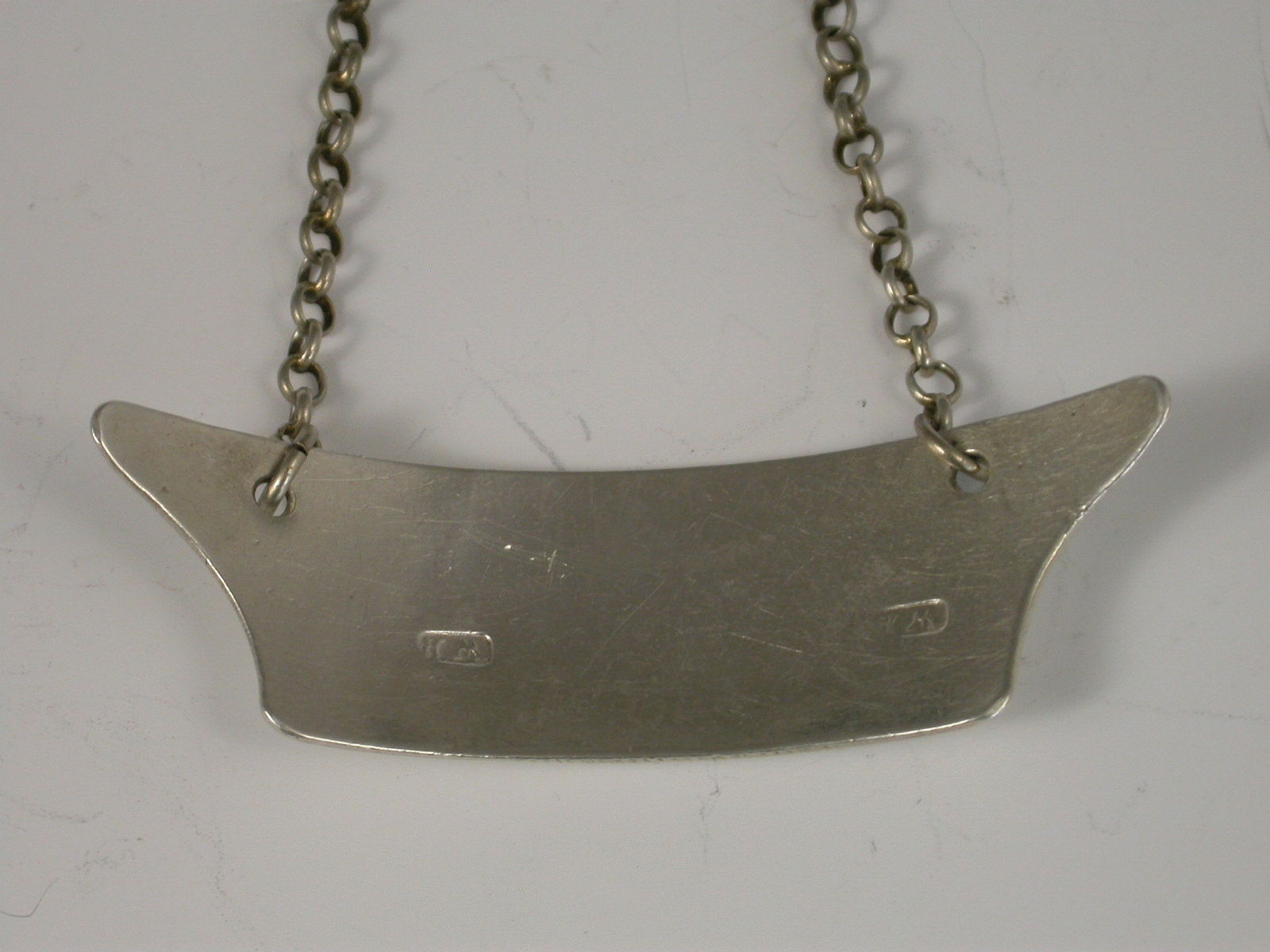 An unusual George III silver Wine Label of curved double Anvil shape, incised for Sherry.
