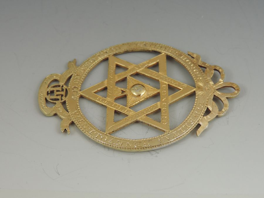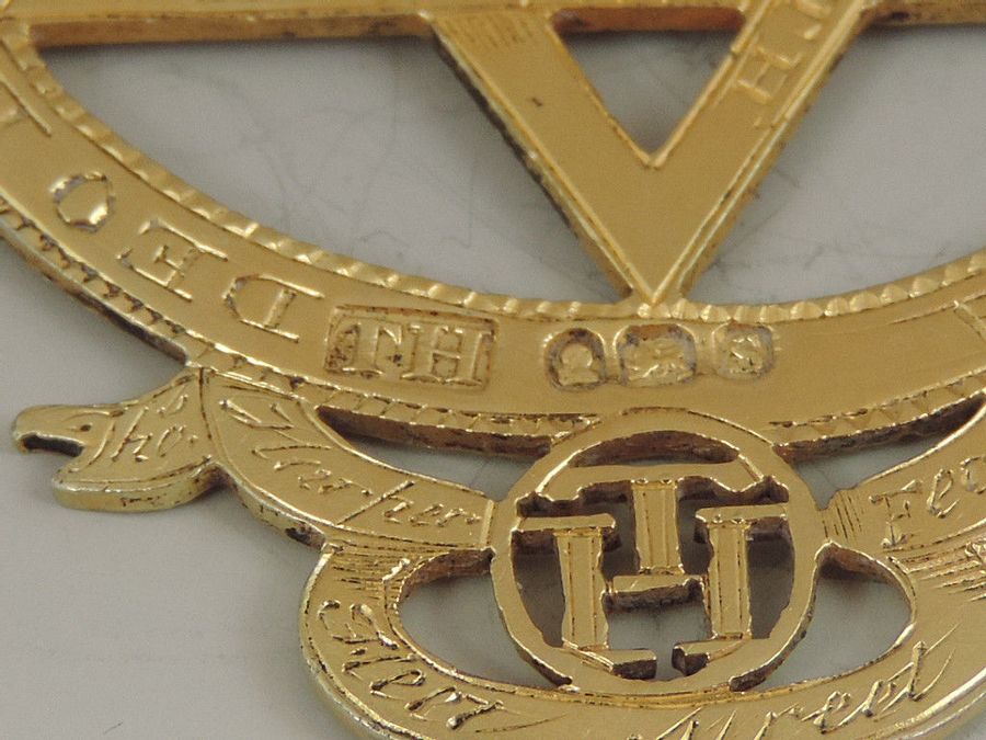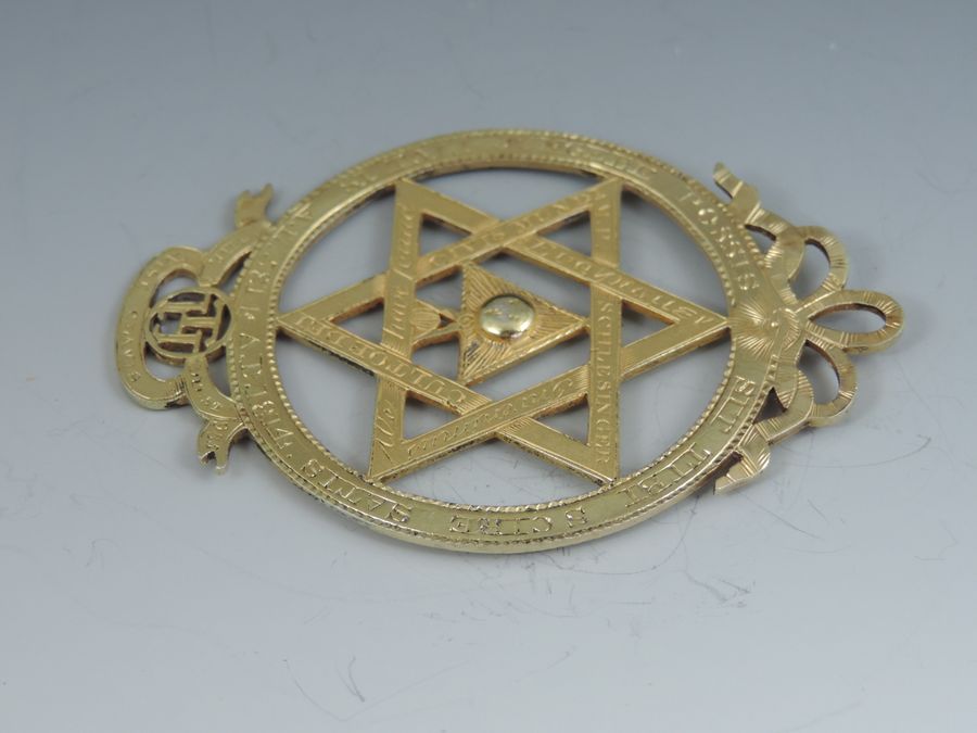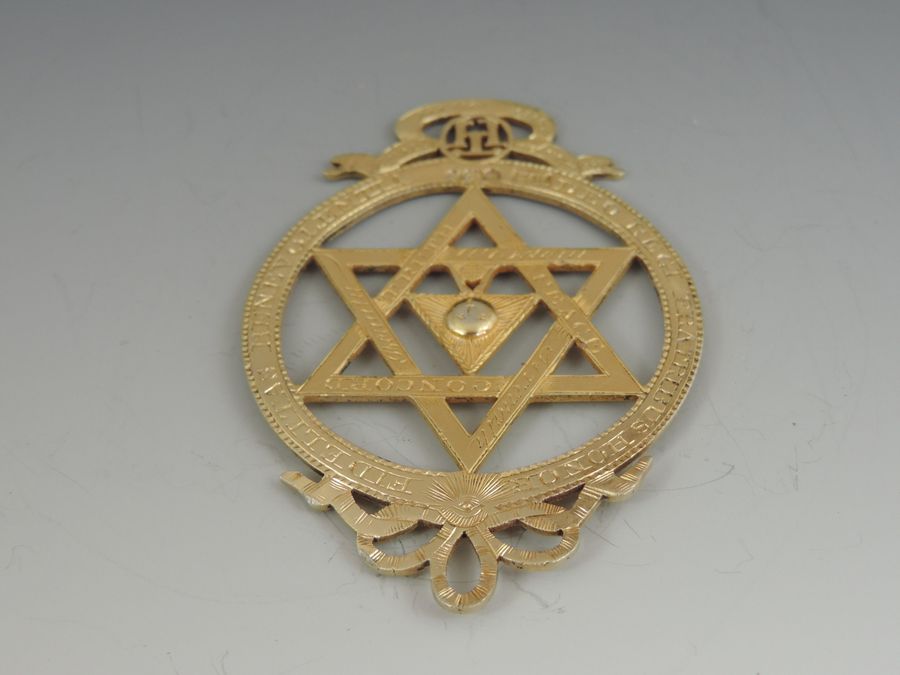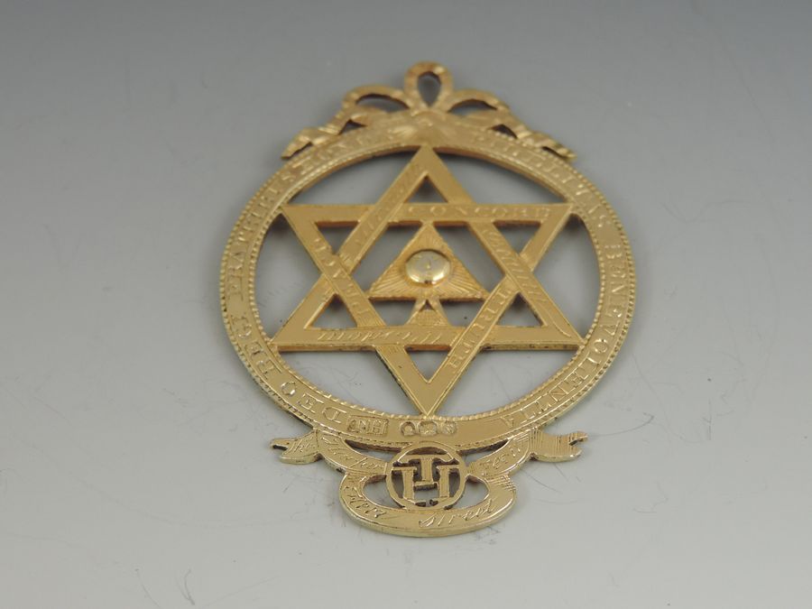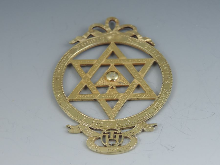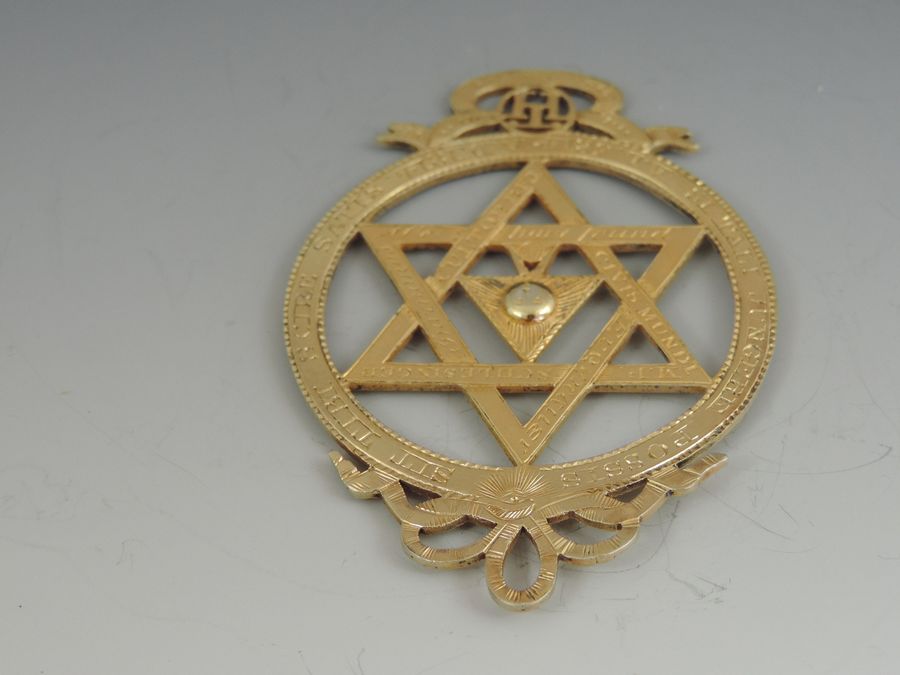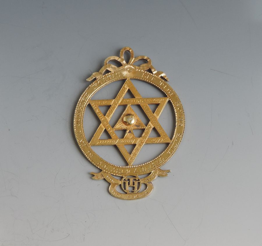 An extremely rare George III silver gilt Masonic Royal Arch Chapter Jewel, pierced with Masonic emblems and numbered 985.
