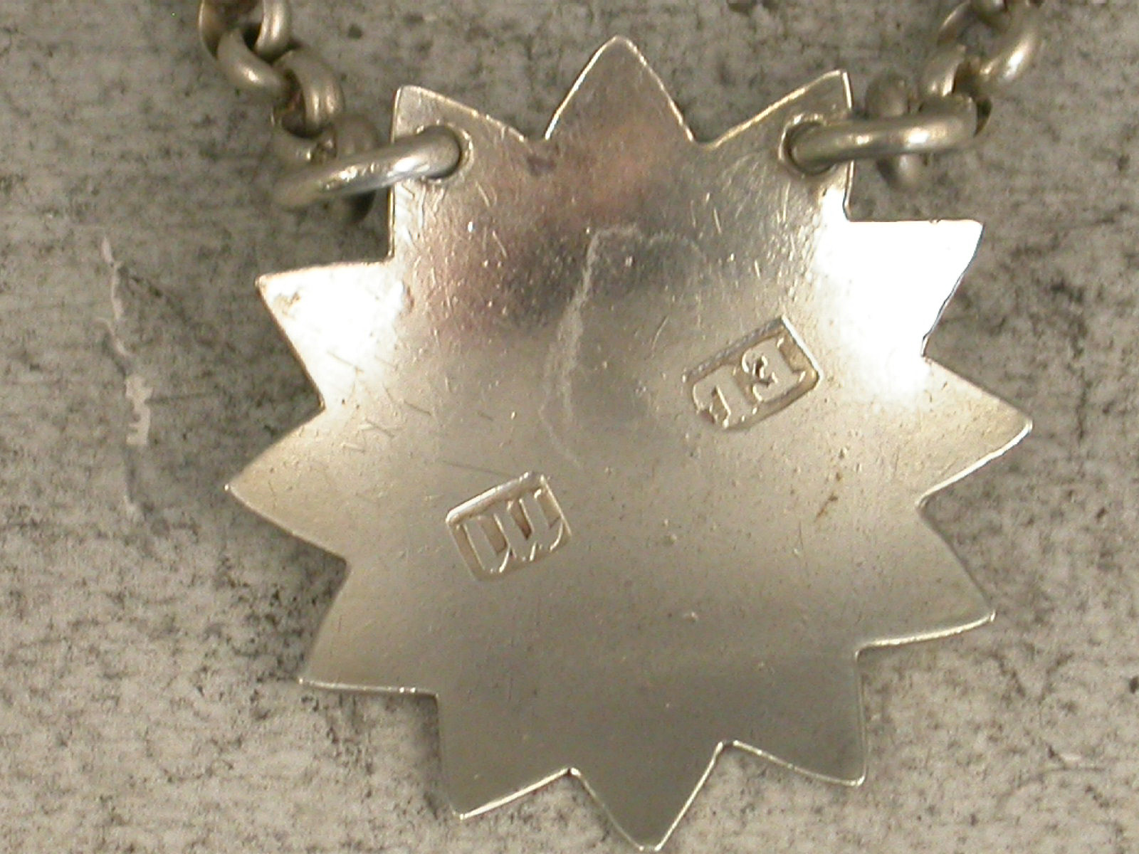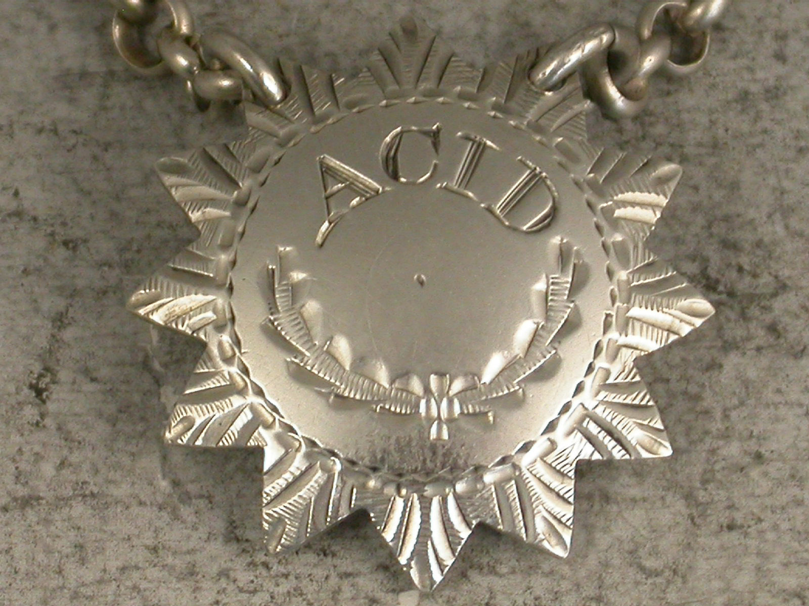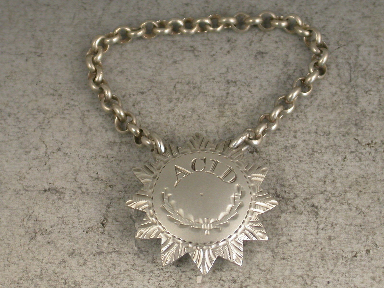An extremely rare and unusual small 18th century Scottish Provincial silver ""Boudoir Label"" for use on medicine bottle or small decanter, of twelve pointed star form with bright-cut engraved decoration, incised for Acid.