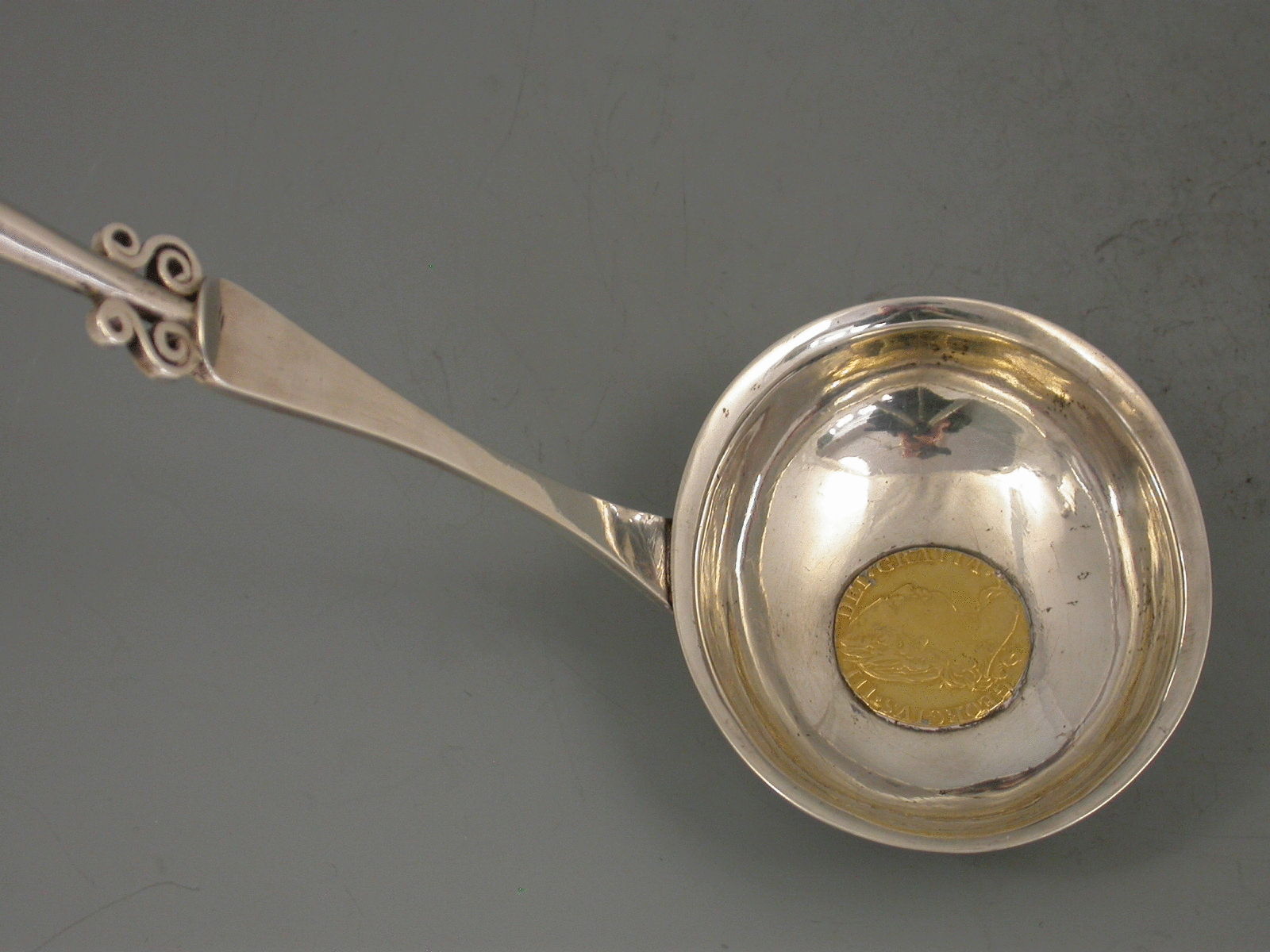Rare George III Scottish Provincial Toddy Ladle set with Georgian Gold Guinea