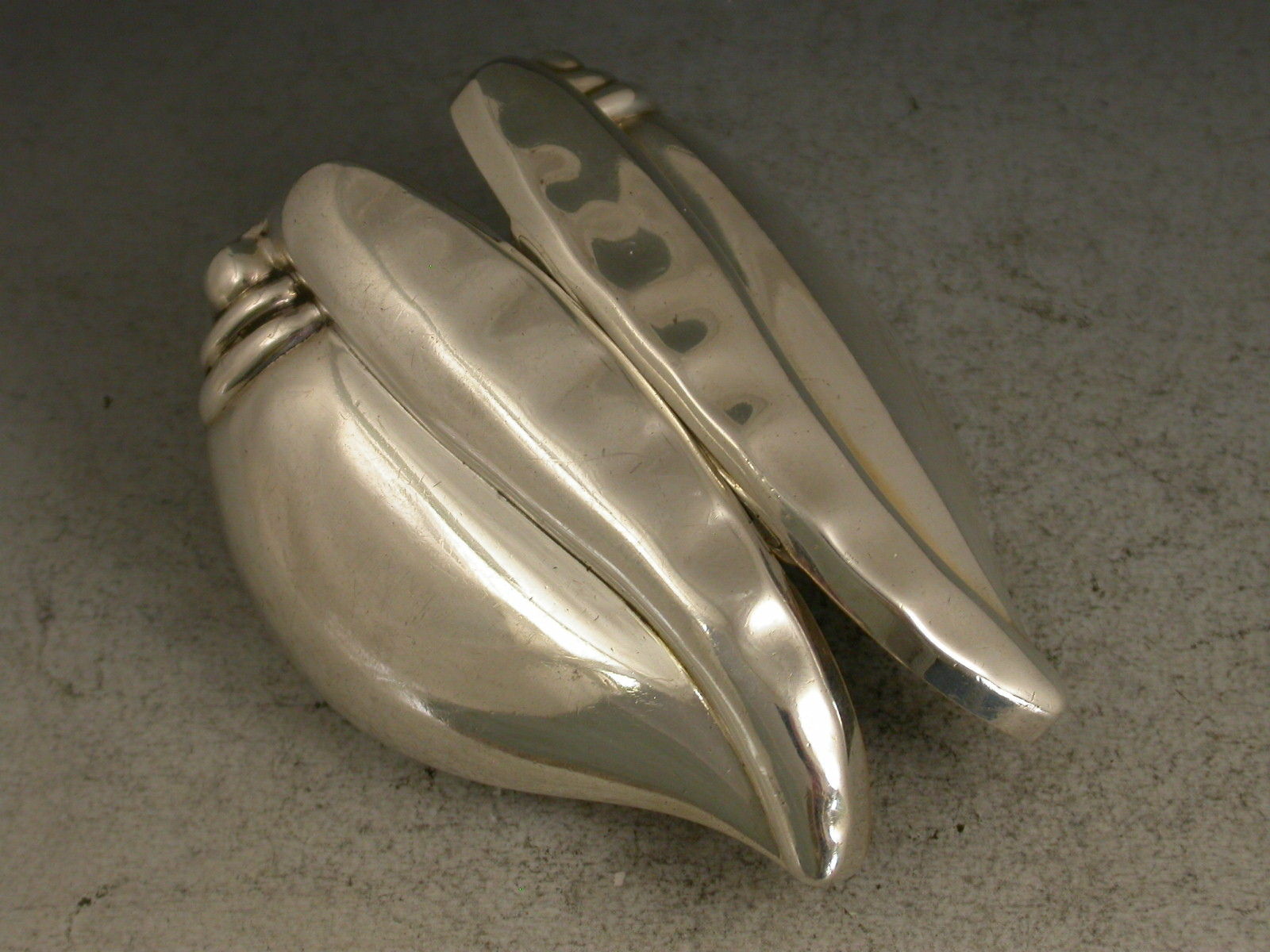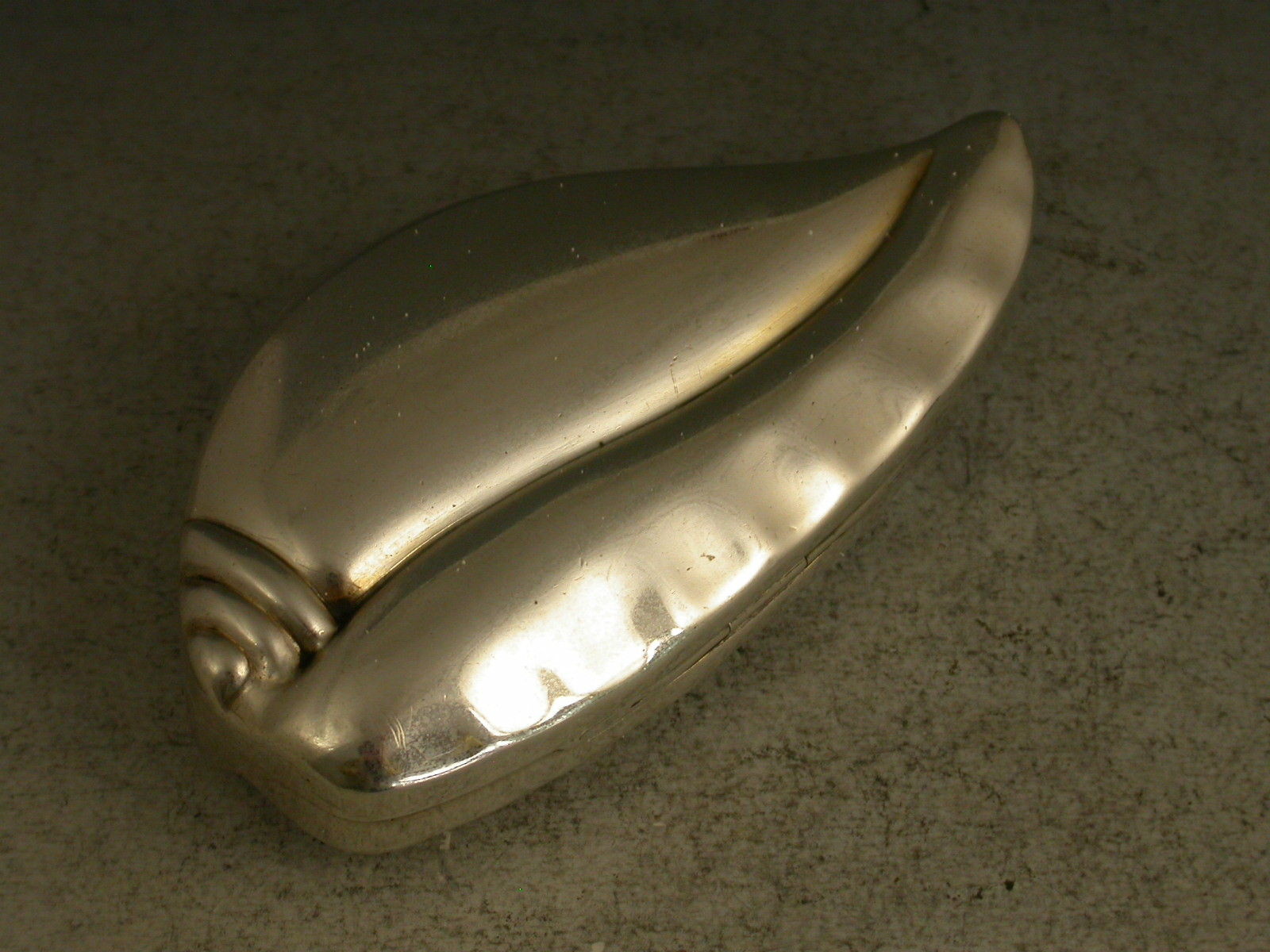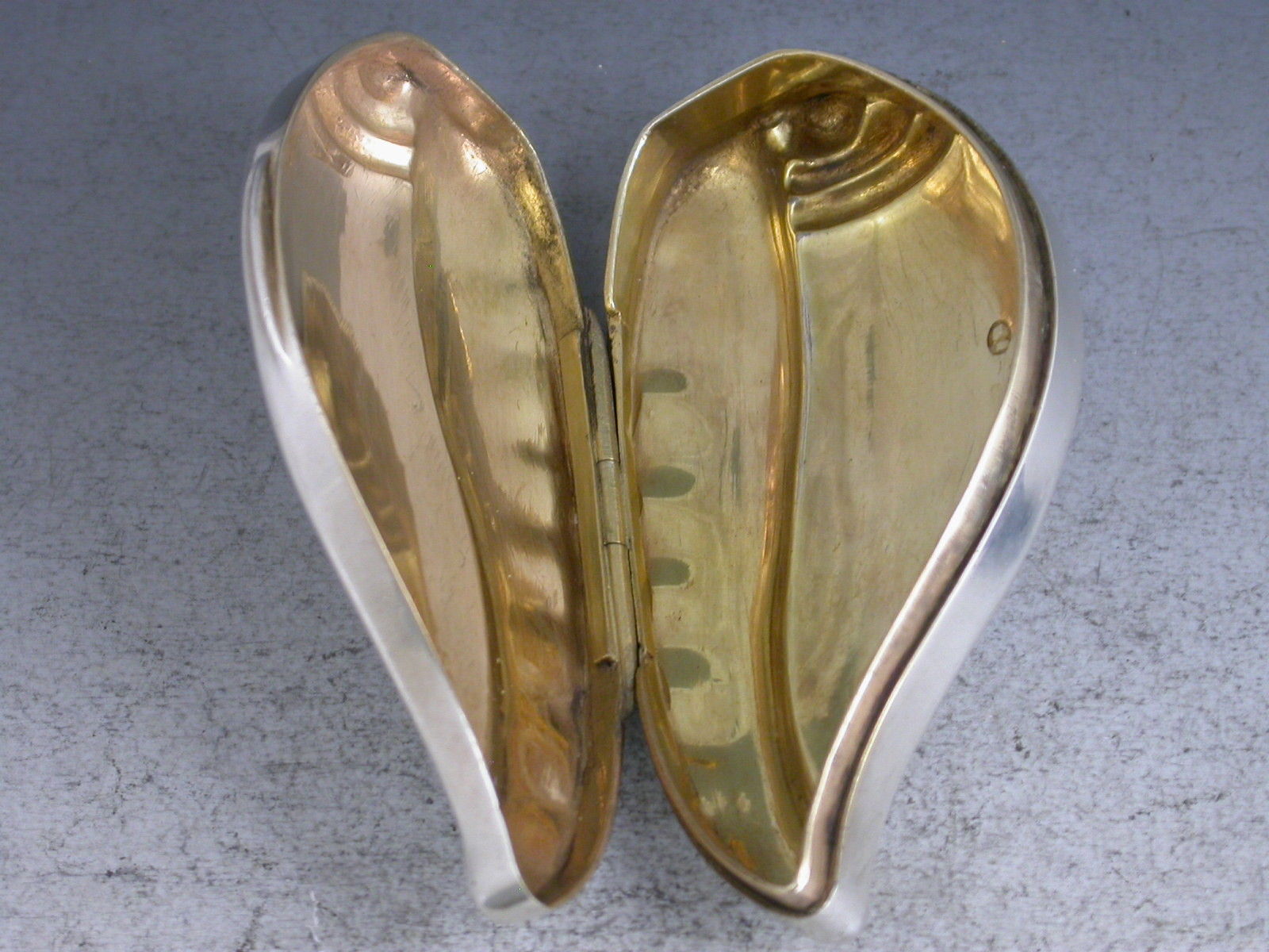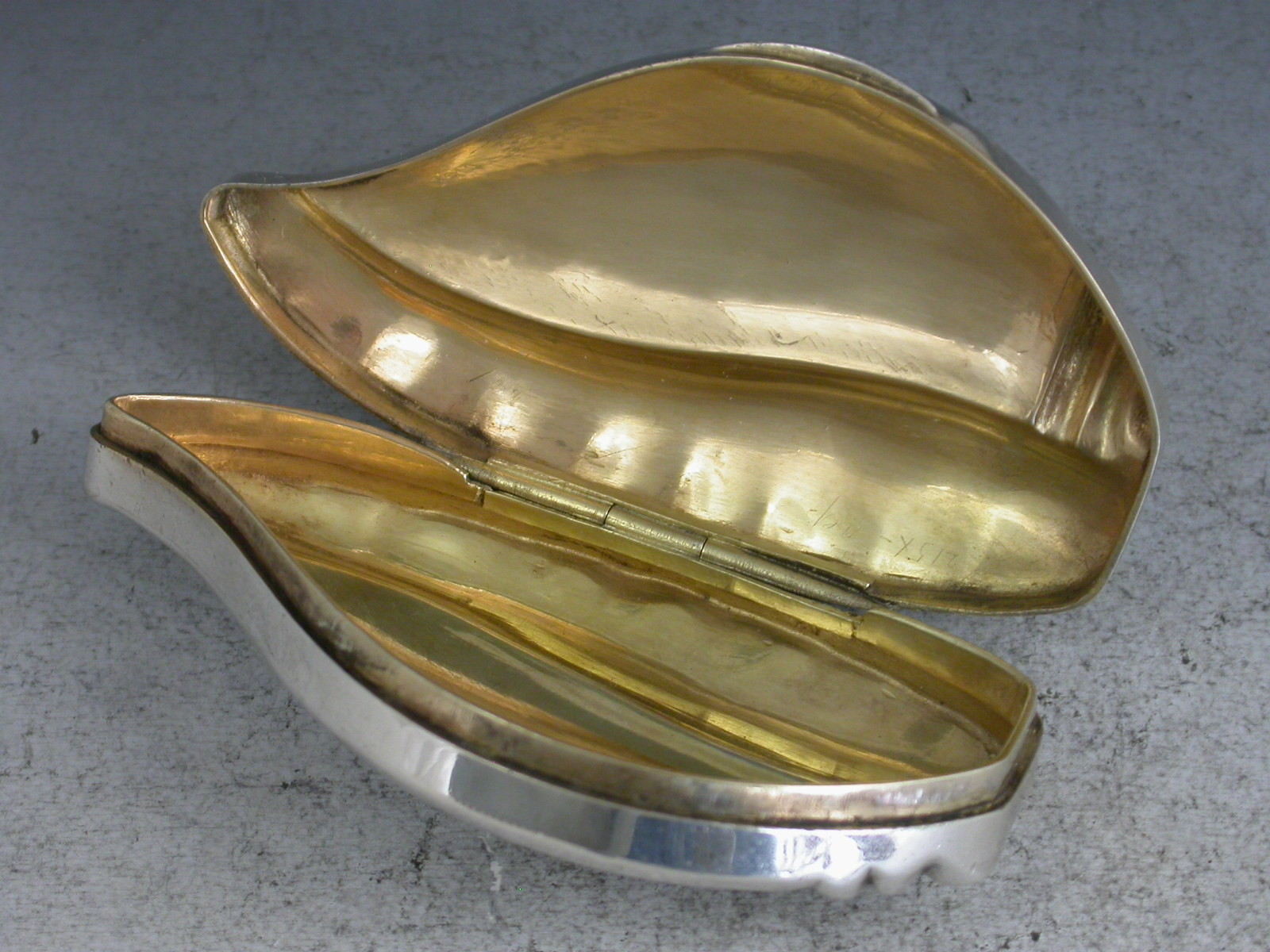 A very rare and unusual George III silver Snuff Box made in the form of a double sided Conch Shell, the central hinged lid opening to reveal a silver gilt interior.