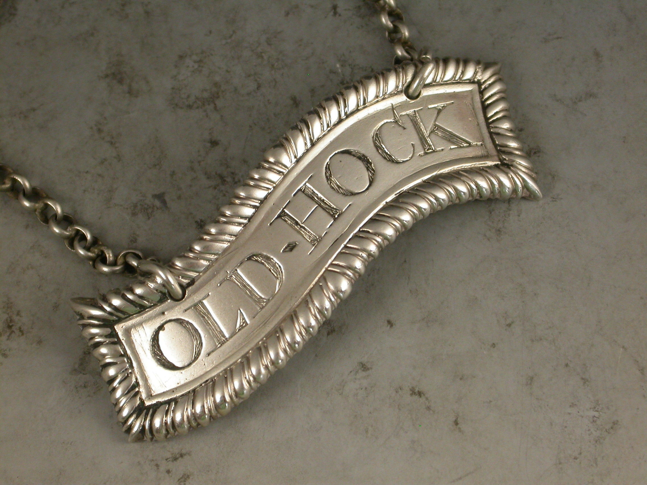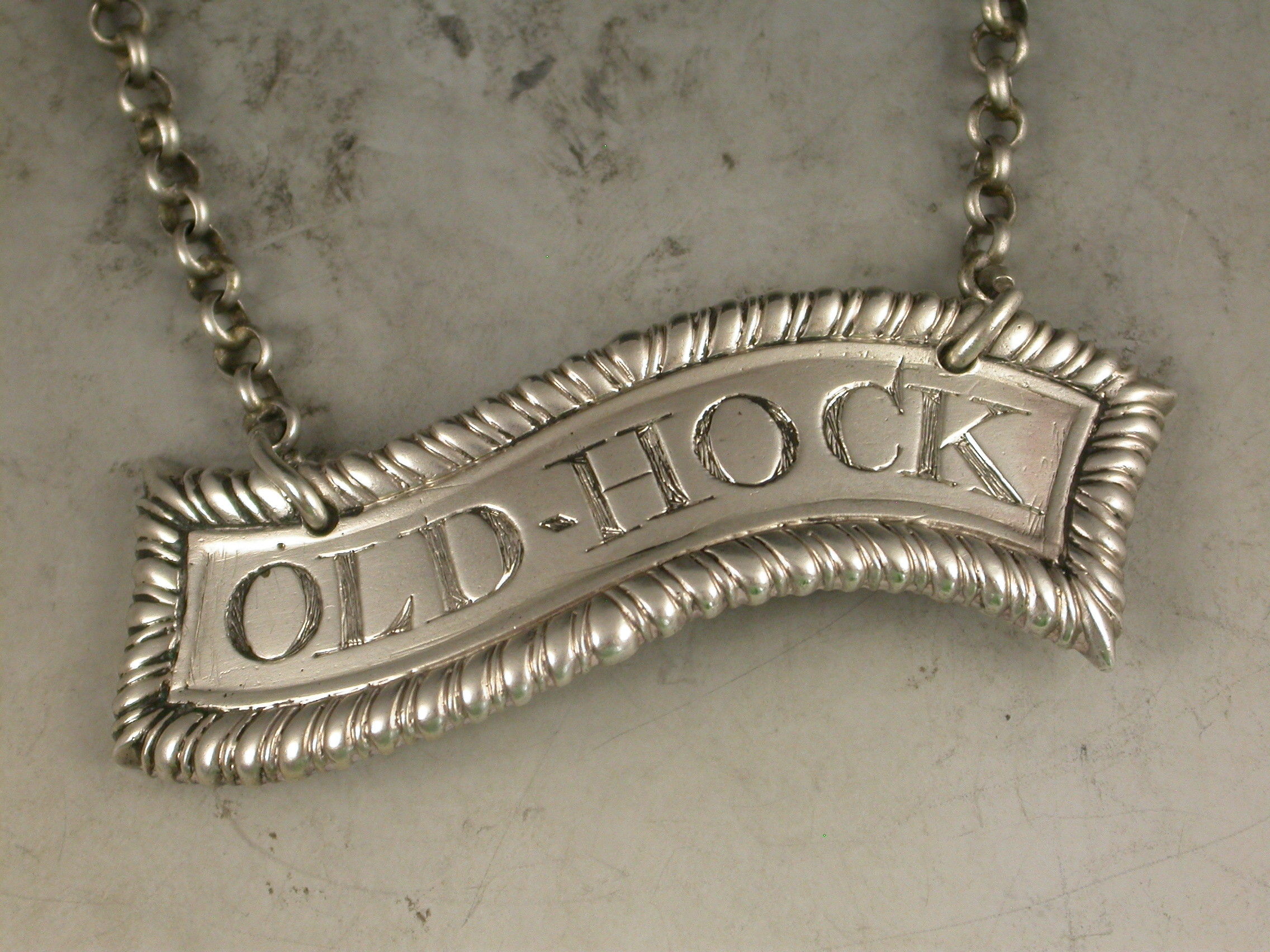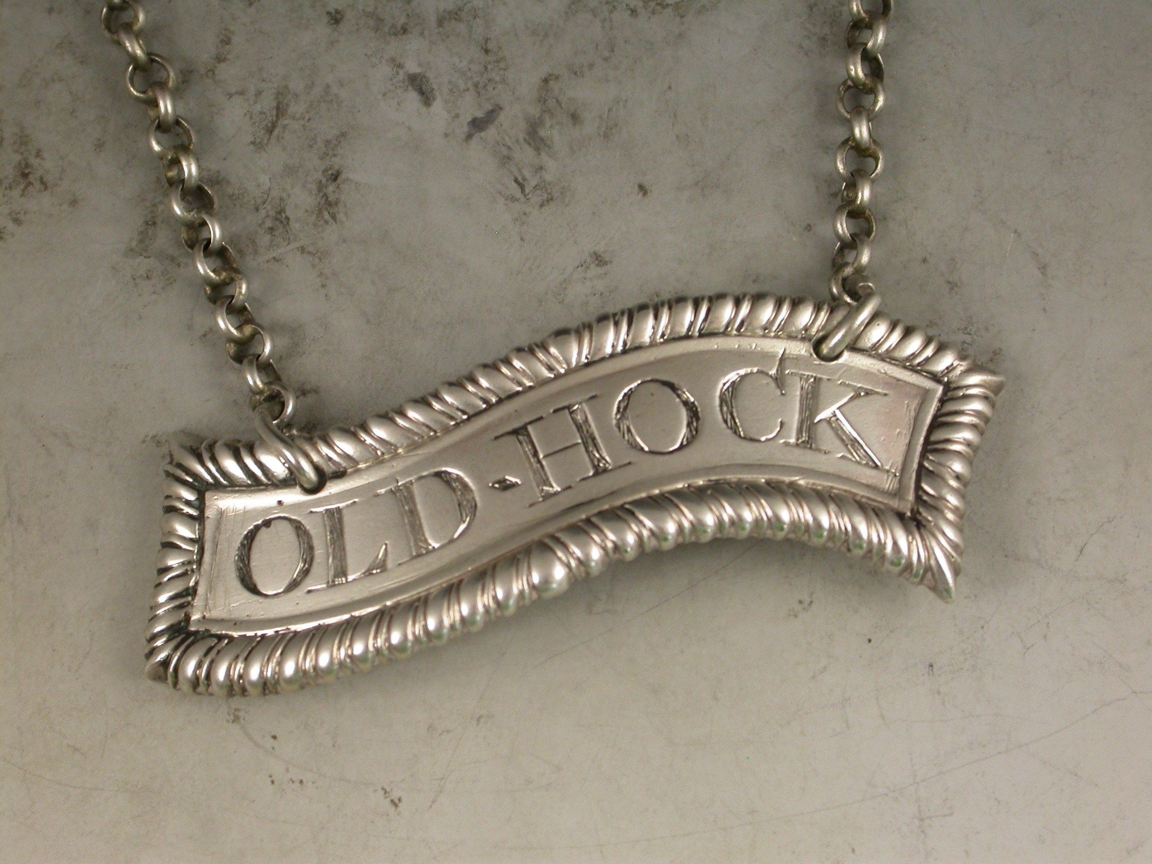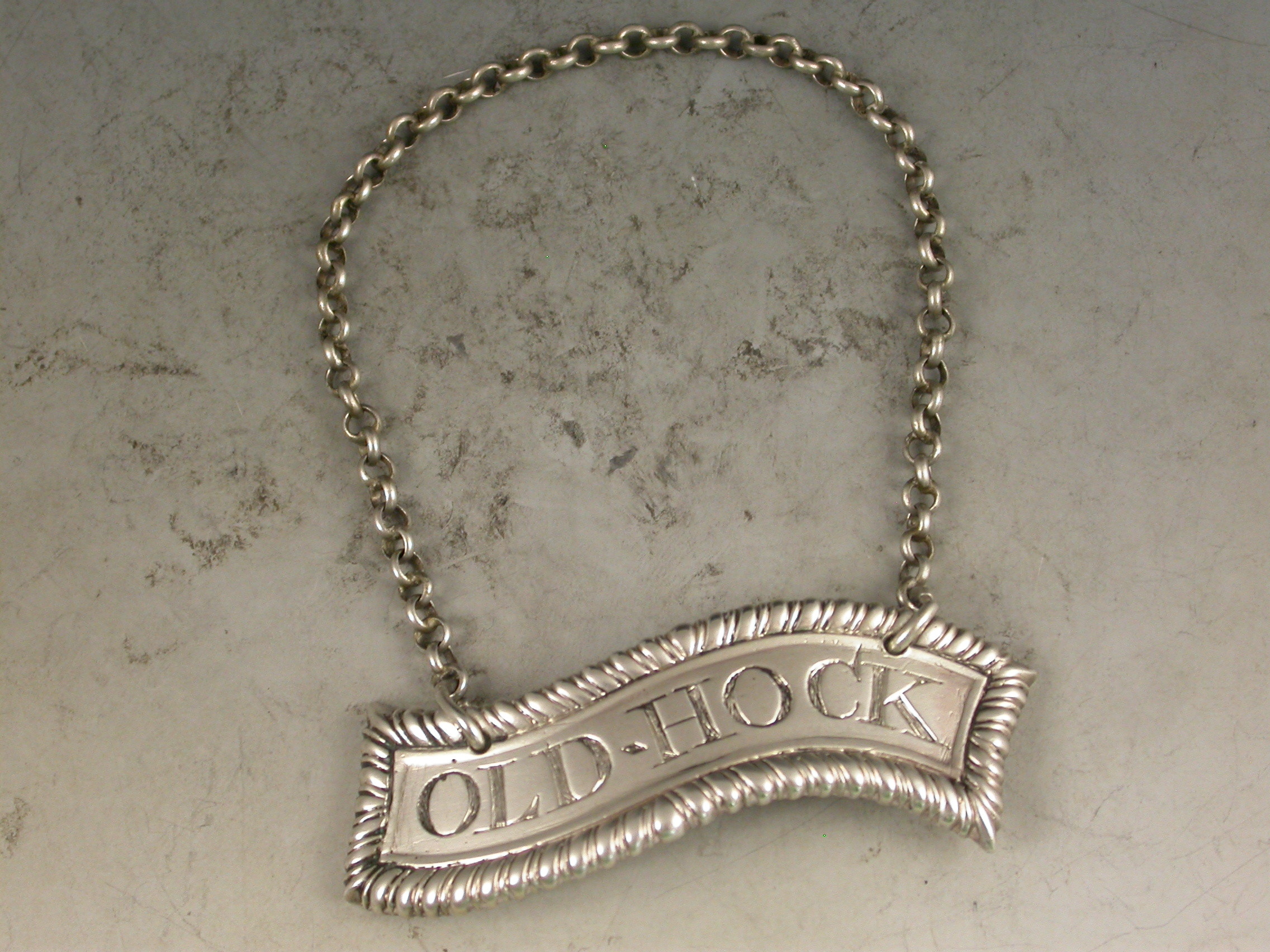 Rare George III Silver Scroll Wine Label 'Old Hock'