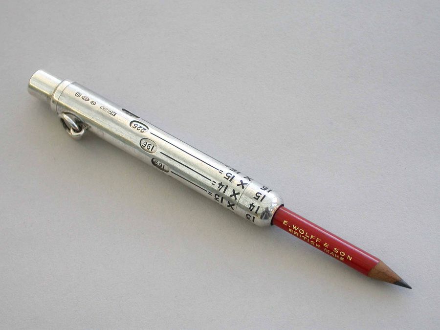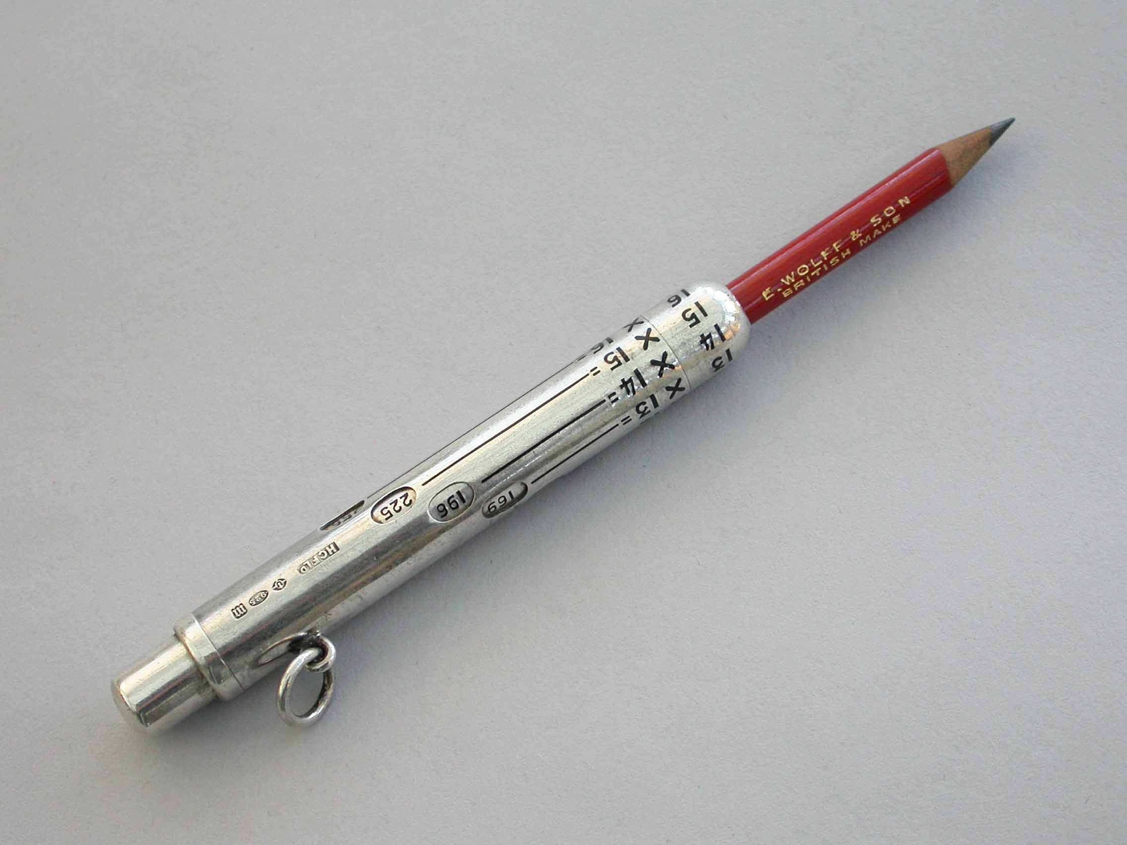 Rare George V Silver & Enamel Gravity Drop Multiplication Calculator Pencil