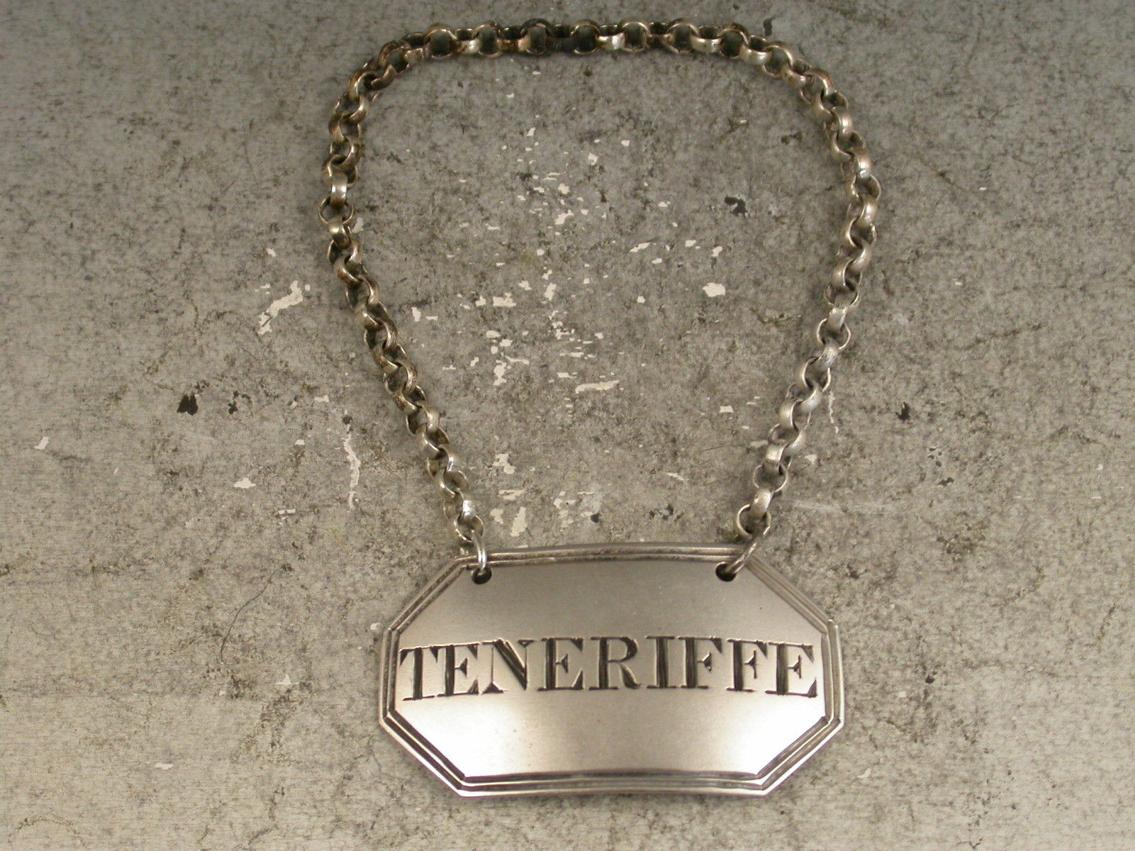 Rare Irish Provincial Silver Wine Label 'Teneriffe'