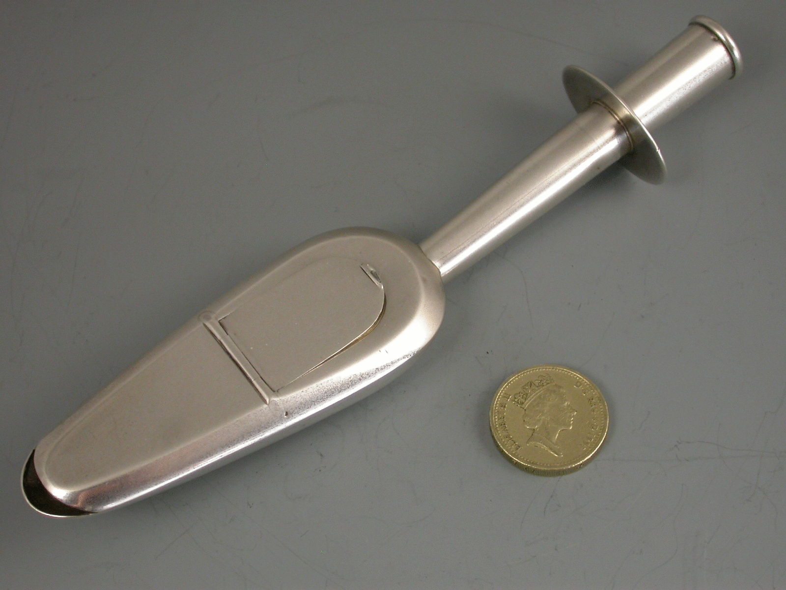 Rare Victorian silver 'Gibson's Patent' Medicine or Castor Oil Spoon of a large size, with hollow tubular handle and a covered bowl with hinged lid.