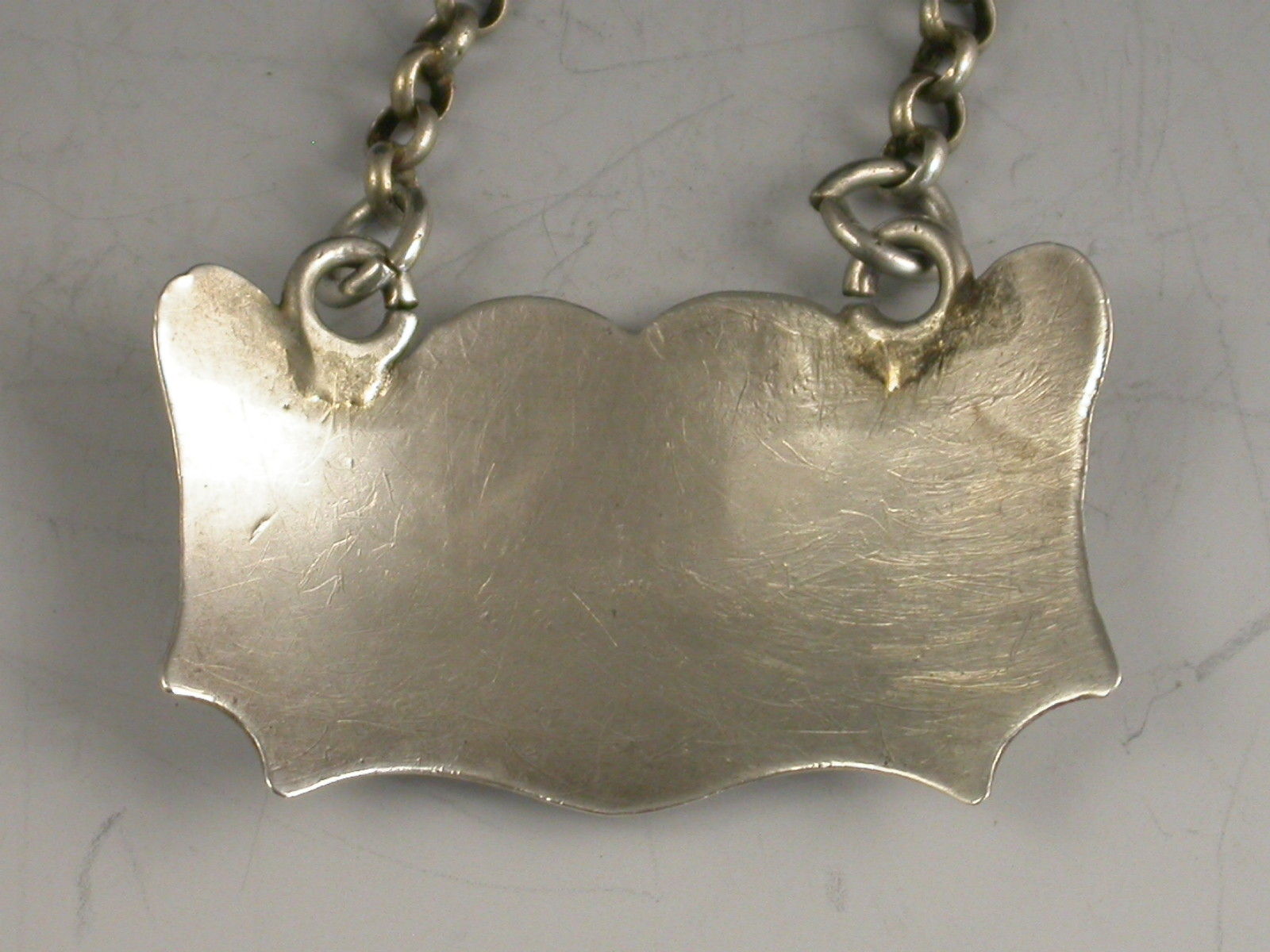A rare and unusual mid 18th century silver Sauce Label of shaped escutcheon form with attached eyelets, incised for Cinnamon (a rare name on Sauce Labels).