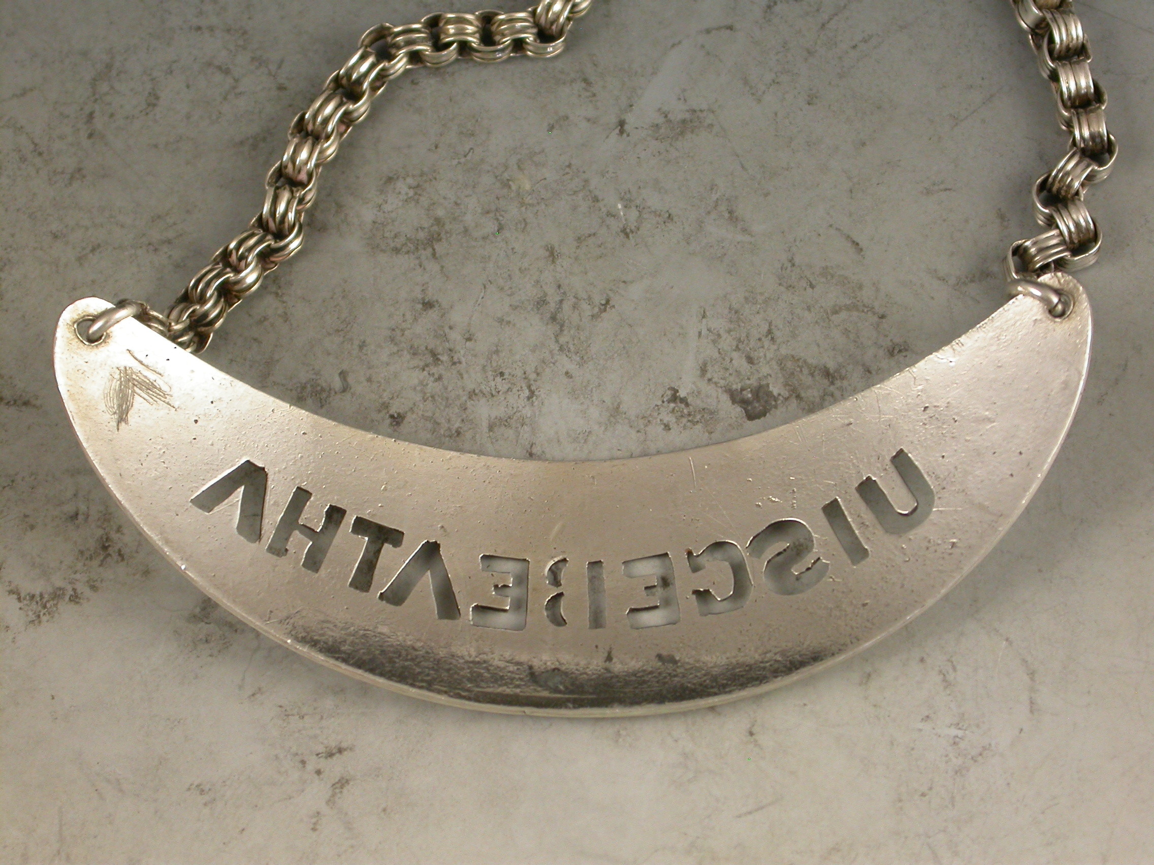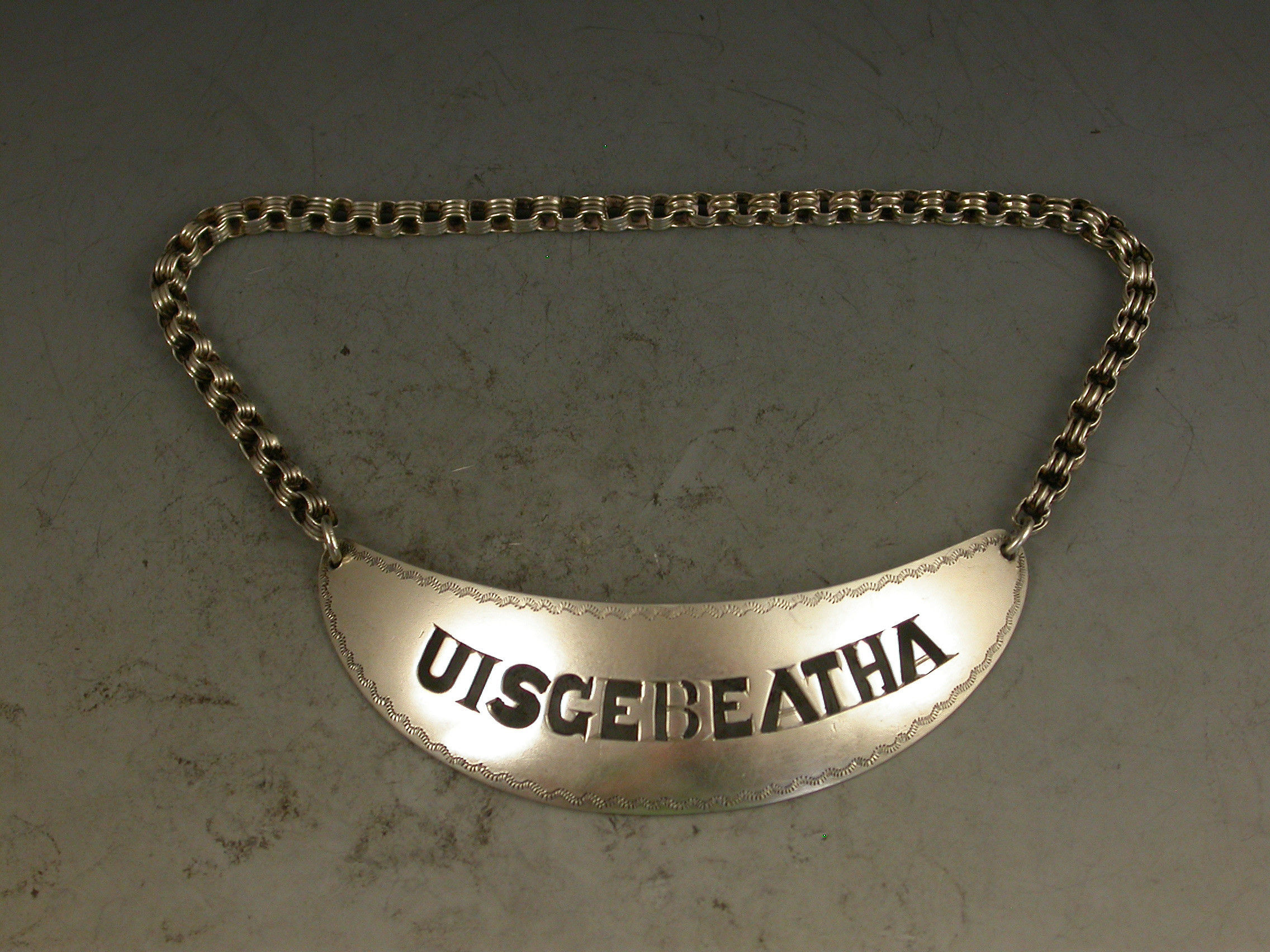 Rare Scottish Provincial Silver Wine Label 'Uisgebeatha'