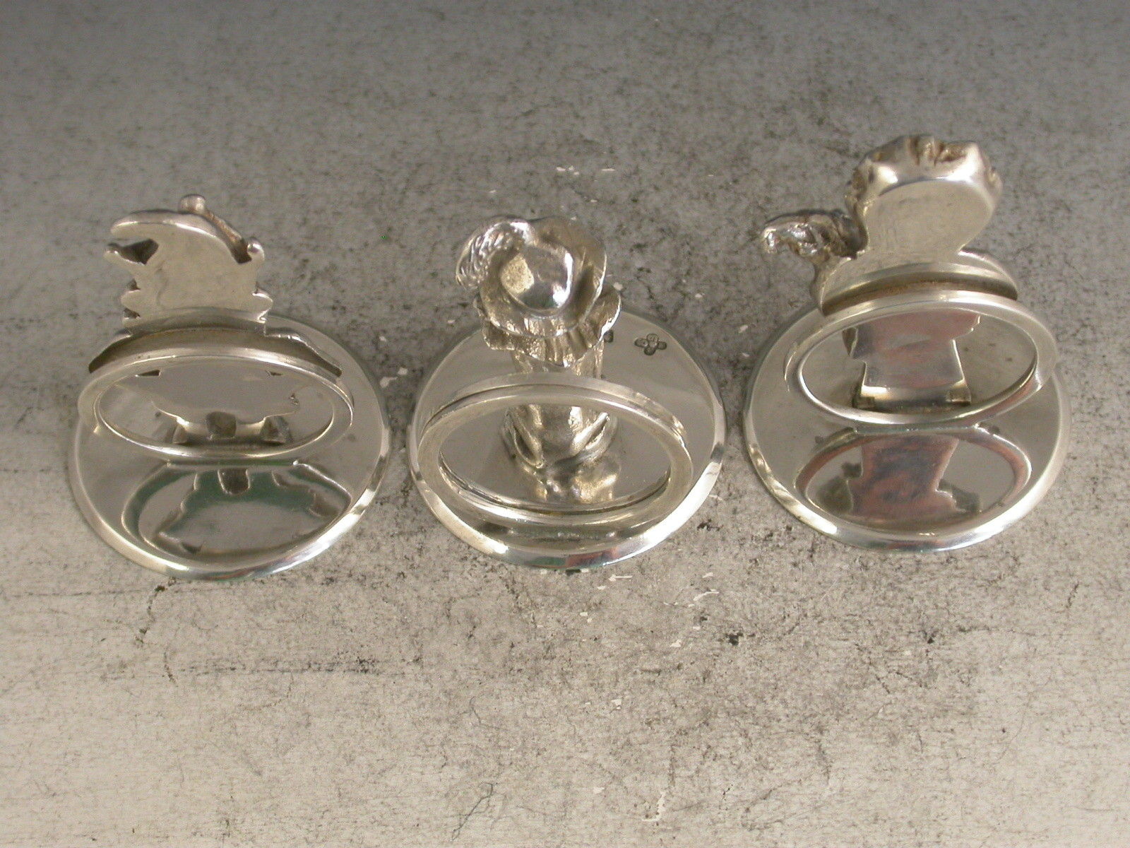 Rare Set 3 Edwardian Silver Menu Holders 'Mr Punch, Judy & Dog Toby'
