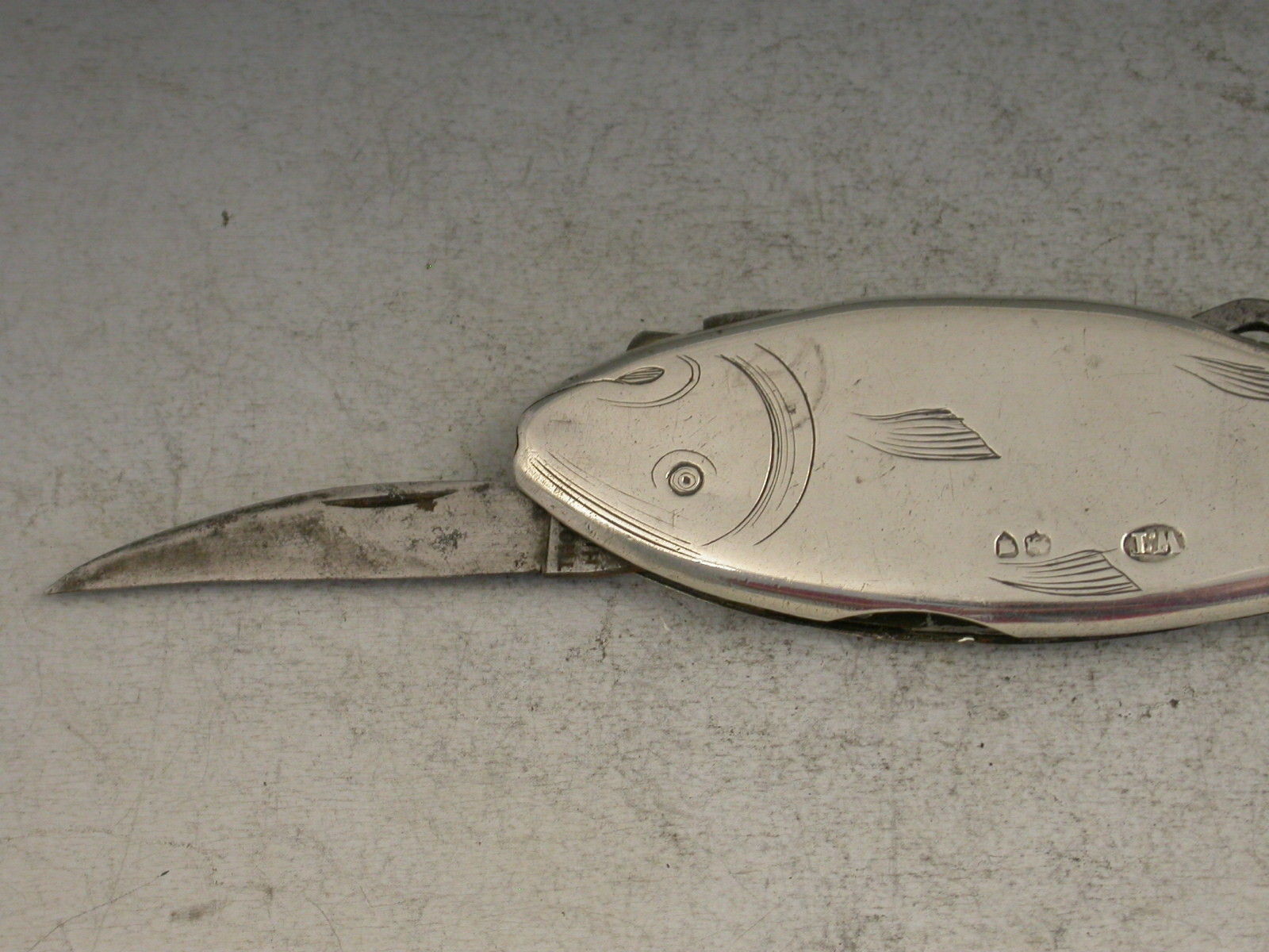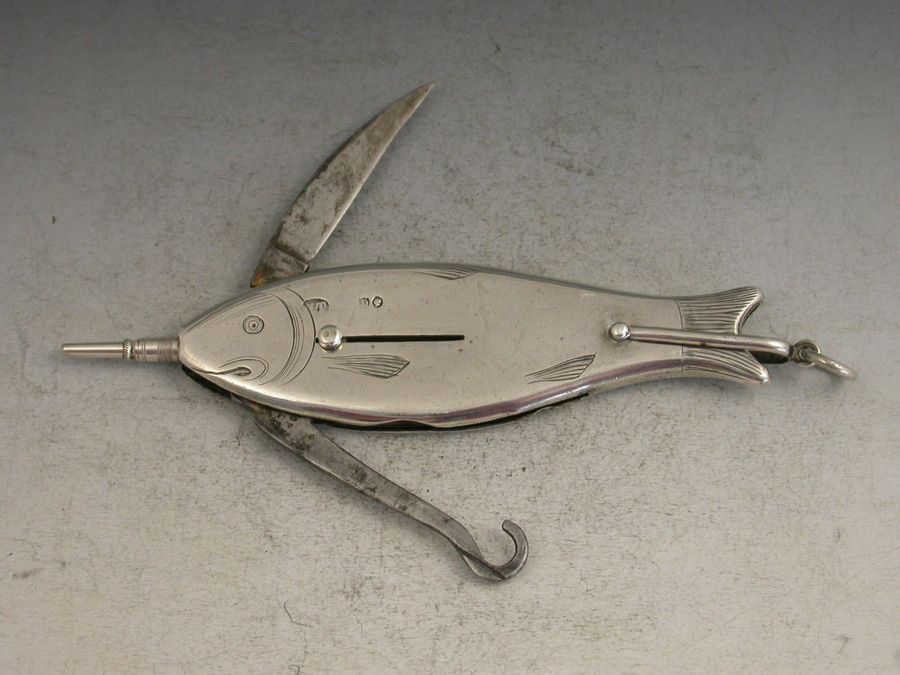Rare Victorian Antique Silver Fish Gentleman's Compendium