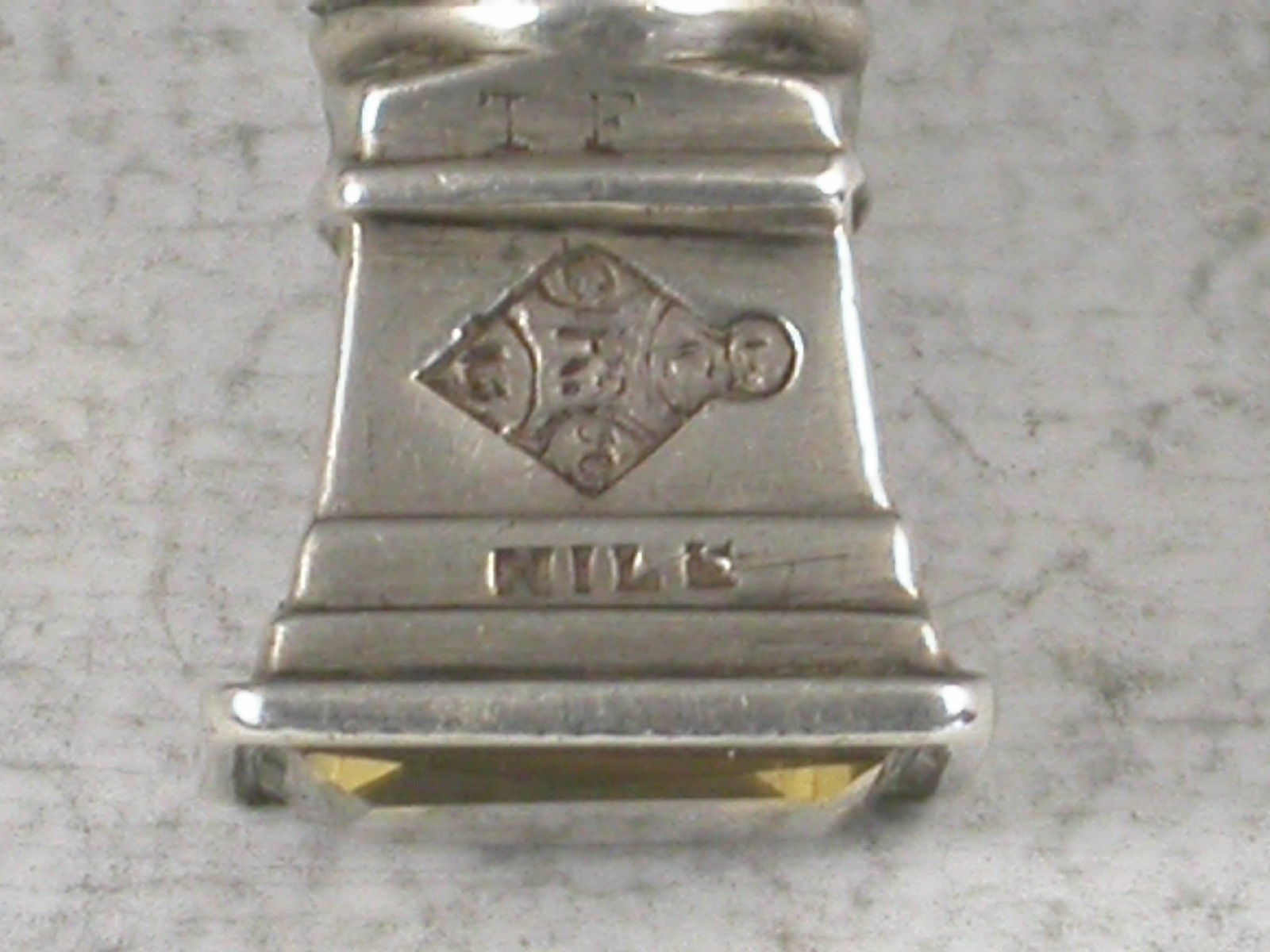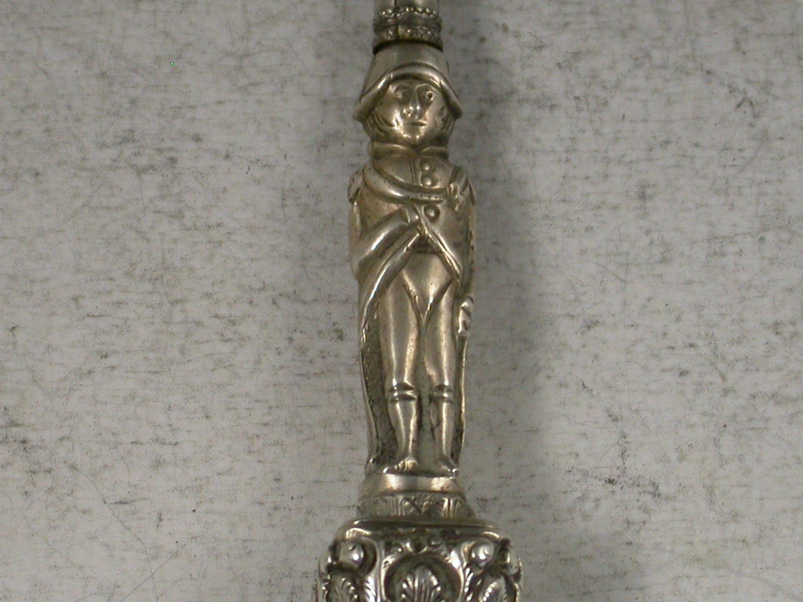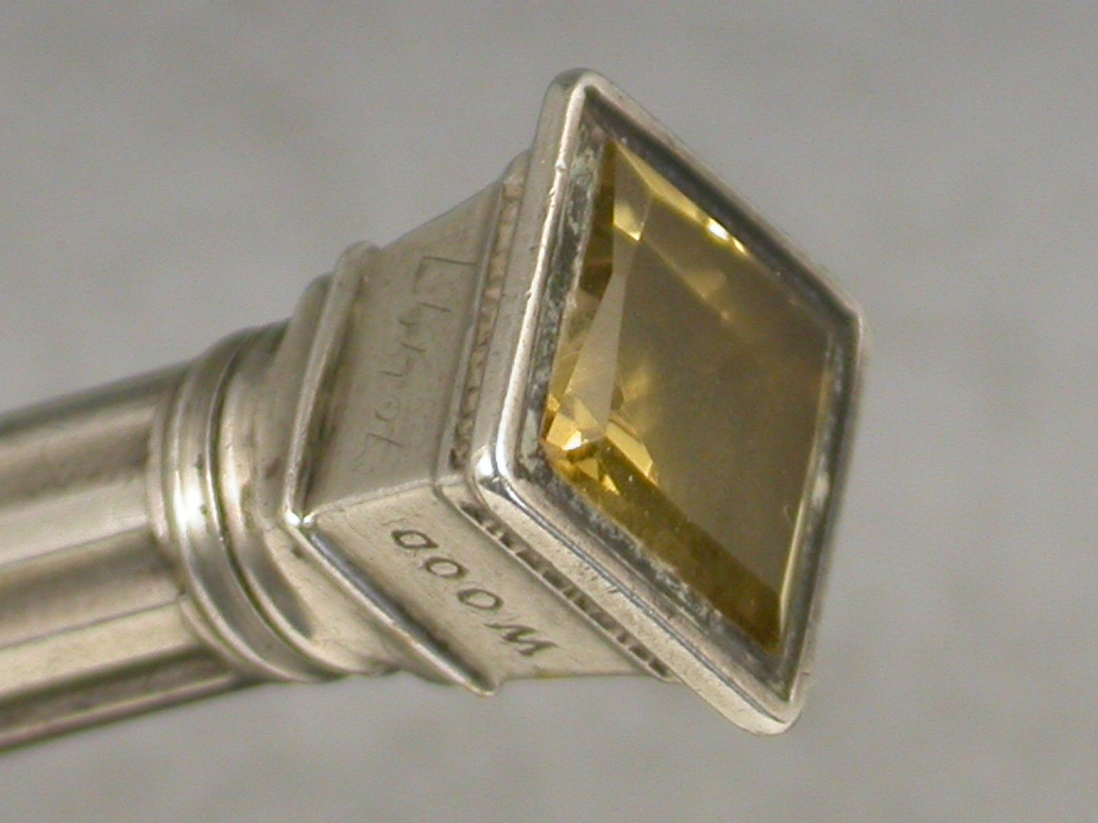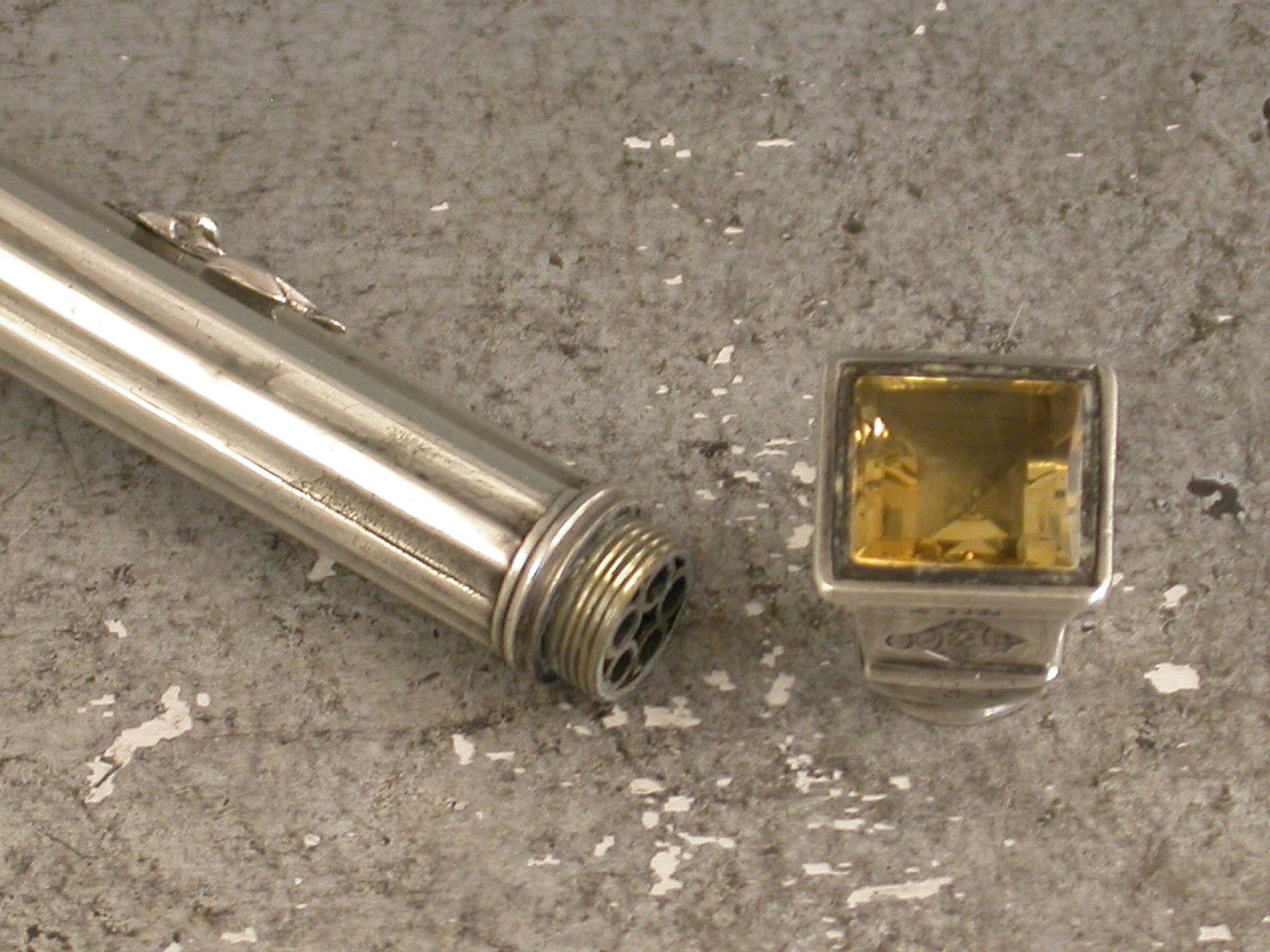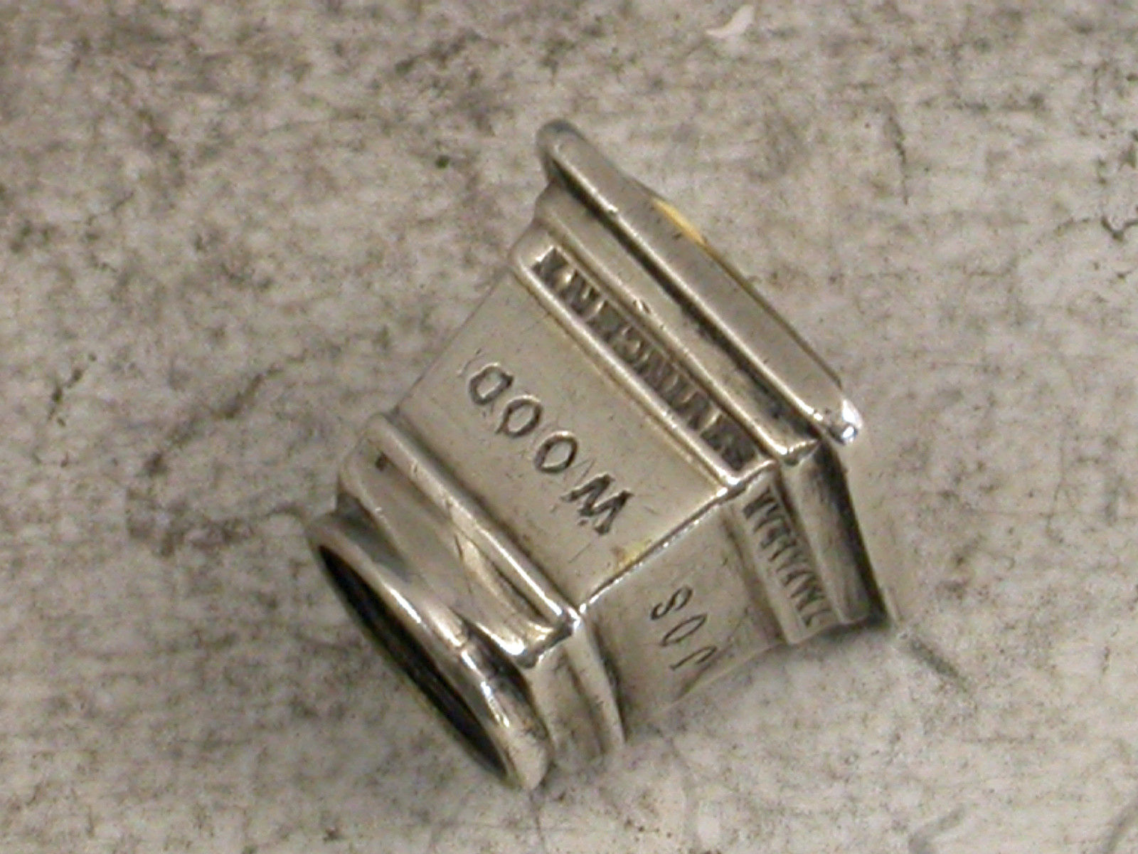 An extremely rare early Victorian silver Propelling Pencil made in the form of Nelson’s Column. The slider button formed as a fouled anchor. The screw-off top revealing a lead reserve and set with a citrine seal stone. The plinth stamped with the owners name: 'Jos Wood' and engraved with a diamond registration mark for the 30th January 1844. Also stamped with four of Nelson’s most famous Victories – Trafalgar, Nile, St Vincent and Copenhagen.