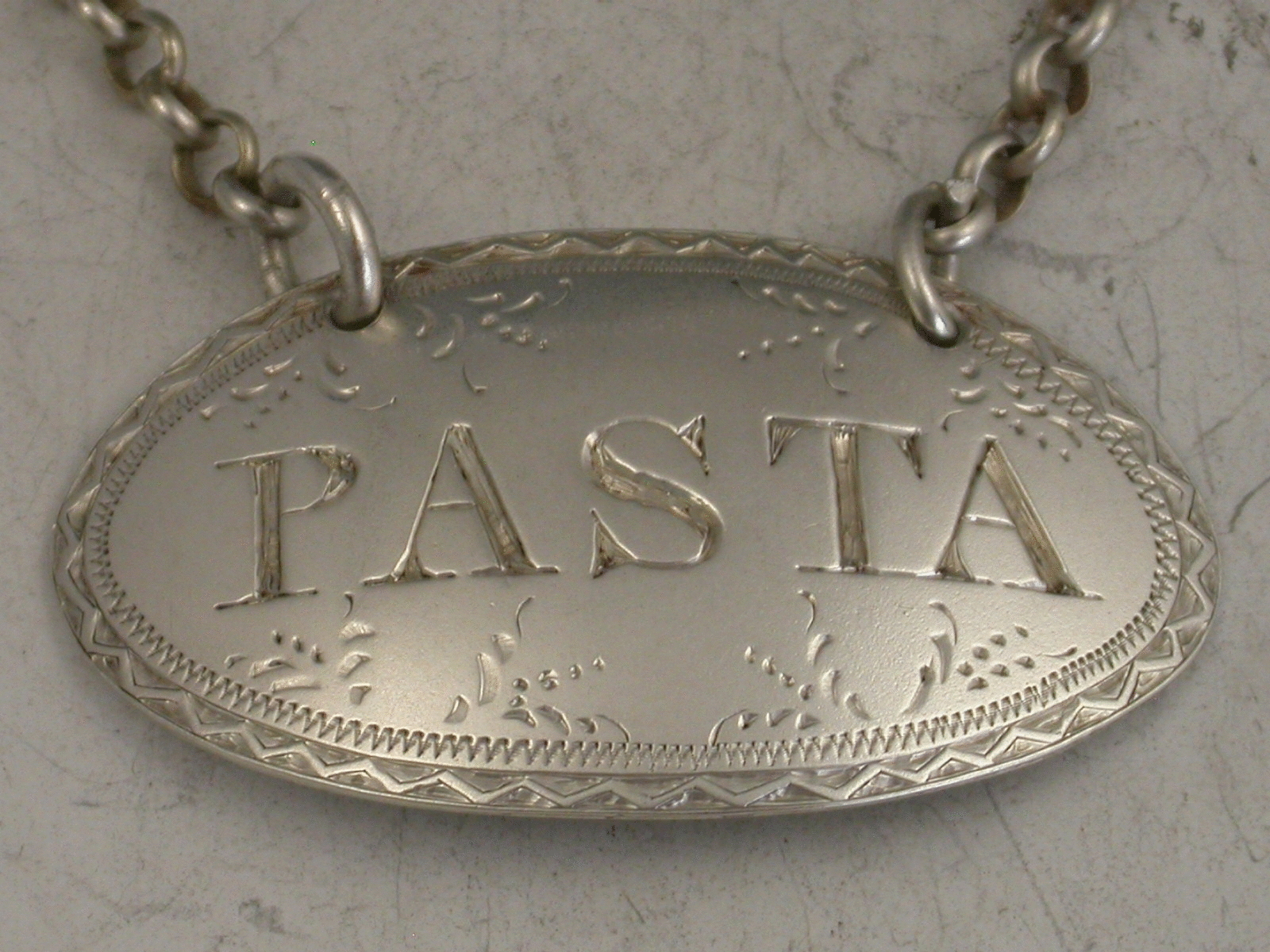 Rare Victorian Antique Silver Wine Label 'Pasta'