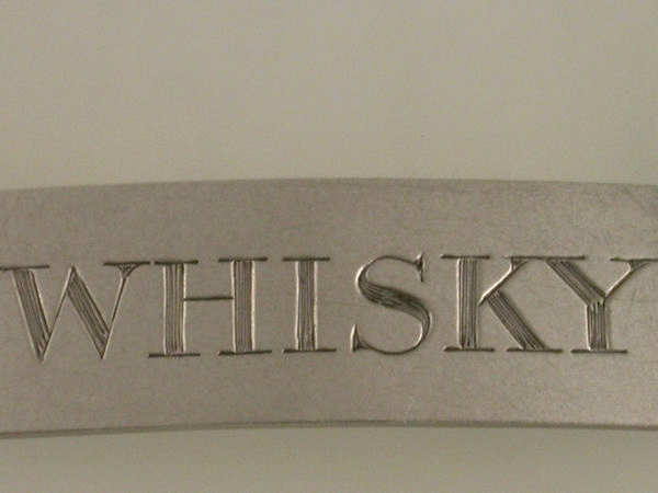 A rare George III Scottish Provincial silver Wine Label of plain narrow rectangular form, incised for WHISKY.