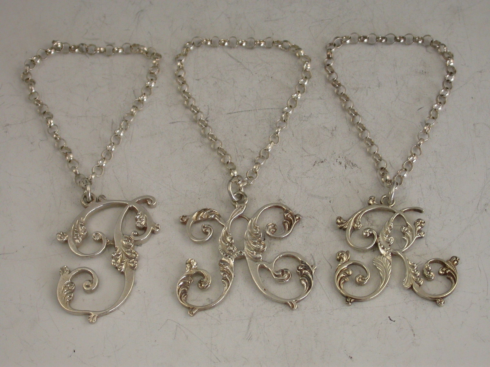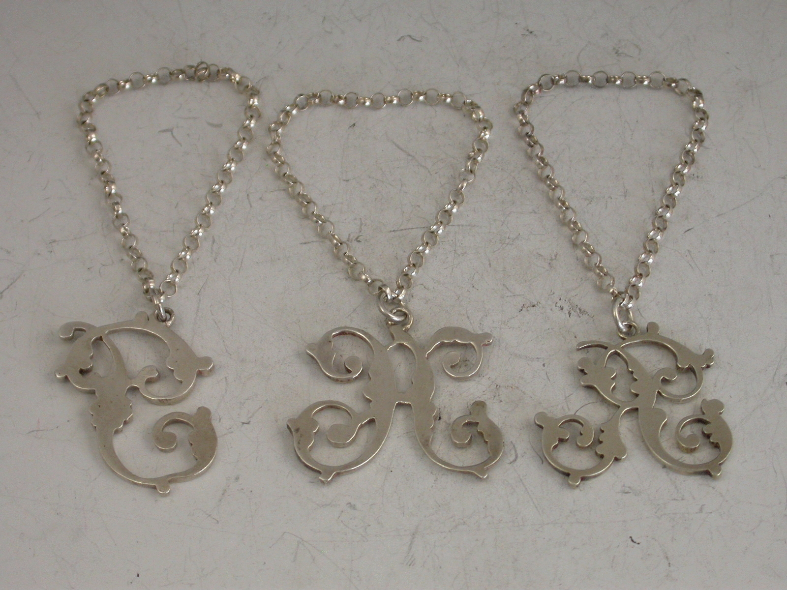 Set 3 Antique Scottish Silver Script Initial Letter Wine Labels 'P, H & R'