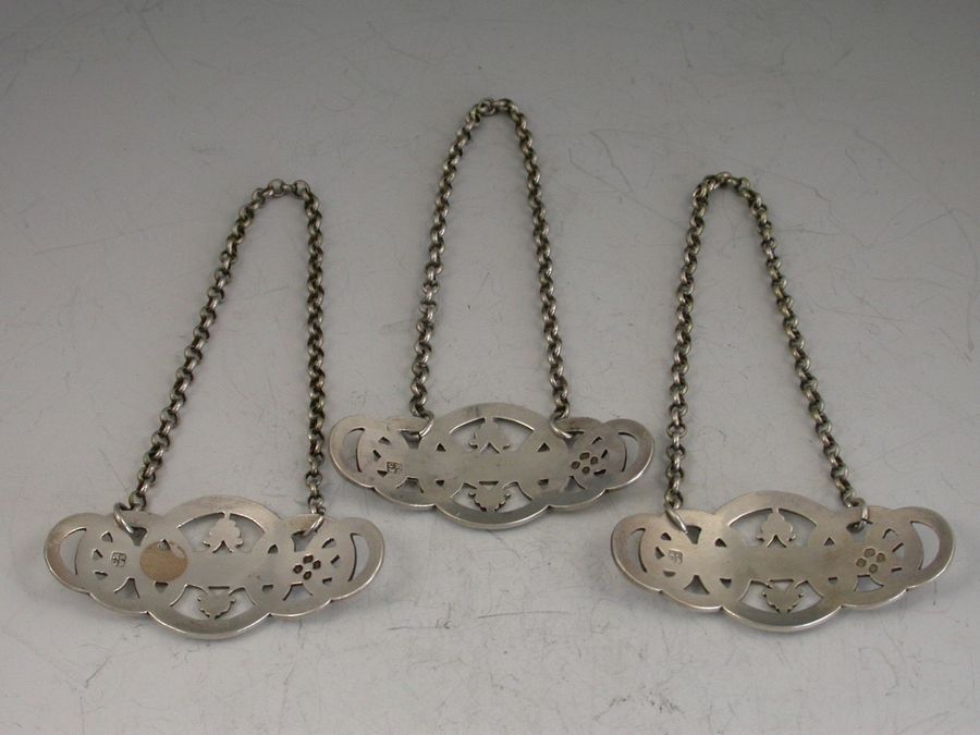 Set 3 Antique Silver 'Olympic Rings' Wine Labels Port Sherry & Gin