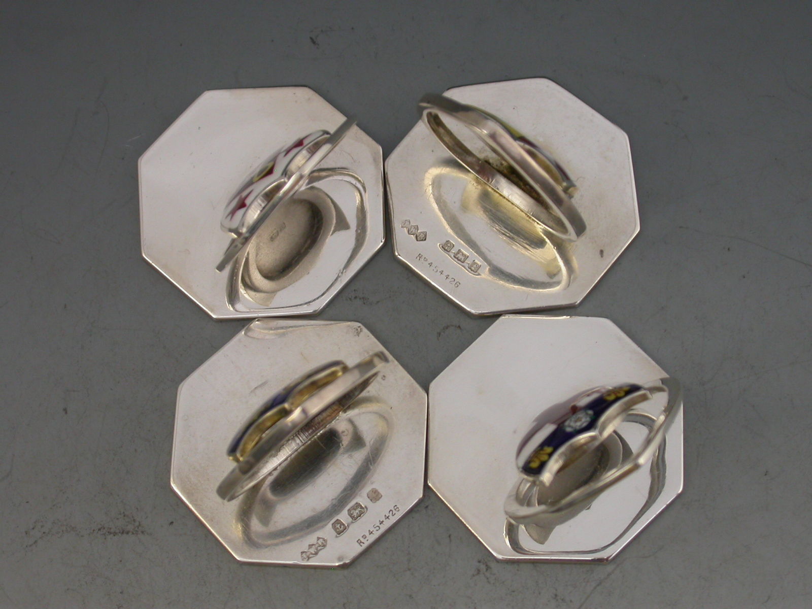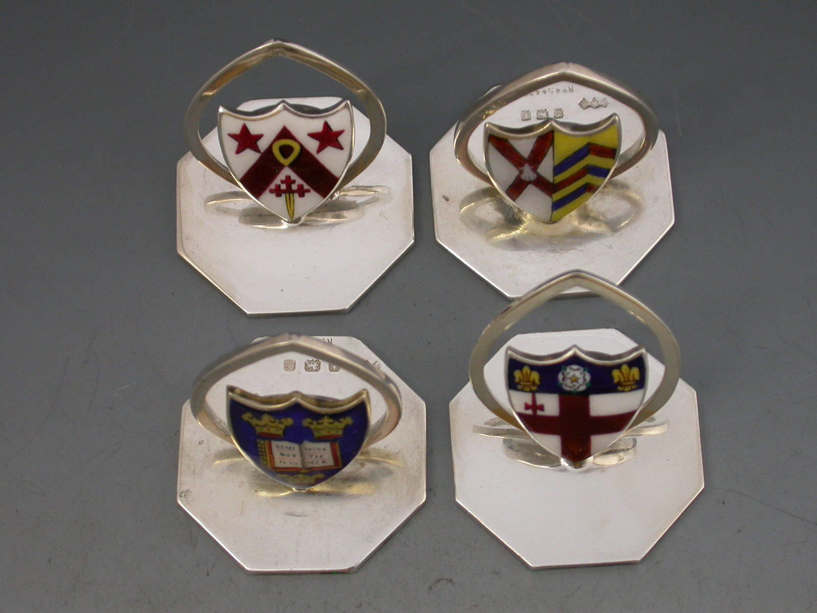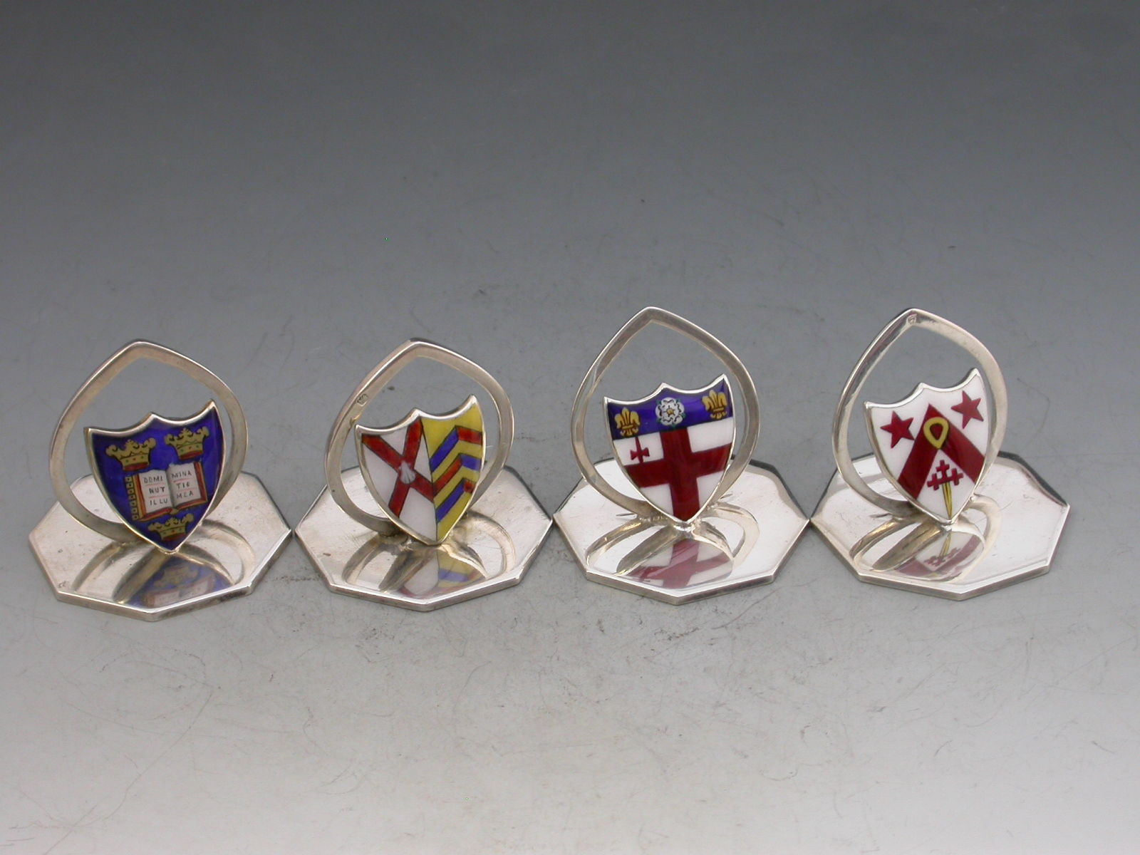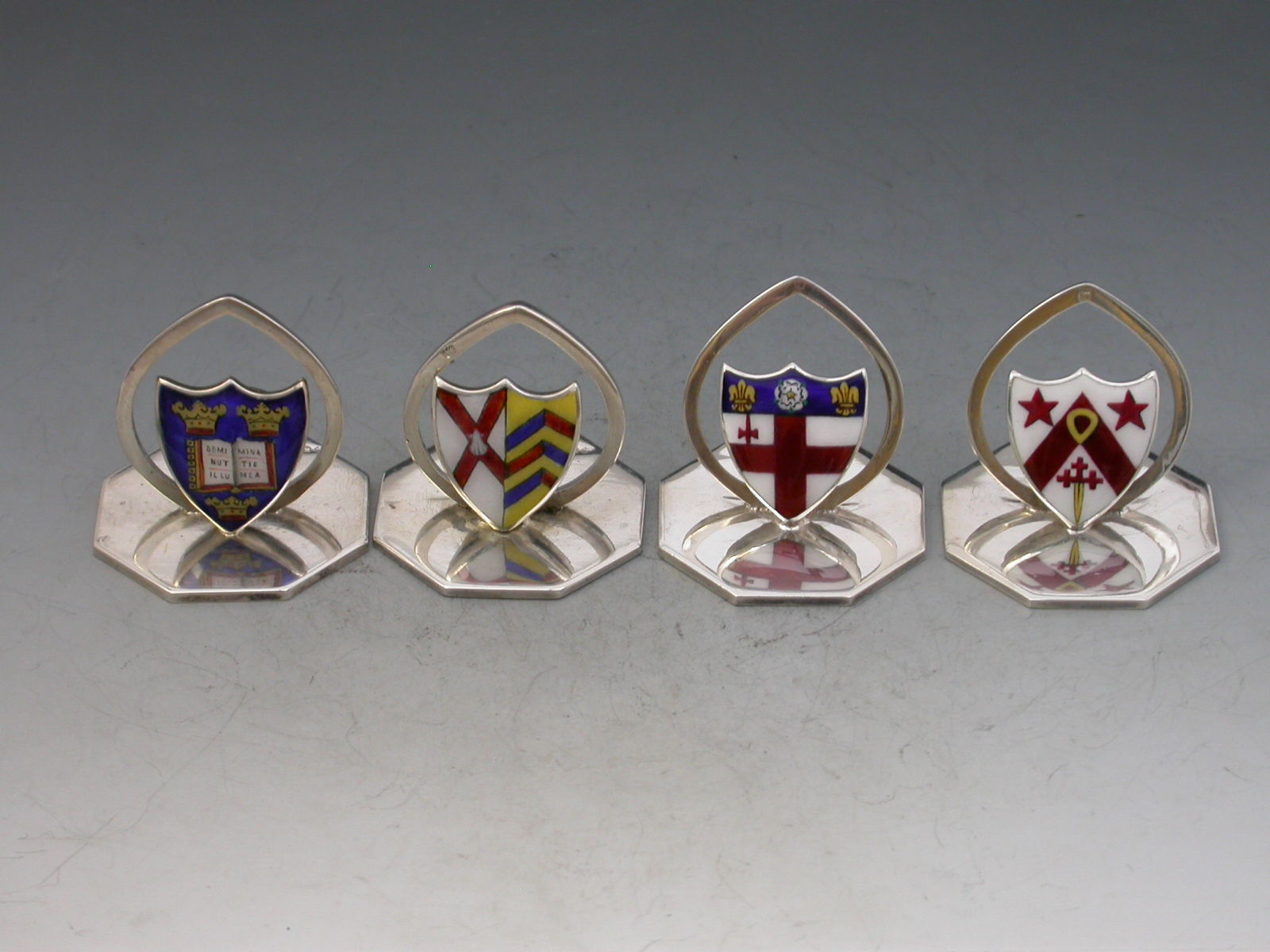 Set 4 Early 20th Century Oxford University Silver & Enamel Menu Holders