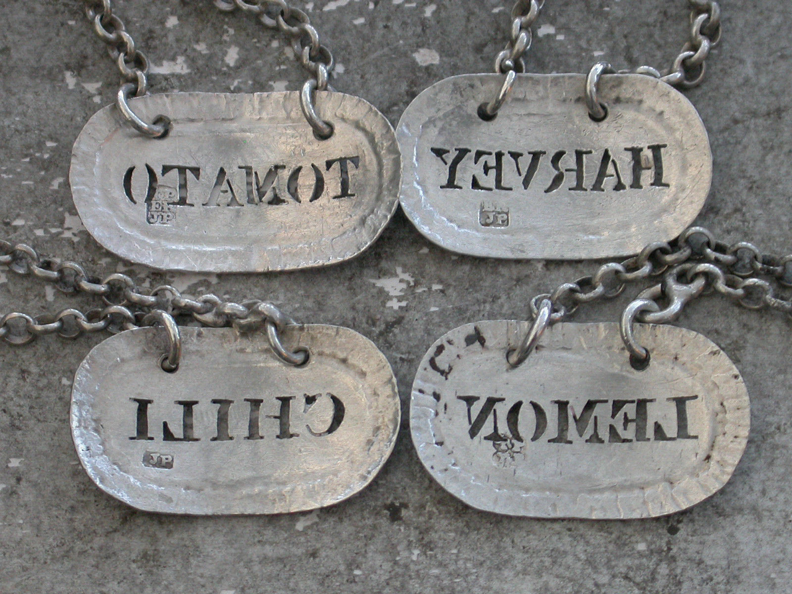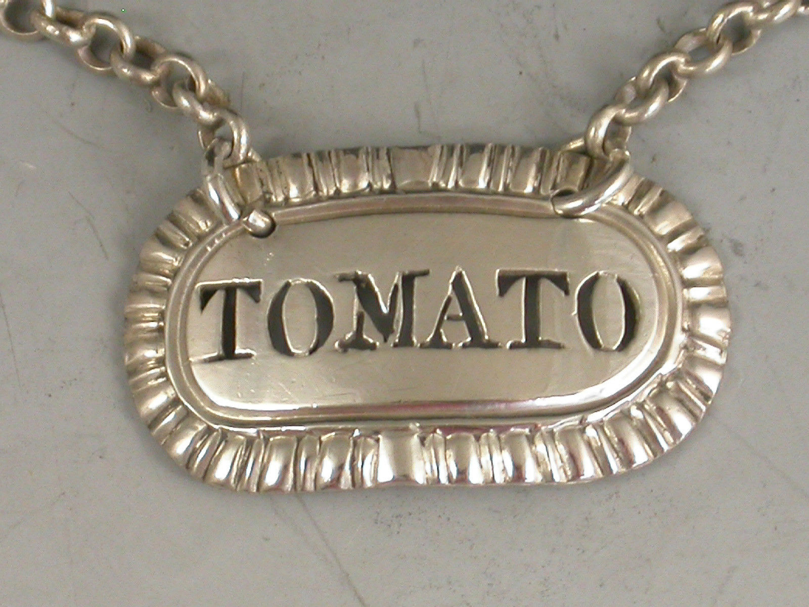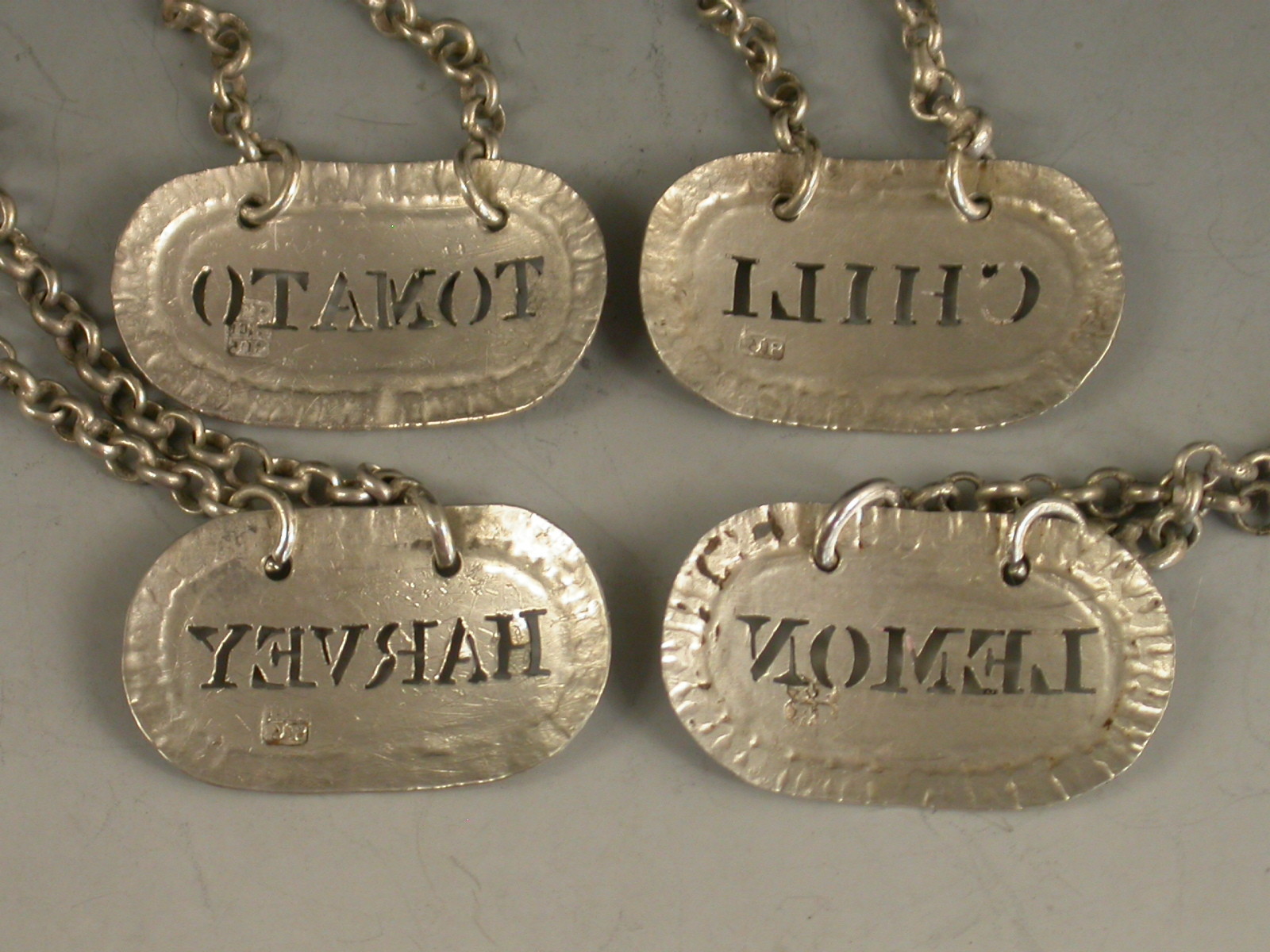 Set 4 George III Silver Sauce Labels 'Tomato, Lemon, Chili & Harvey'