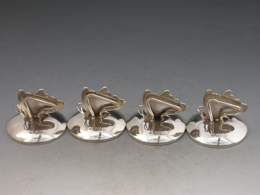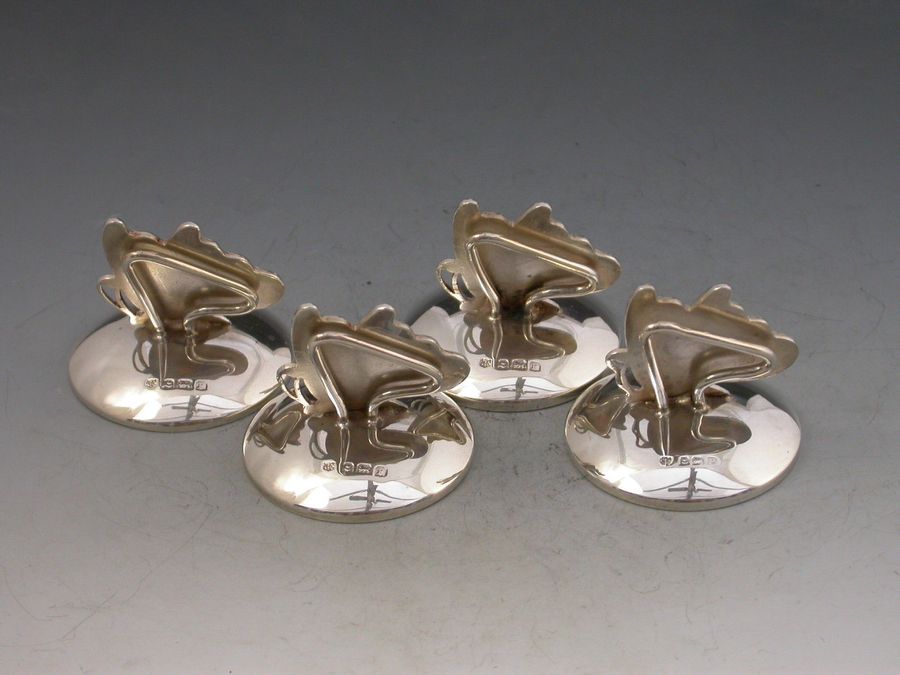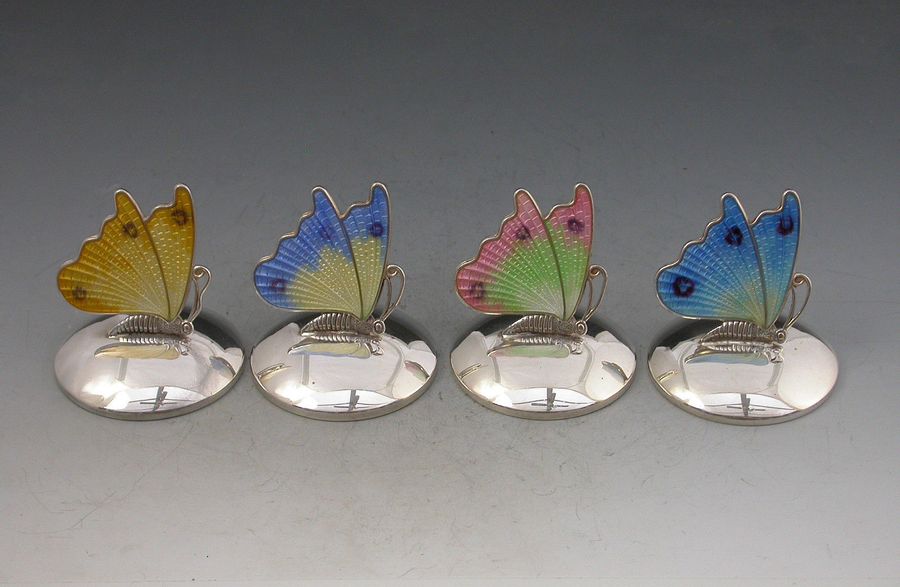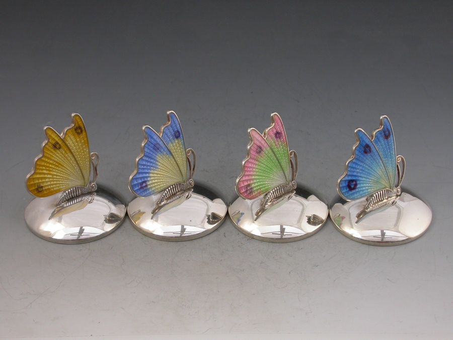 Set 4 George V Silver & Enamel Butterfly Menu Holders