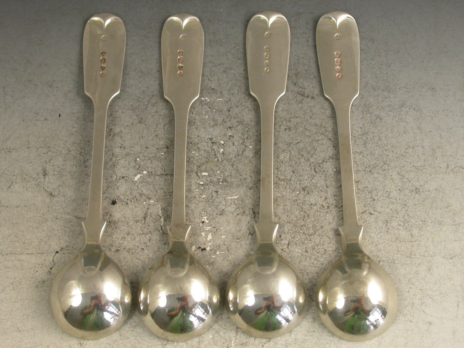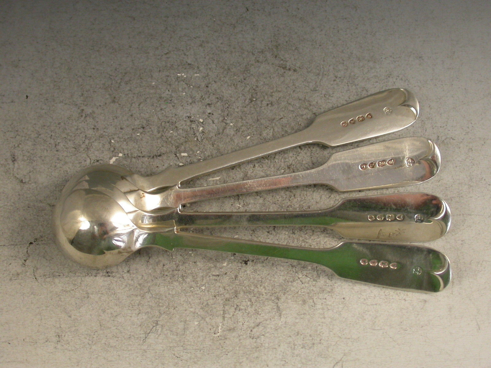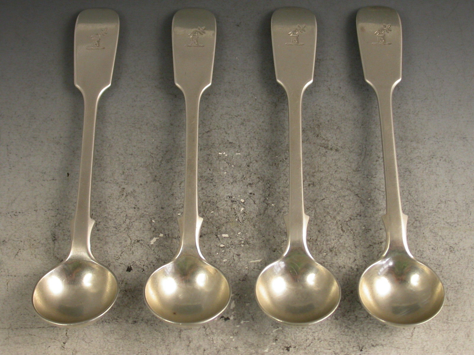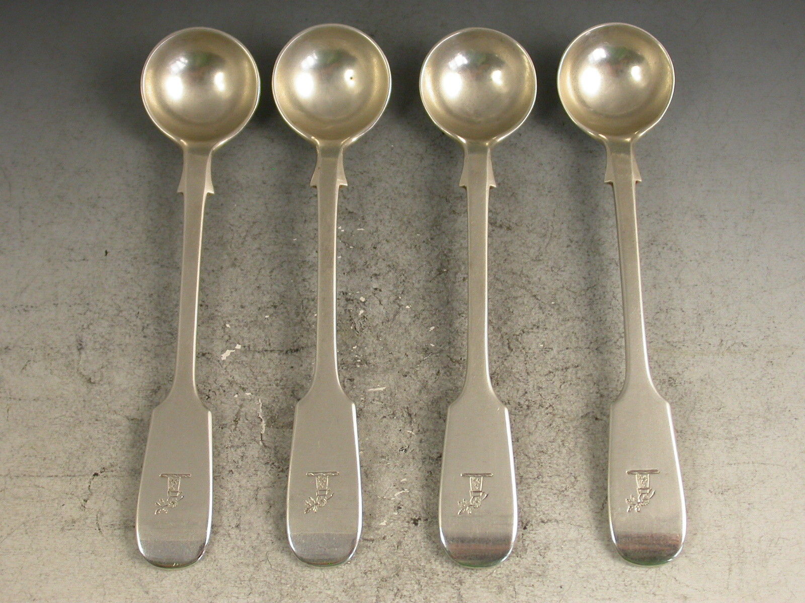 Set 4 Victorian Silver Fiddle Pattern Salt Spoons Crest of Smith Viscount Hambleden