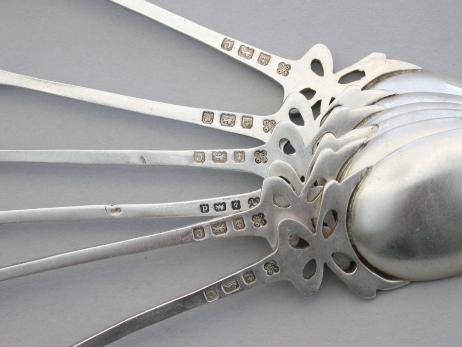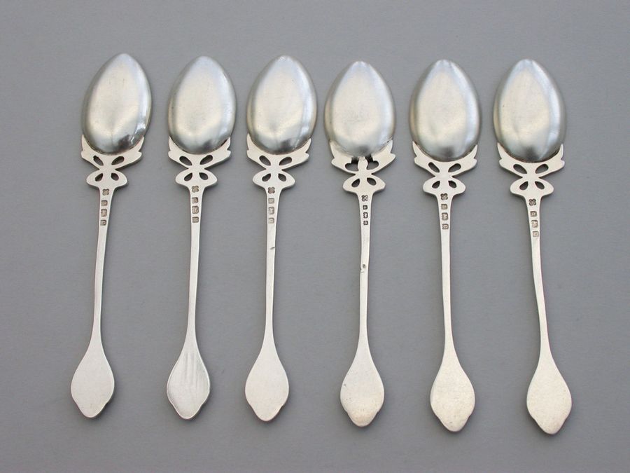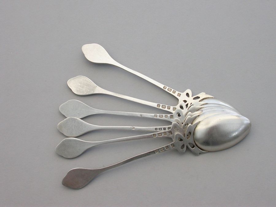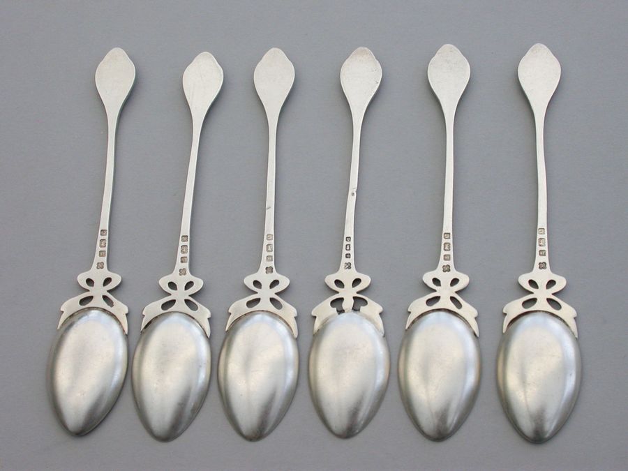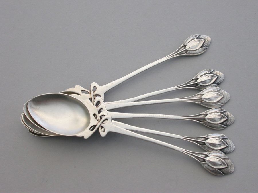 Set 6 Arts & Crafts Silver Teaspoons - Crocus Pattern, Archibald Knox