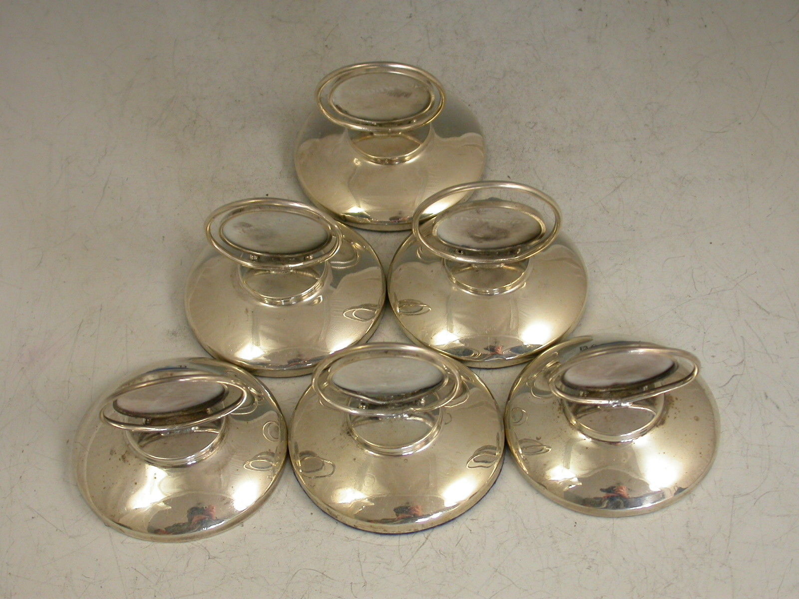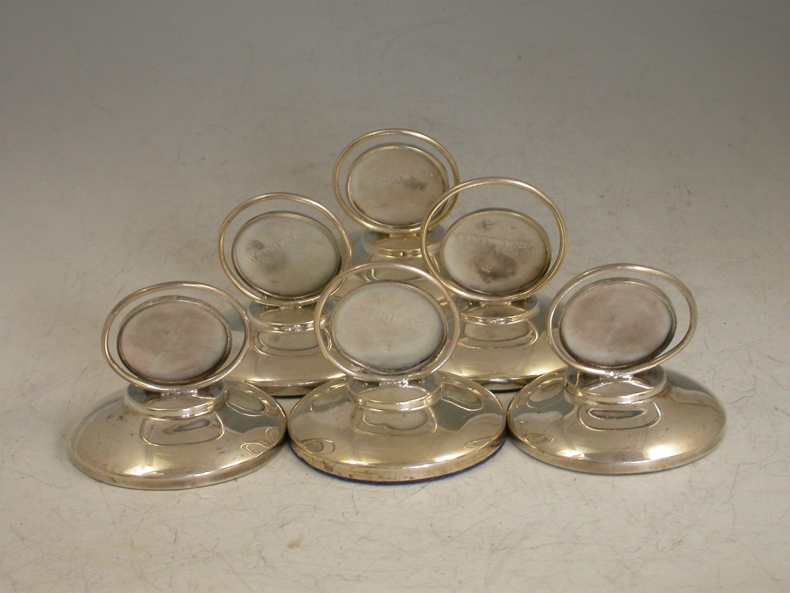Set 6 Edwardian Silver Mounted Wedgwood Bosses Menu Holders