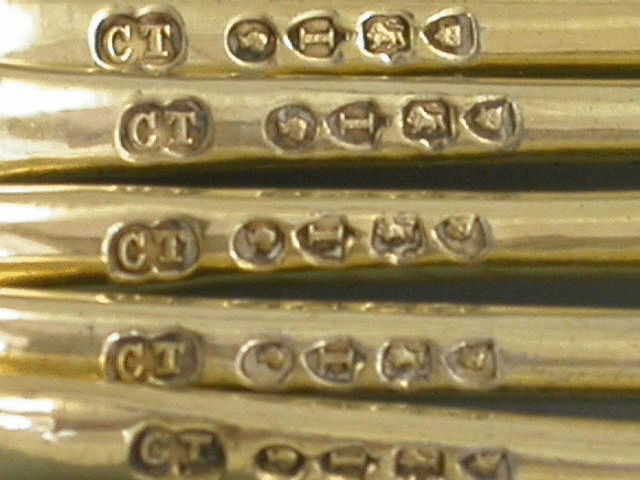 Set 6 Gilt Onslow Tea Spoons & Tongs