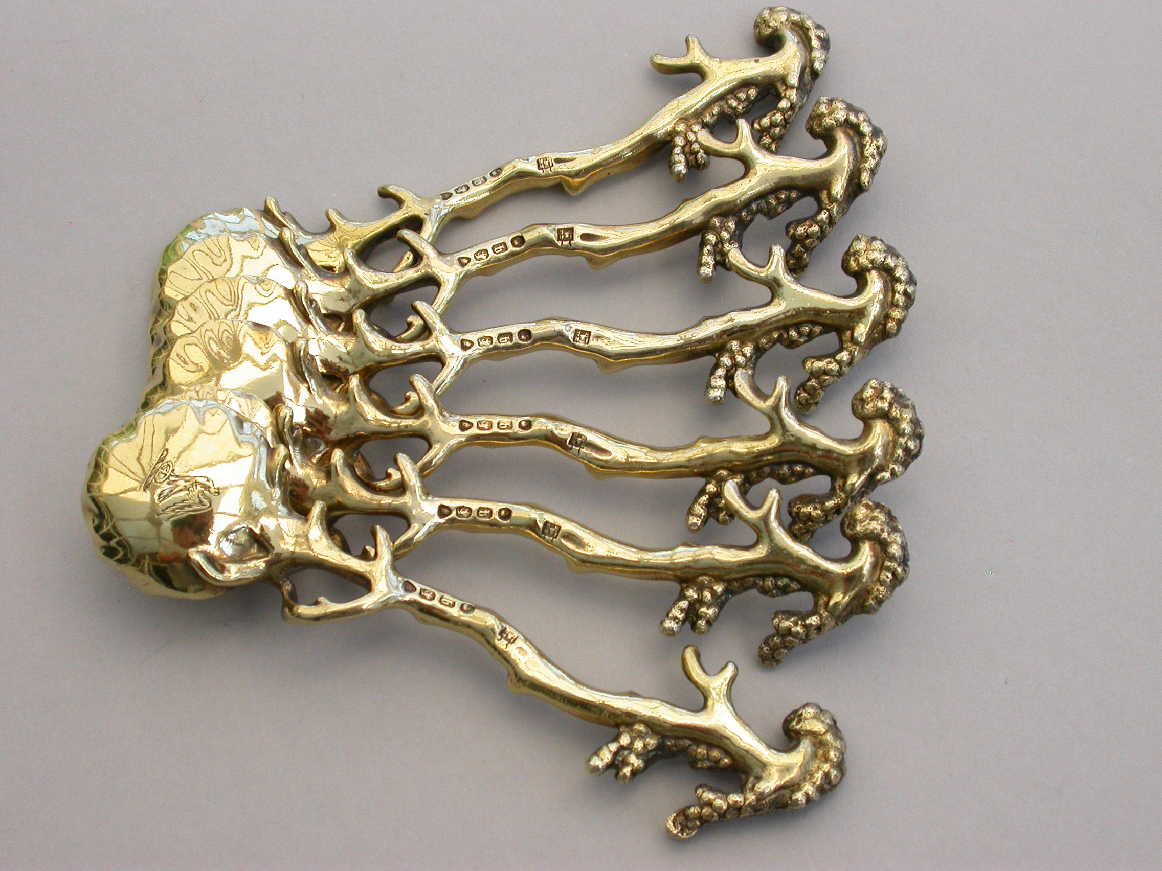 Set 6 Victorian Silver Gilt Nautical Salt Spoons