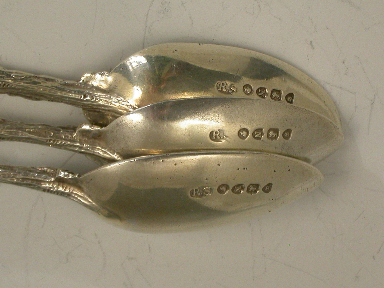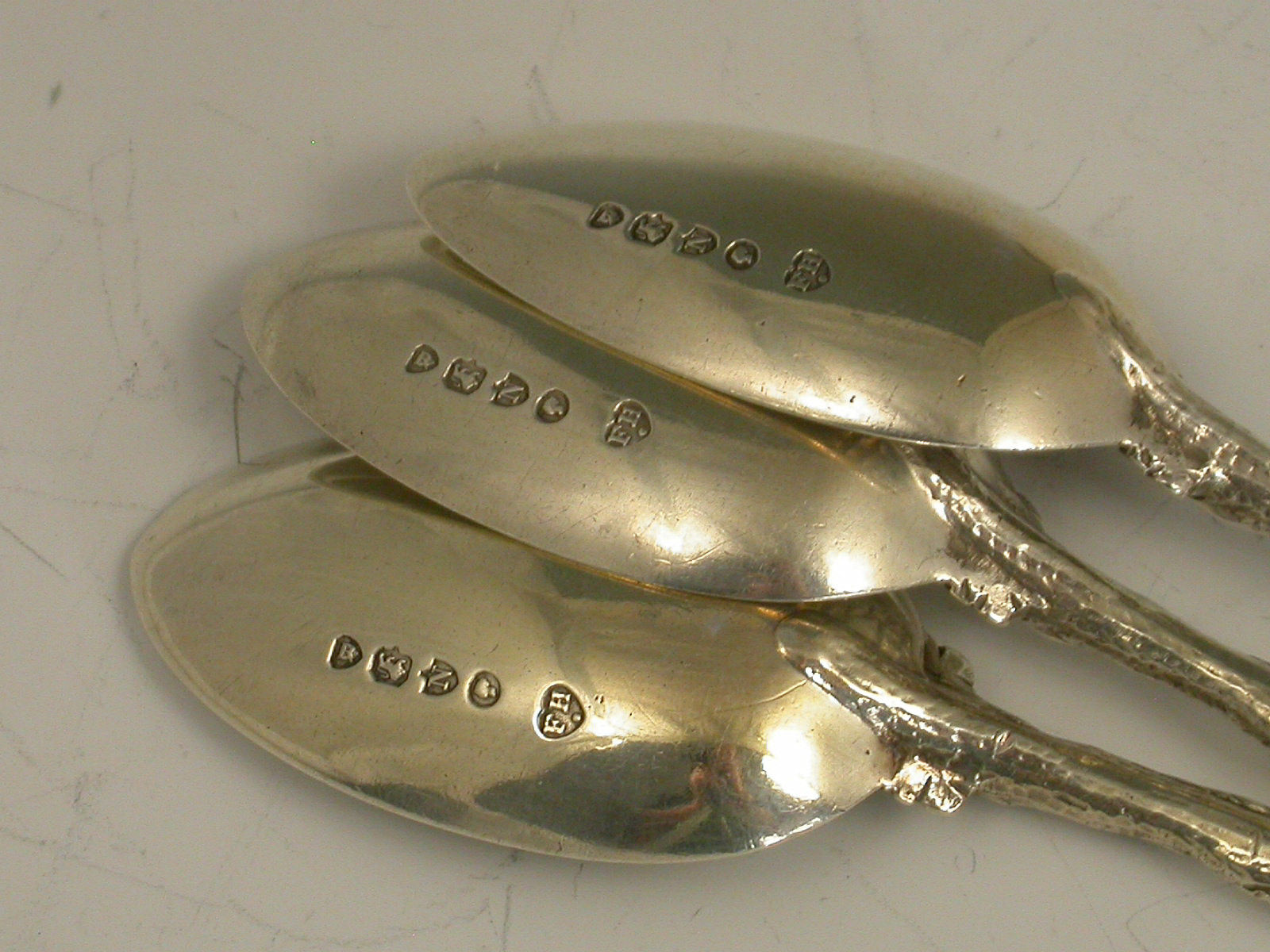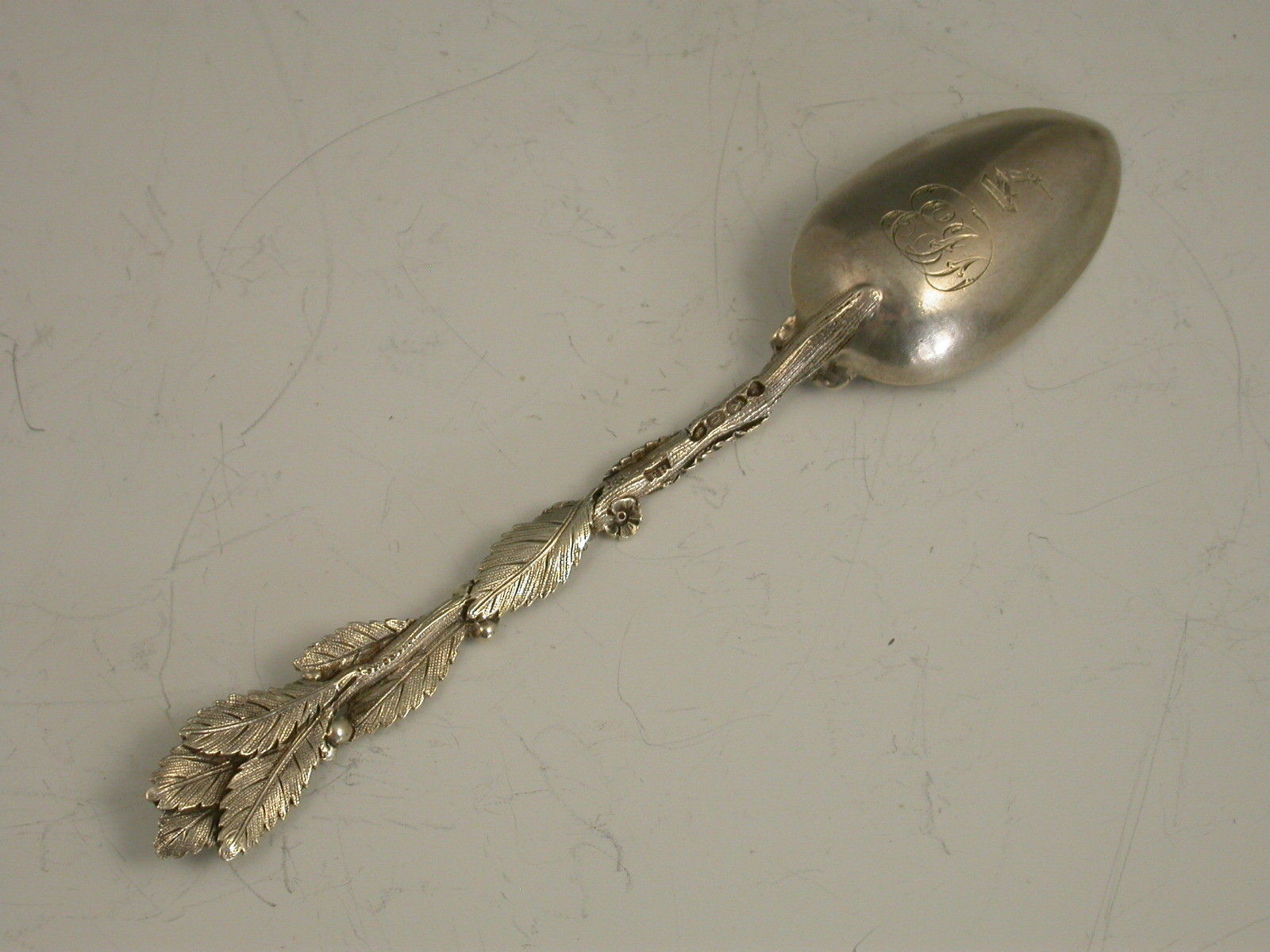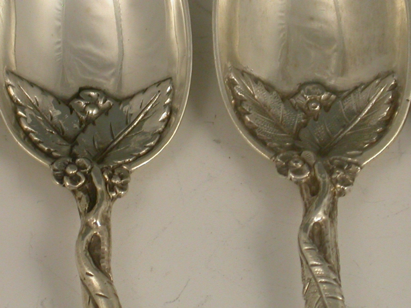 Set 7 Victorian Cast Silver Naturalistic Leaf Teaspoons