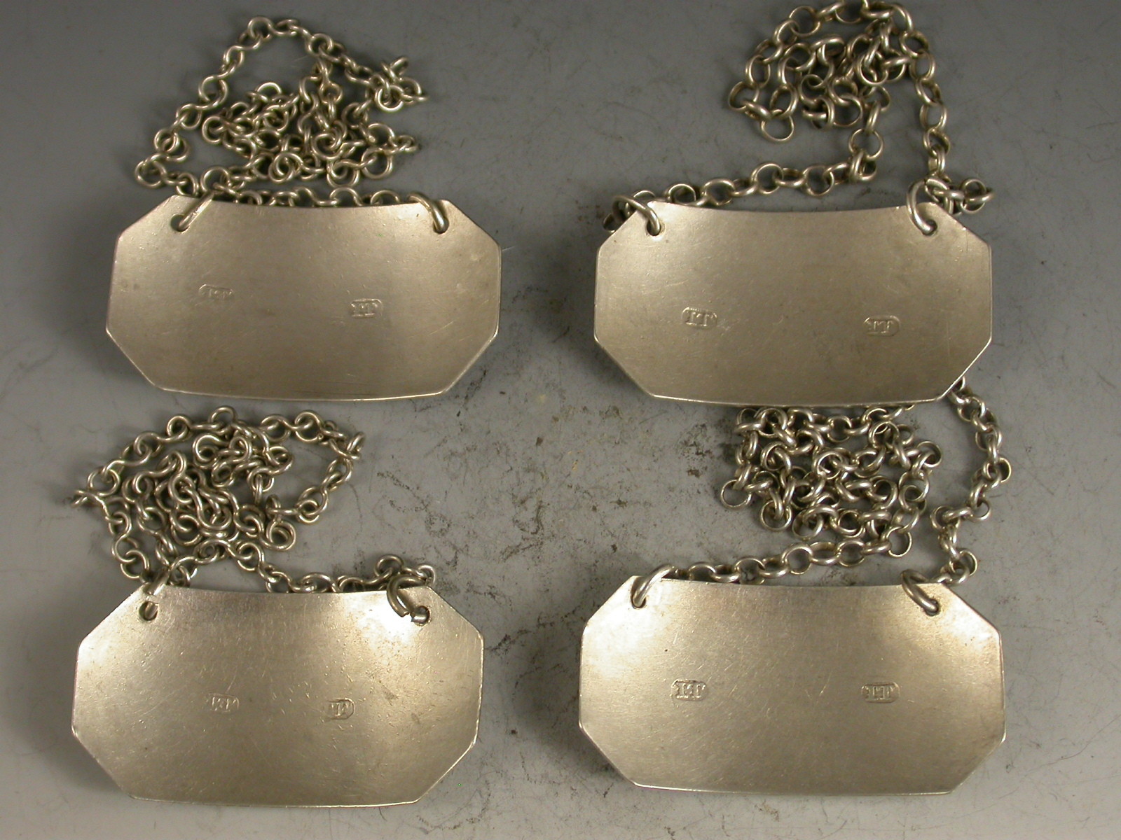 A good set of four George III Irish silver Wine Labels of cut cornered rectangular form, incised for Hock, Claret, Hermitage and Vin De Grave