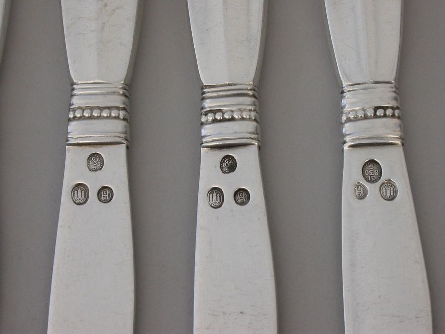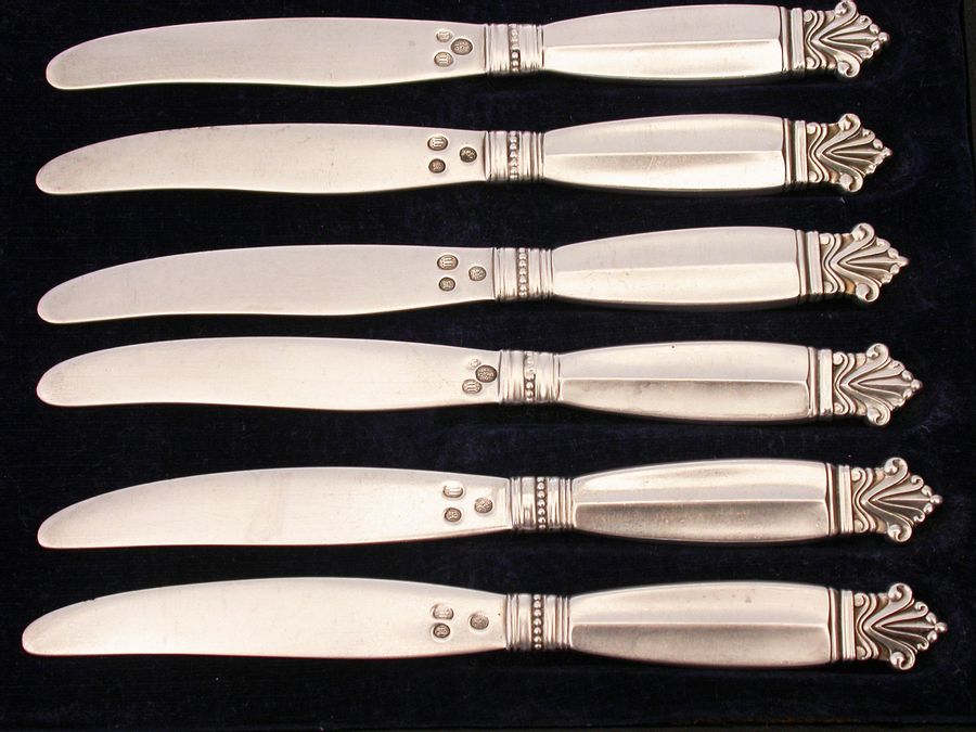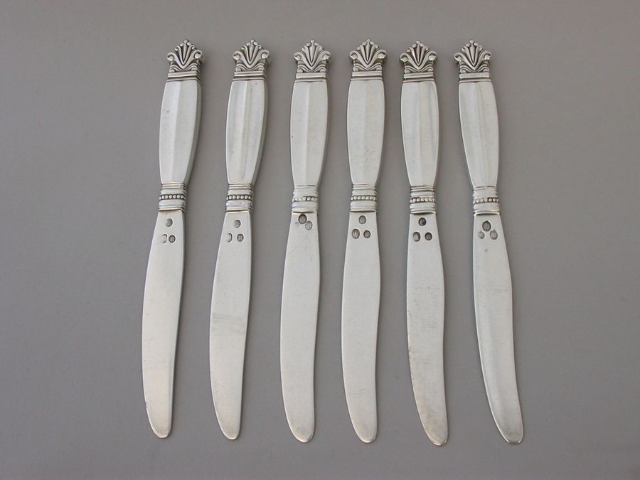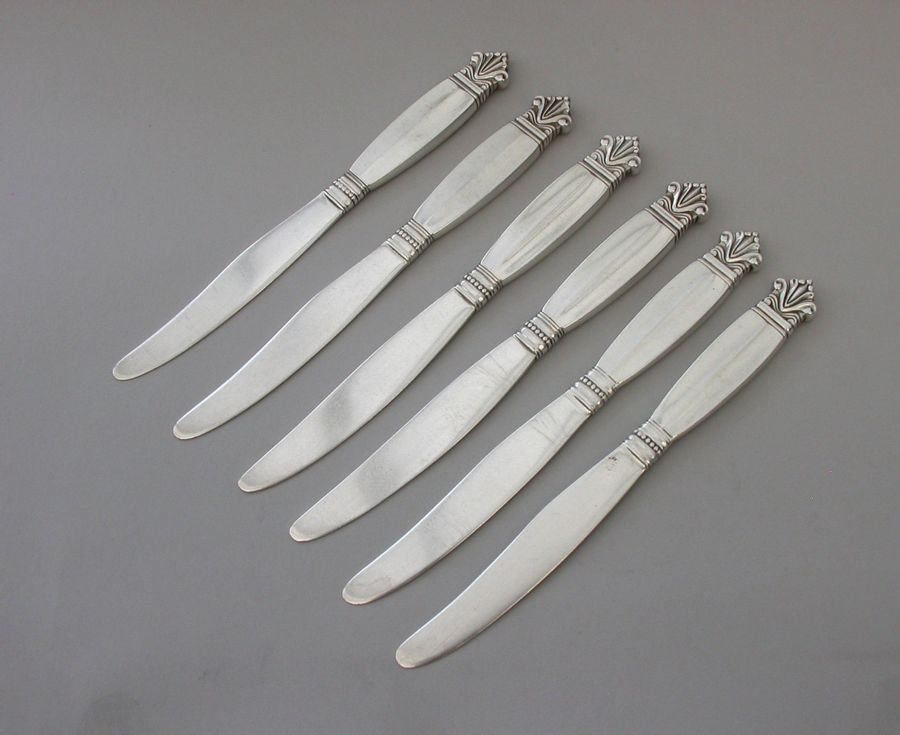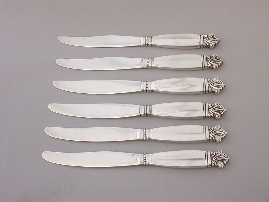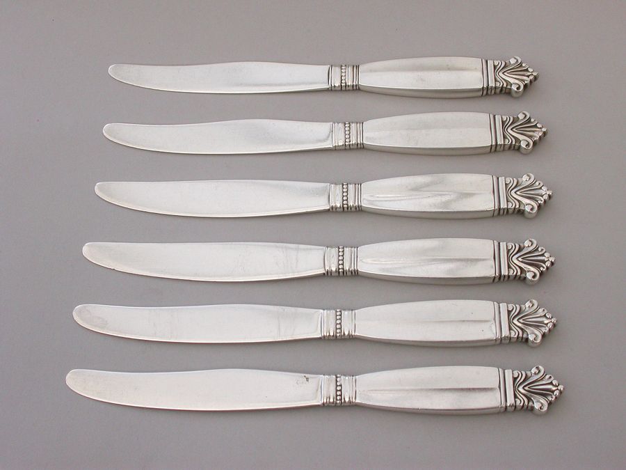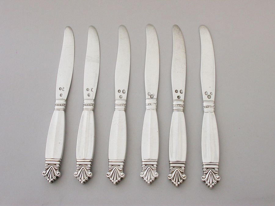 Set of 6 Danish Silver Acanthus Pattern Dessert Knives - Johan Rohde