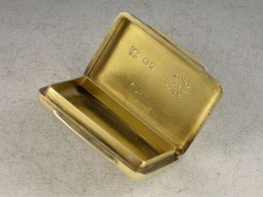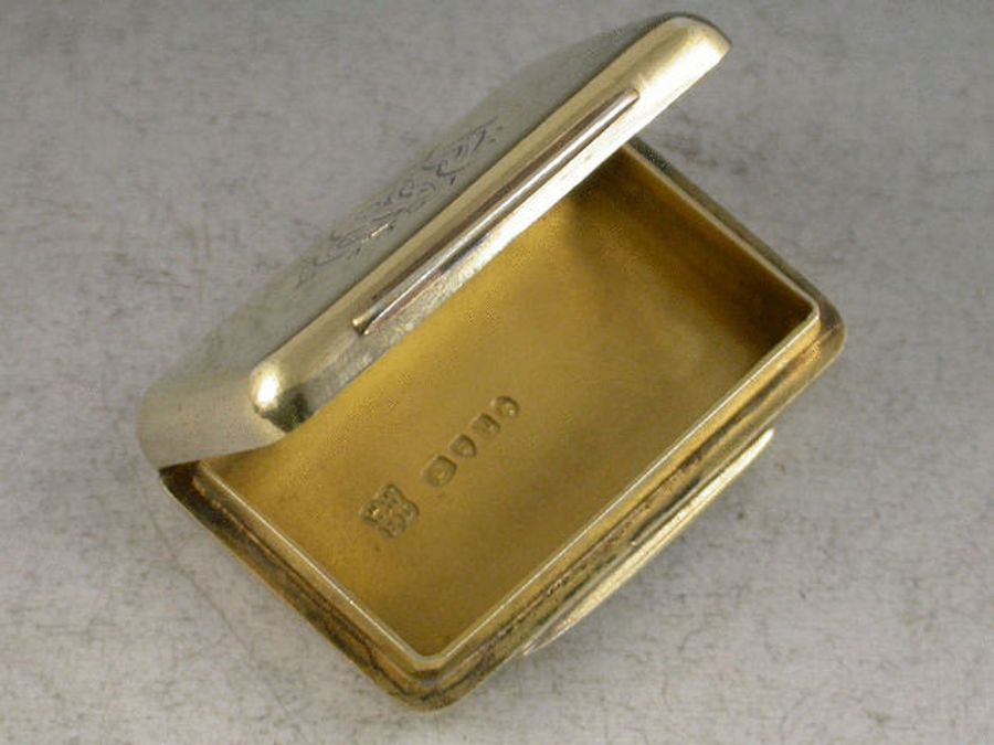 A fine quality Victorian silver gilt Pill Box of rounded rectangular form with hinged lid, engraved with contemporary monogrammed initials.