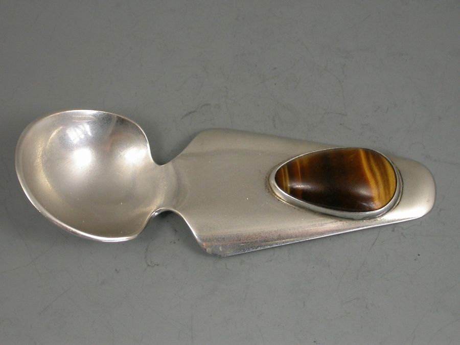 South African Contemporary Silver Tigers Eye Caddy Spoon