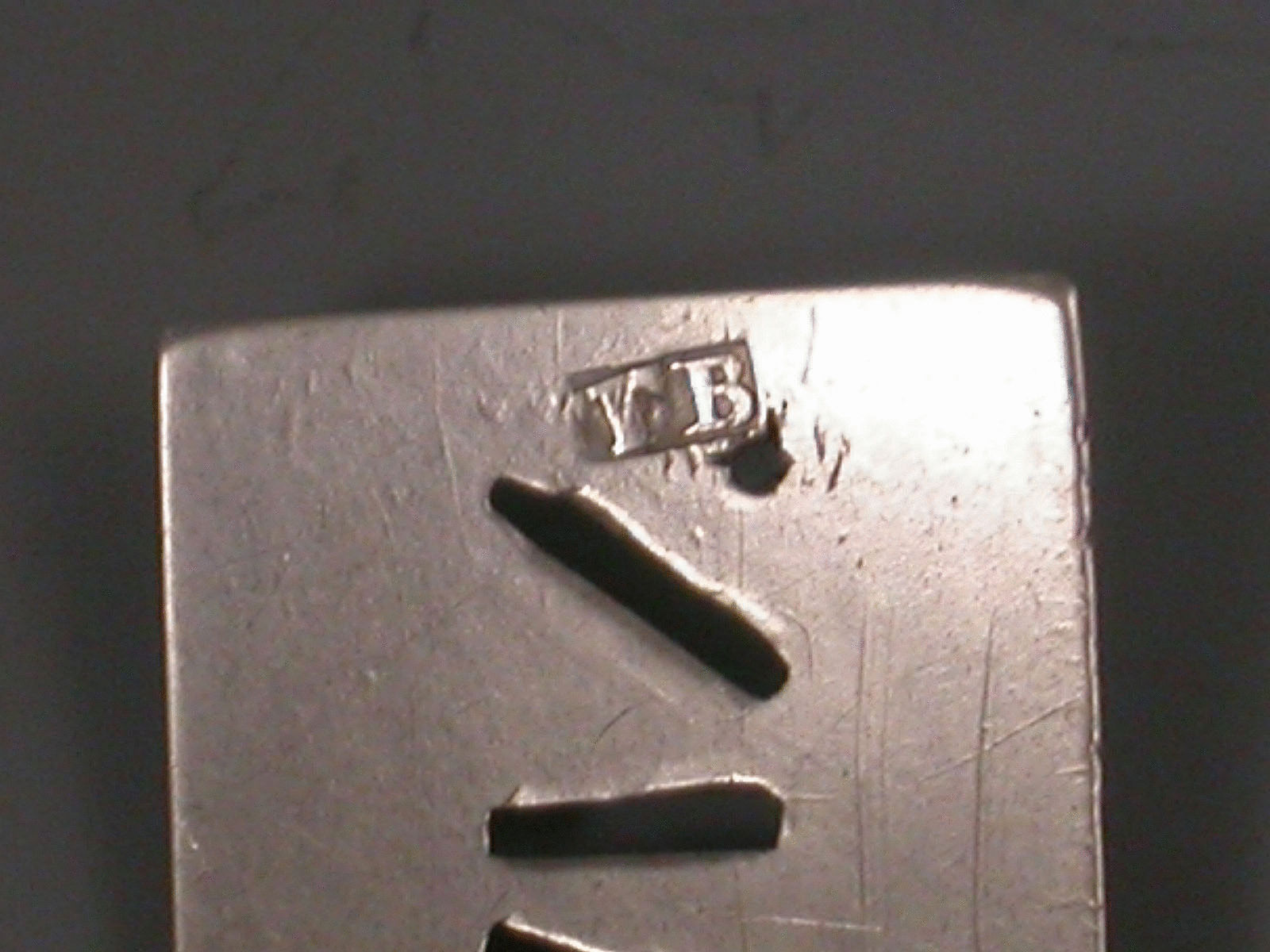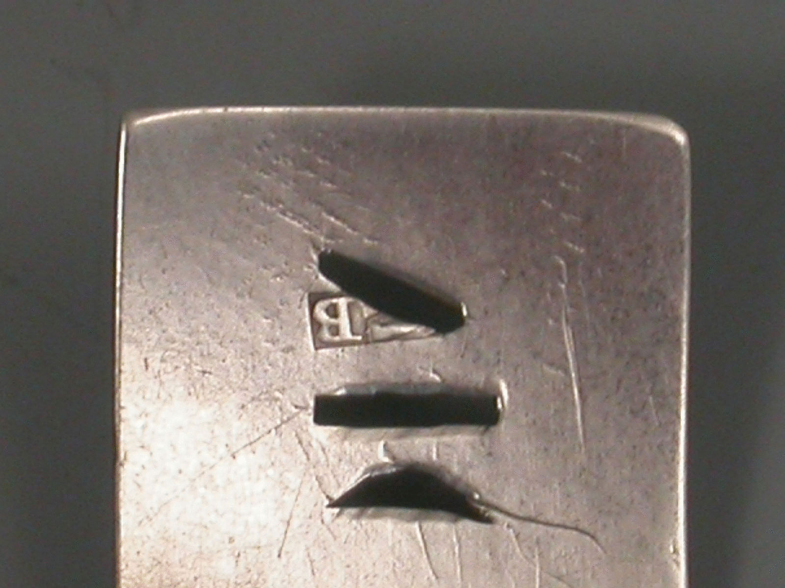Makers mark only T B struck twice, possibly Thomas Barker or Thomas Balliston of London, c1815 but looks earlier c1775.
